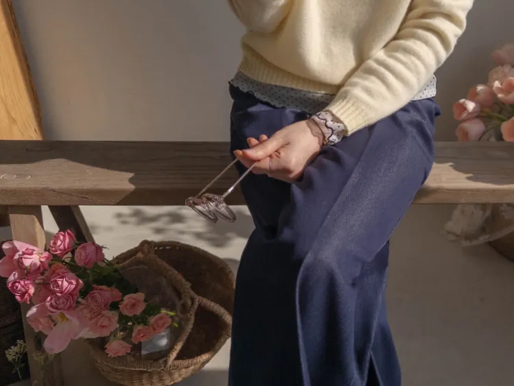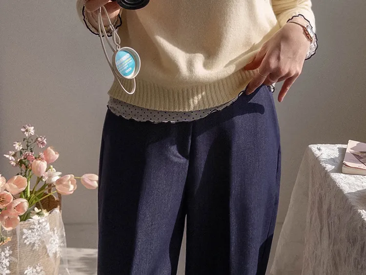 獨特垂墜線條柔軟修身寬版休閒褲