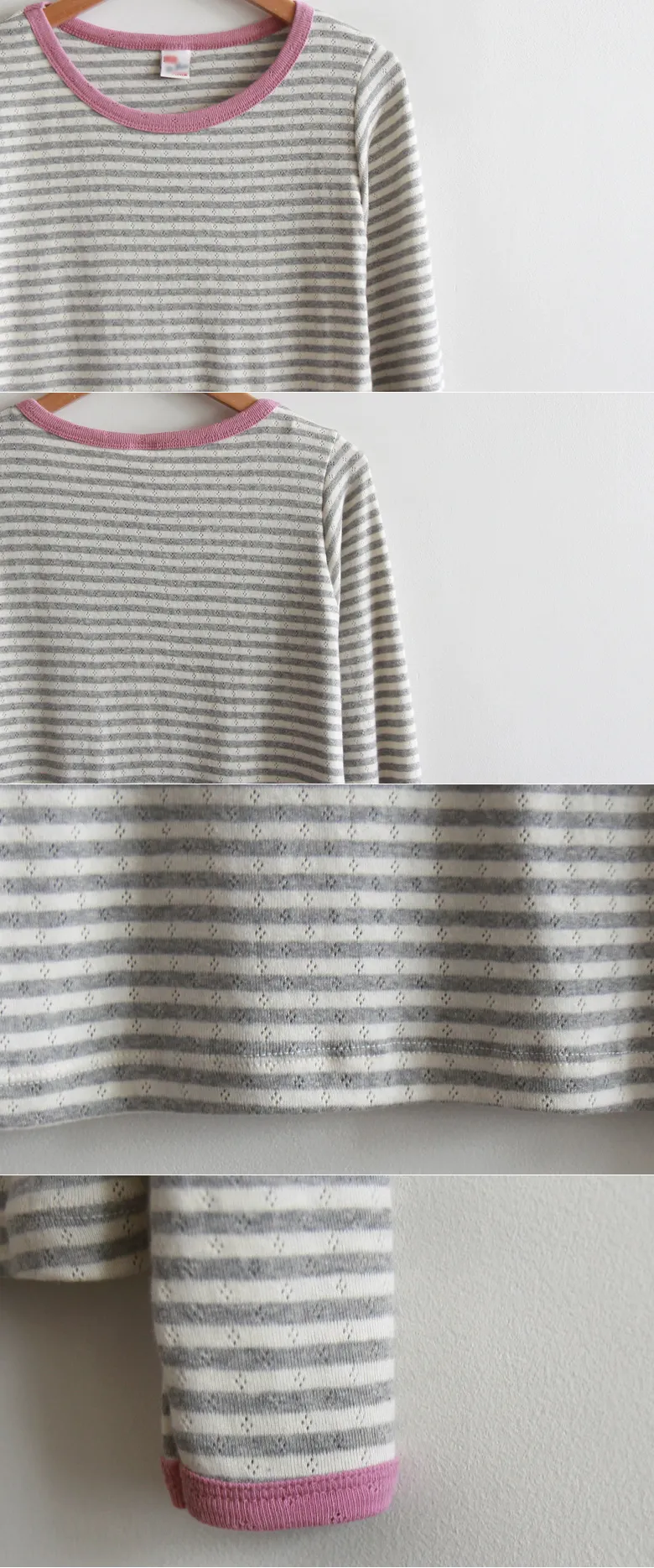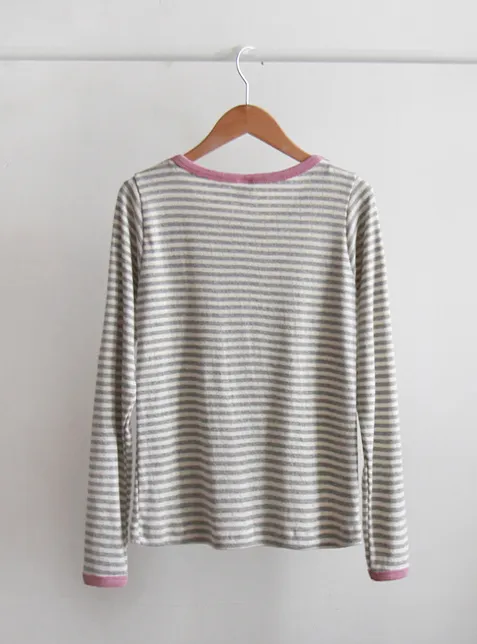 [柔軟舒適且富有彈性的材質] [帶有細微迷你鏤空的] [適合日常穿著的修身清新單品] [適合季節的顏色] [領口和袖口採用對比色設計] [