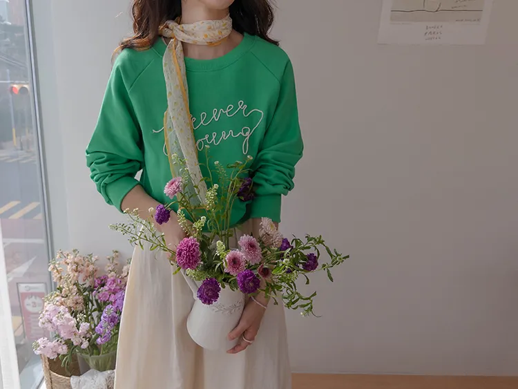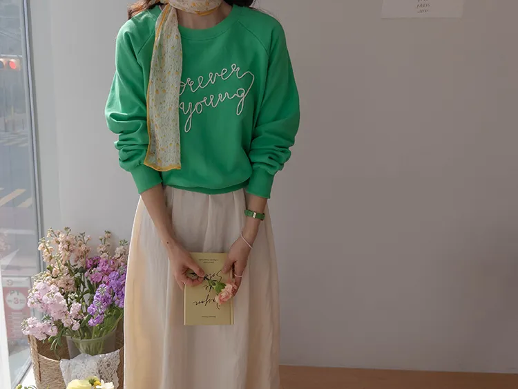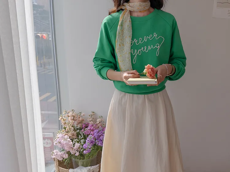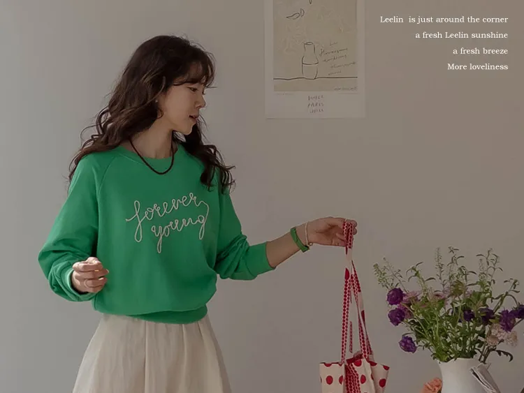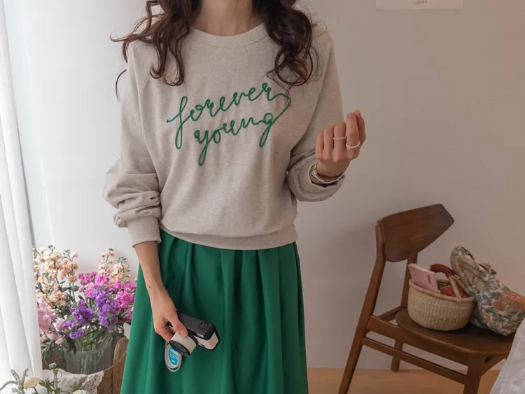 獨特魅力立體字母刺繡連肩袖修身版型穿搭上衣