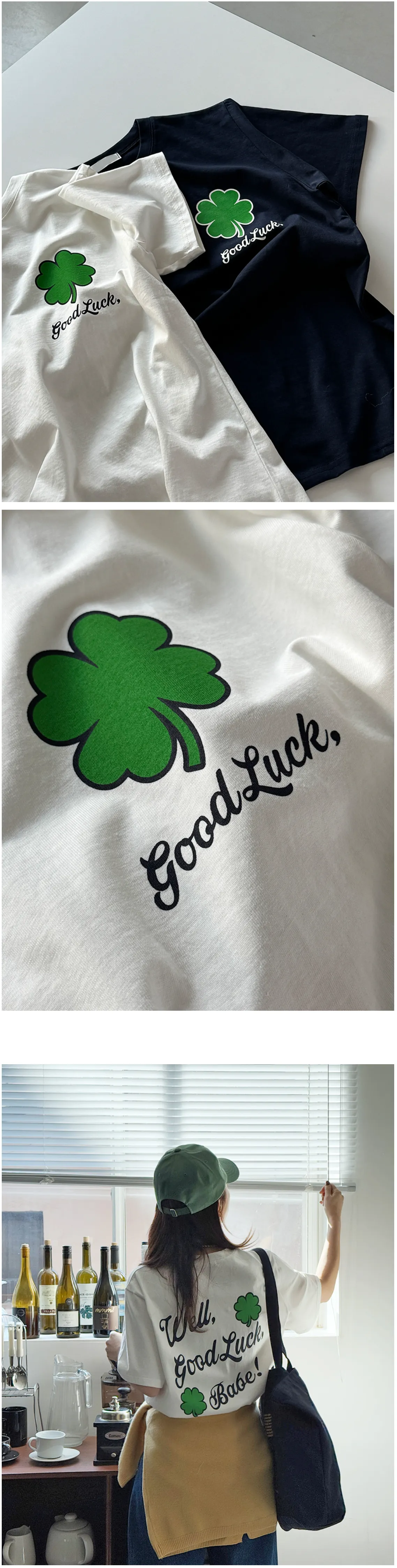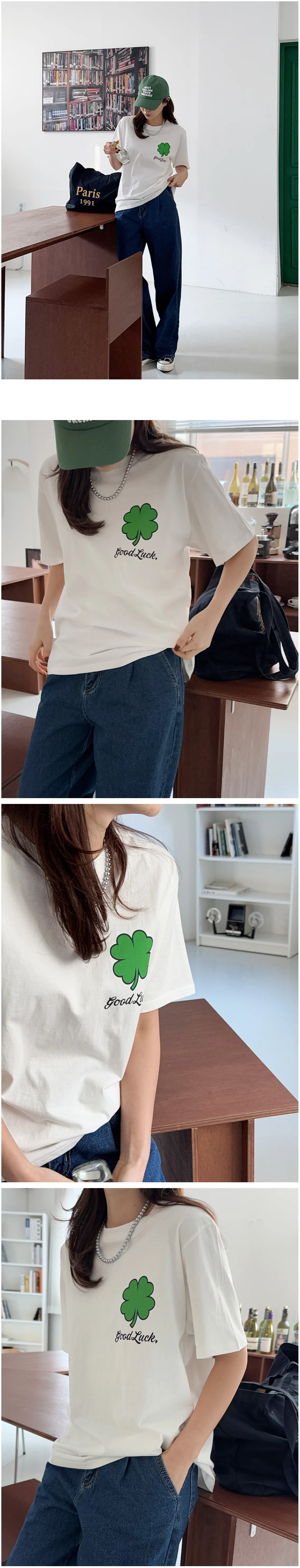 以四葉草(幸運的象徵)作為焦點印刷。 這是一款時尚休閒的短袖T,