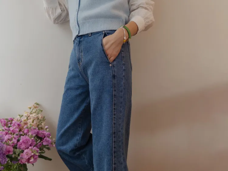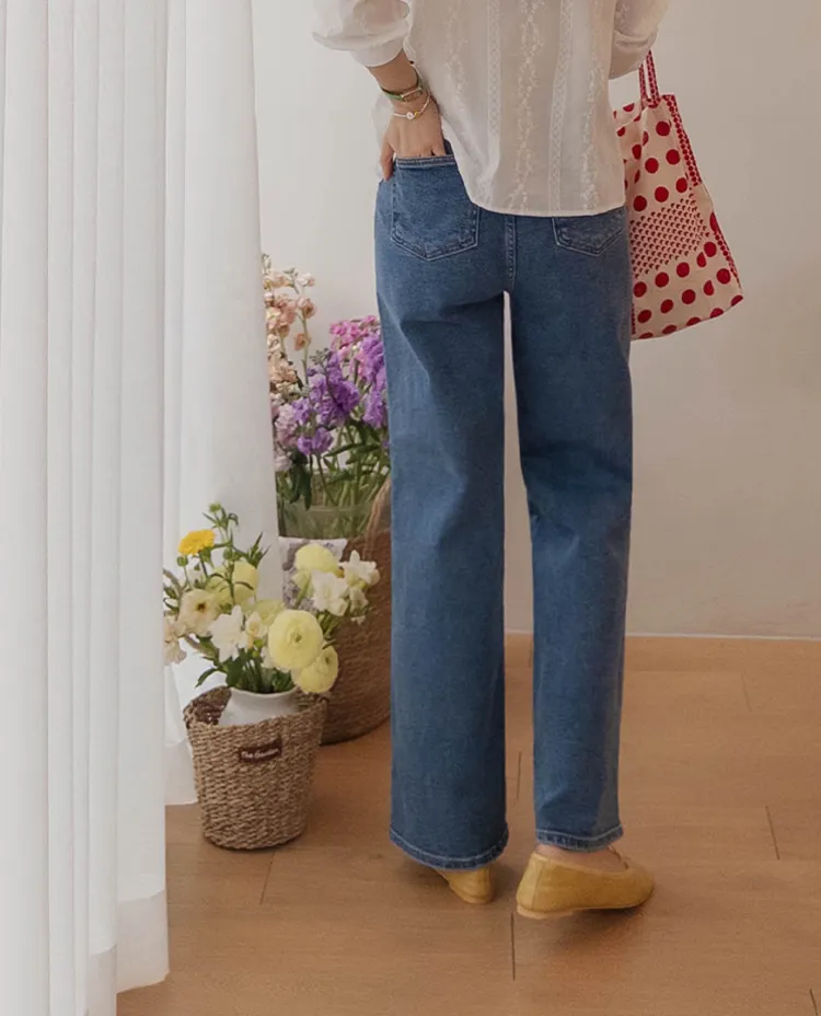 【時尚斜口袋鉚釘點~】 【97%棉、3%氨綸,從硬挺到舒適的彈性~】 【兩側有細緻的剪裁線條】 【半寬直筒版型】