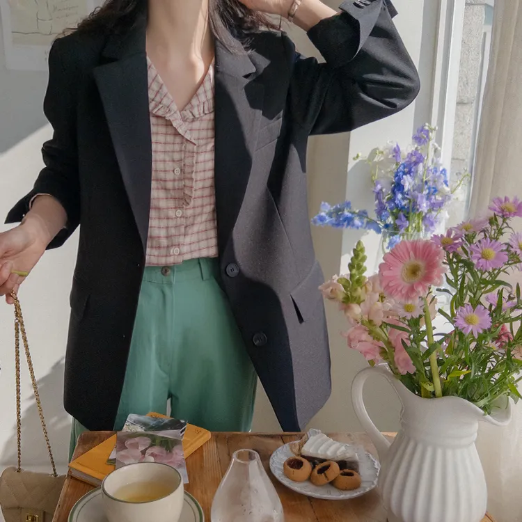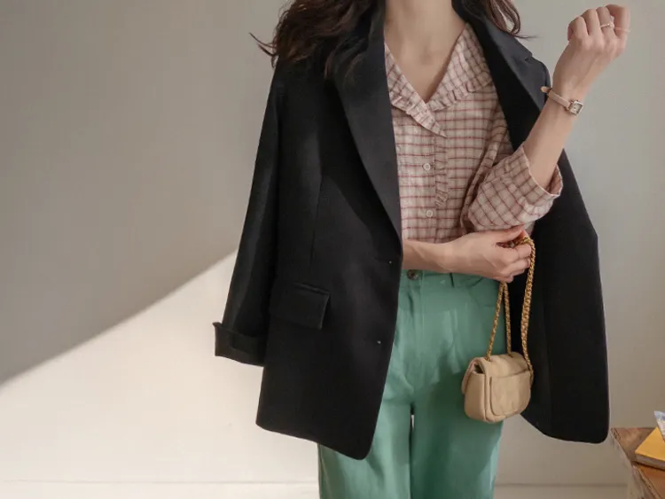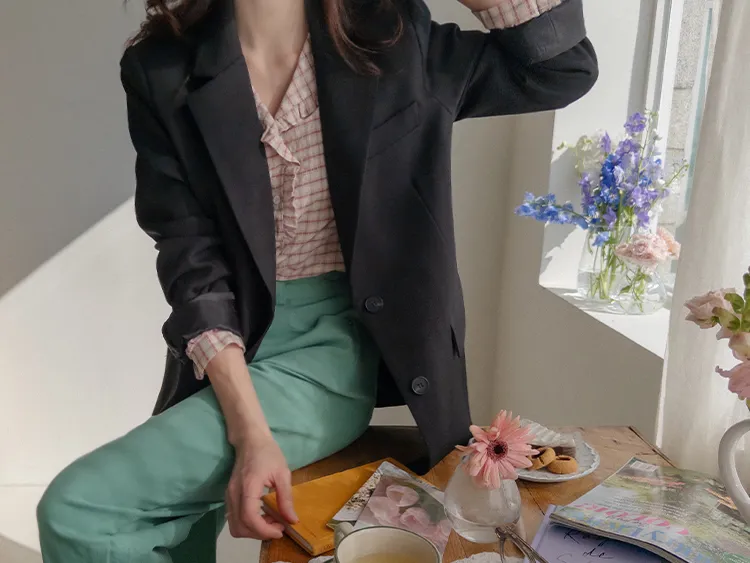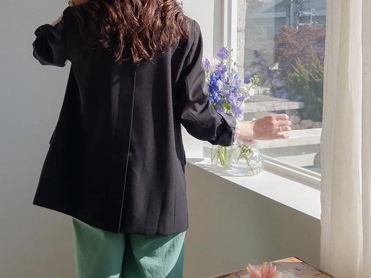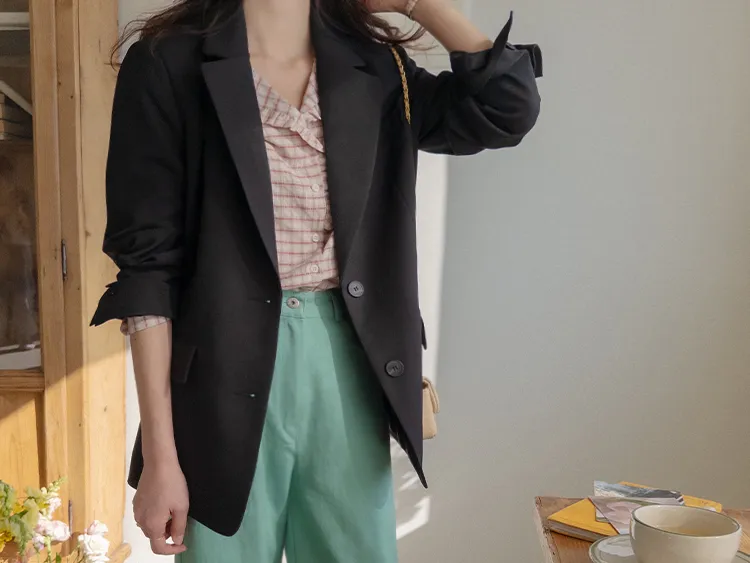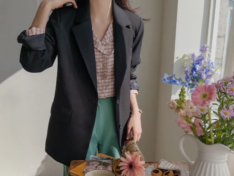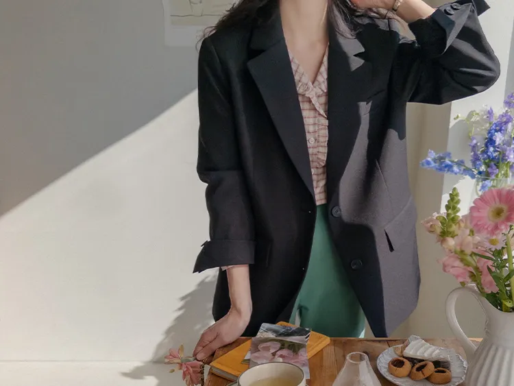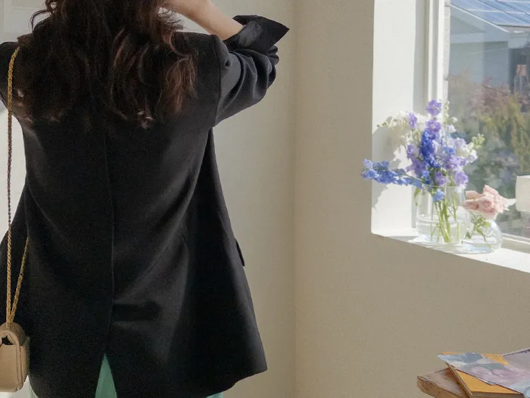 [時尚反轉魅力後開衩外套♥] [含有5%氨綸,布料柔軟有彈性] [緊實而漂亮合身] [百搭日常外套]