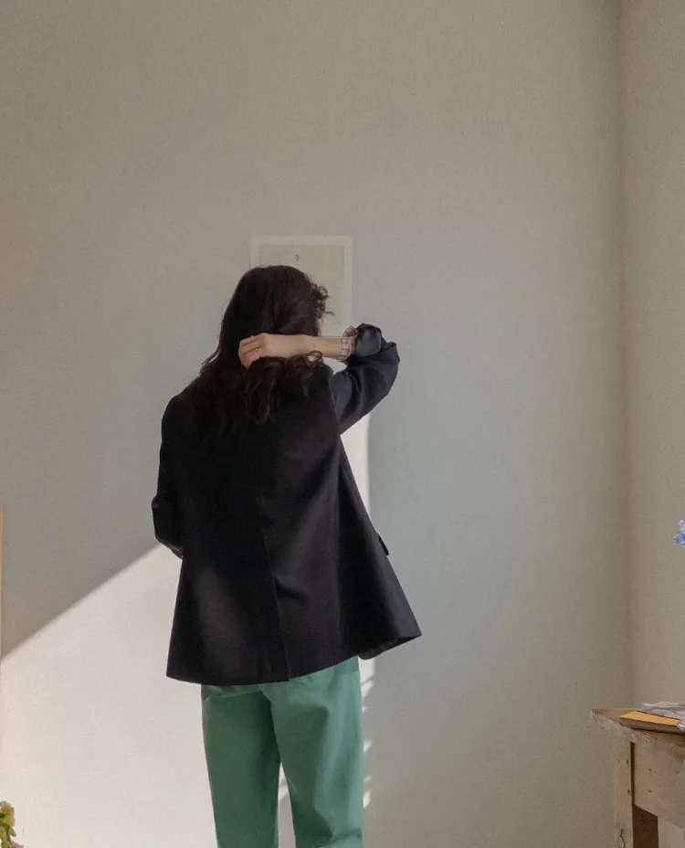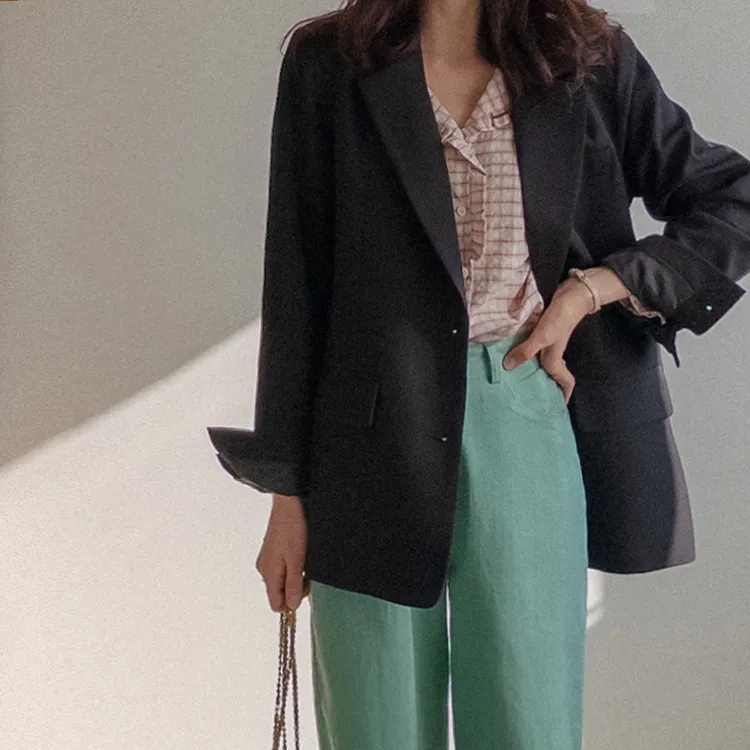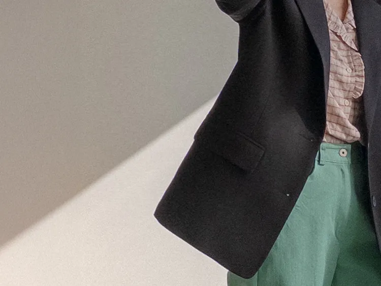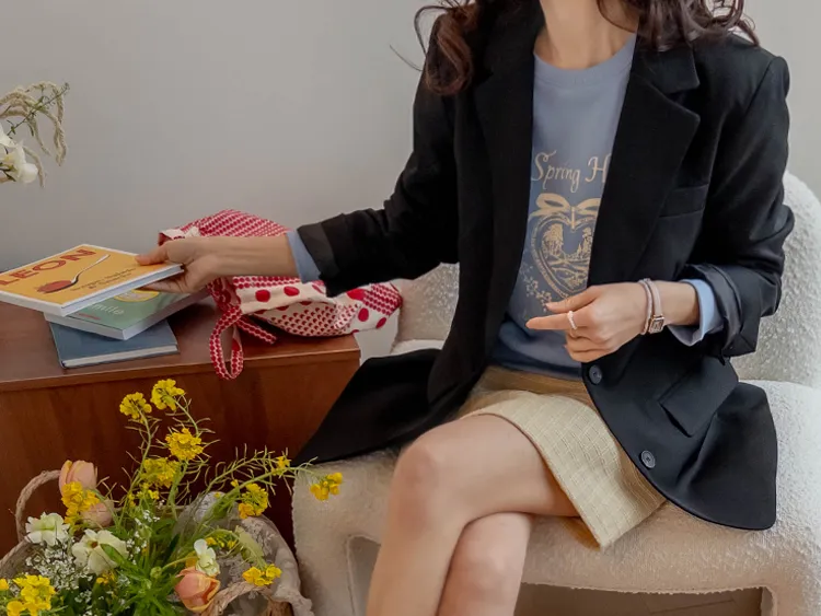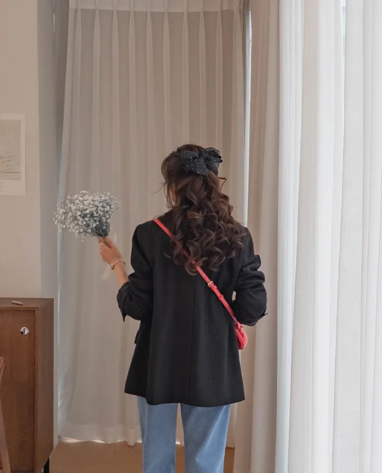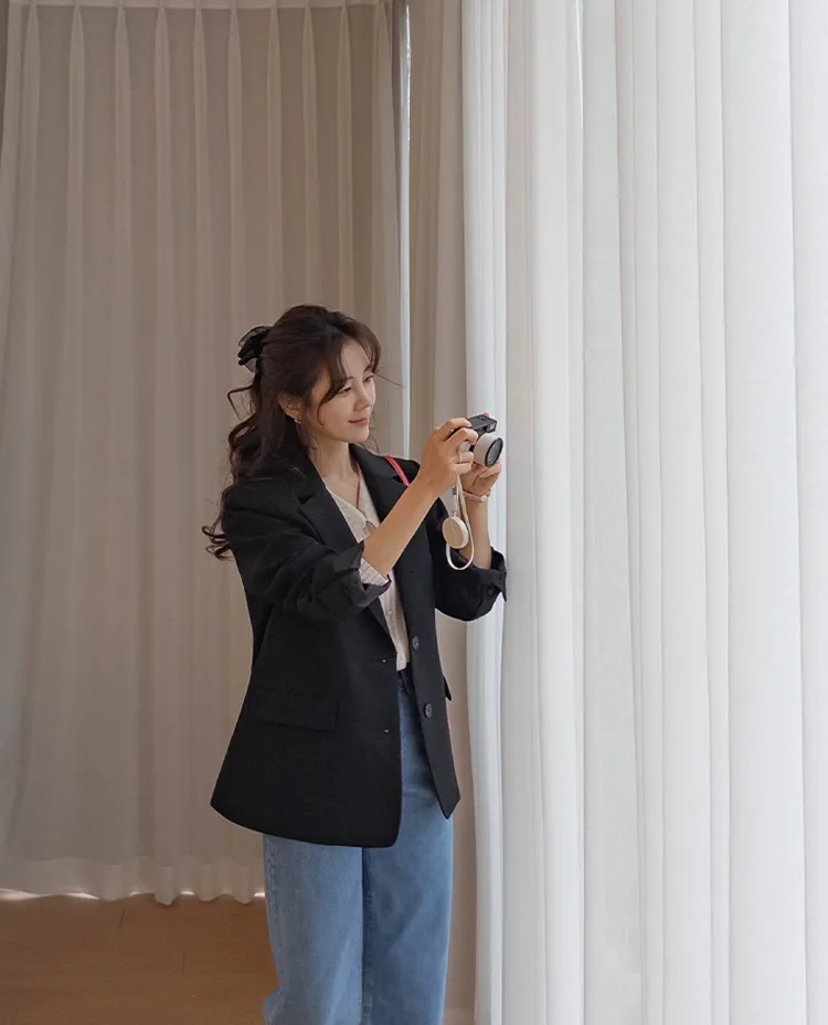 [時尚反轉魅力後開衩外套♥] [含有5%氨綸,布料柔軟有彈性] [緊實而漂亮合身] [百搭日常外套]