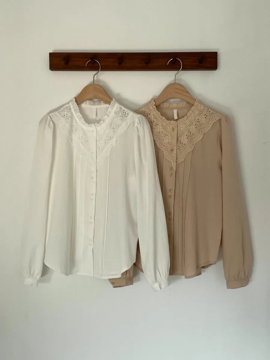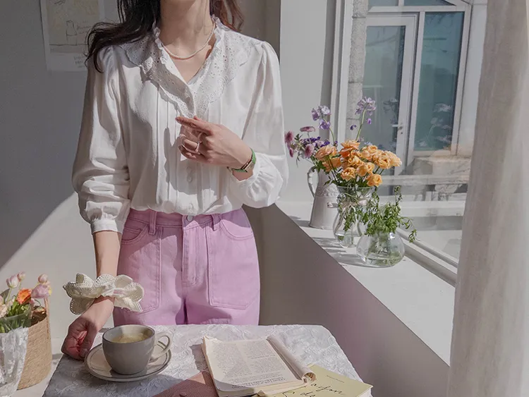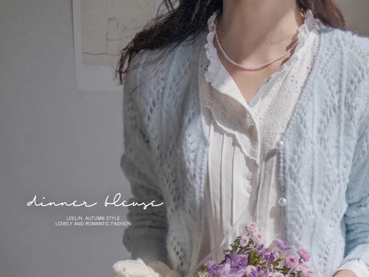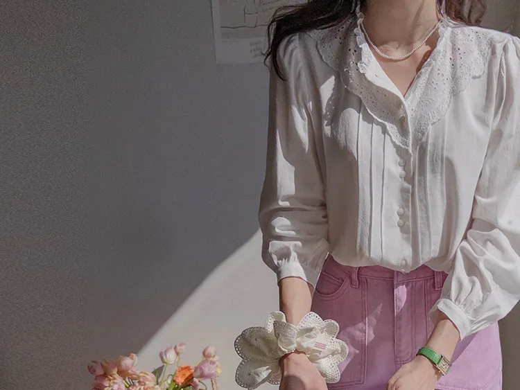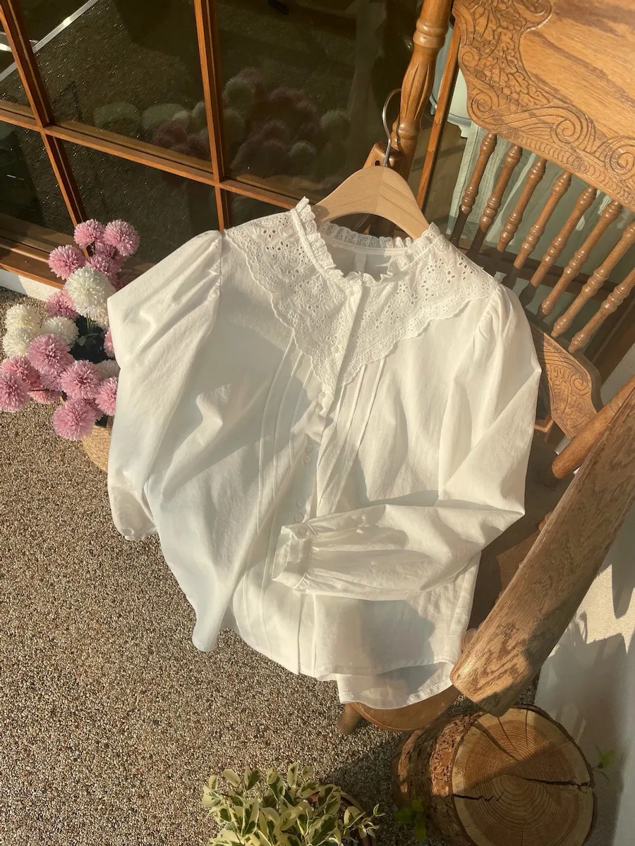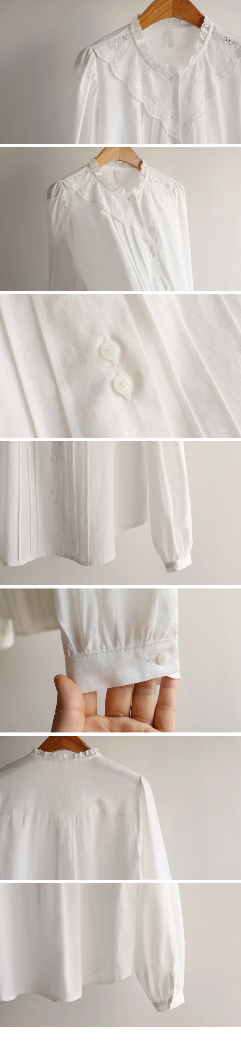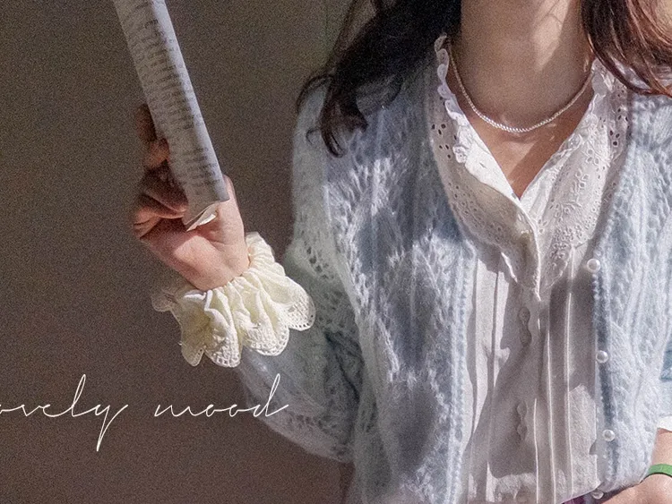 [充滿浪漫情懷的蕾絲上衣✿] [雙扣的排列,散發出獨特的魅力~] [與外套完美搭配的荷葉摺邊領口! ] [清新柔軟的棉質面料,穿著舒適]