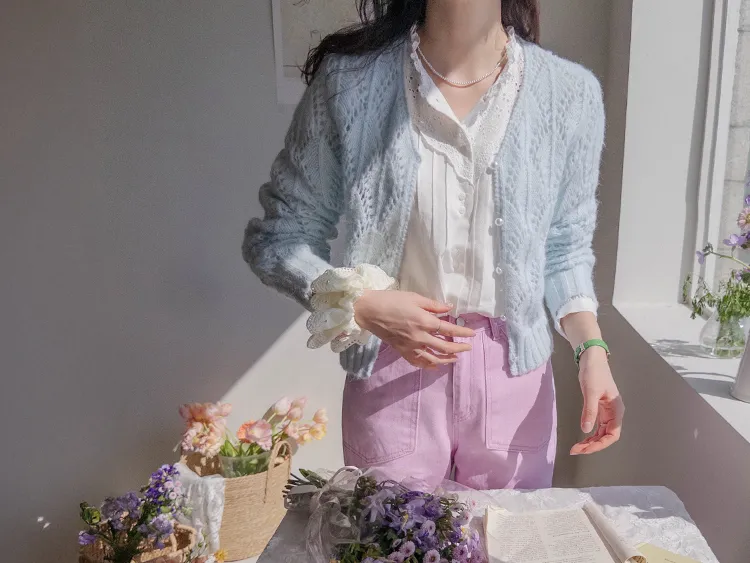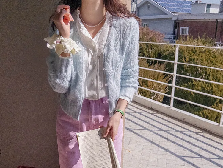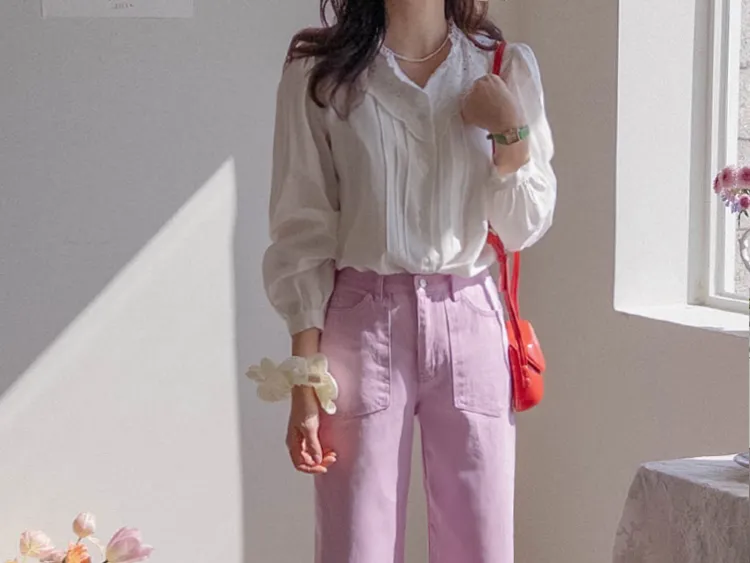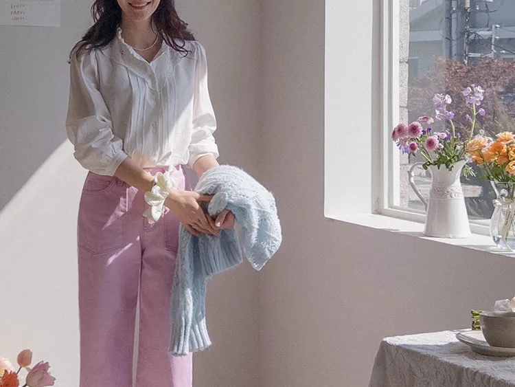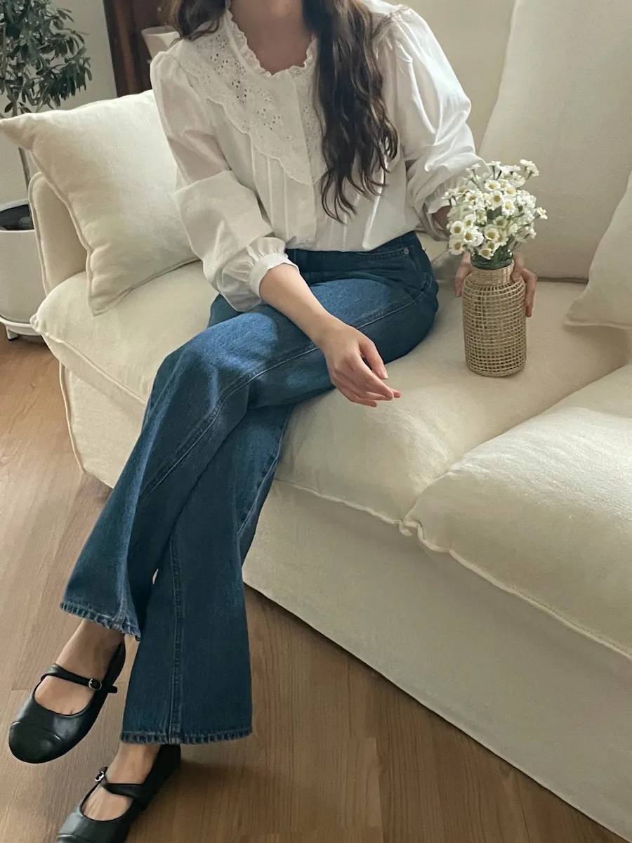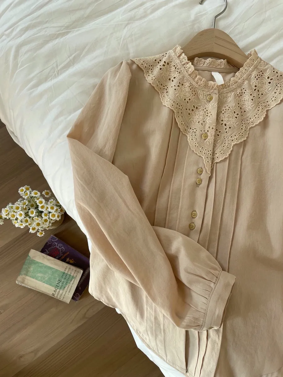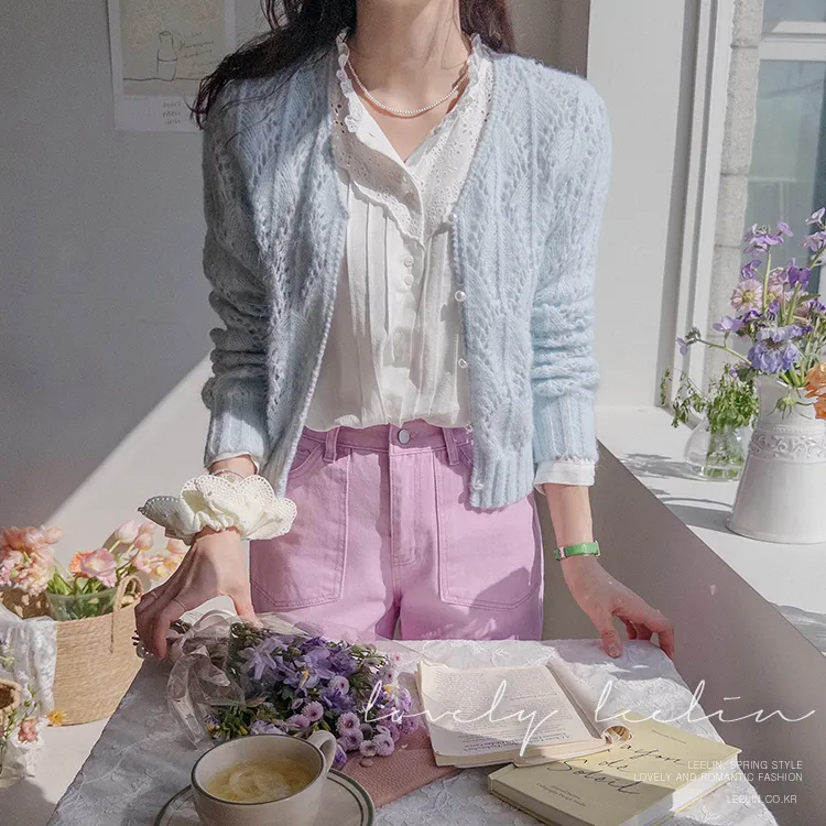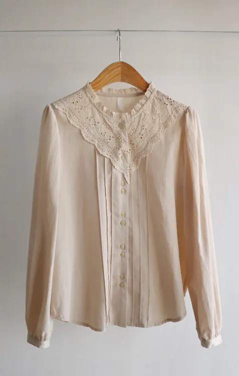 [充滿浪漫情懷的蕾絲上衣✿] [雙扣的排列,散發出獨特的魅力~] [與外套完美搭配的荷葉摺邊領口! ] [清新柔軟的棉質面料,穿著舒適]