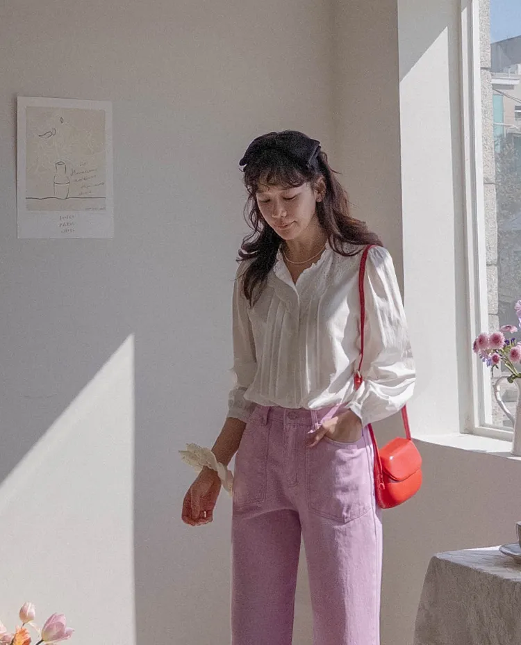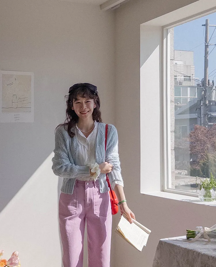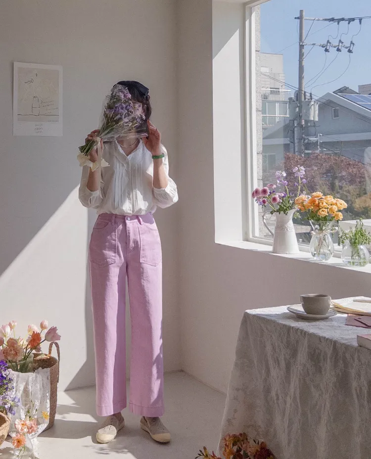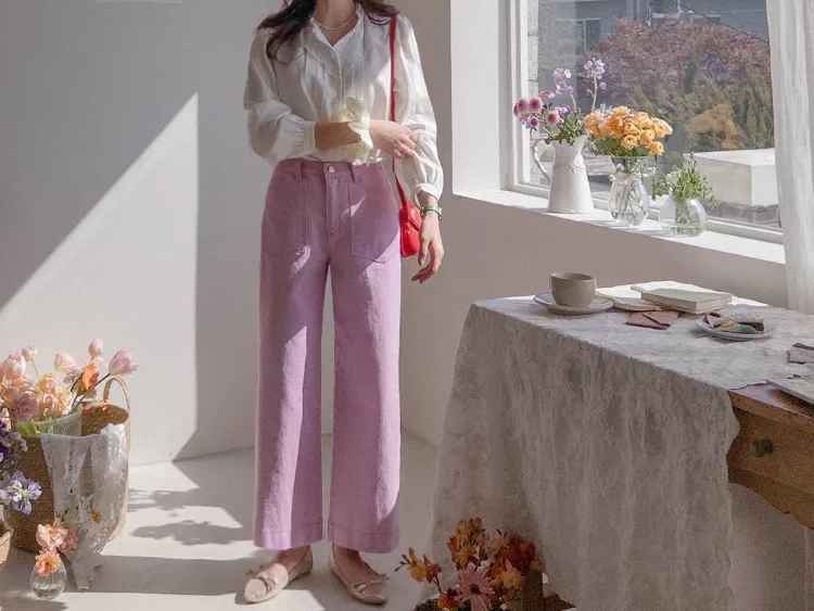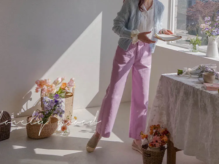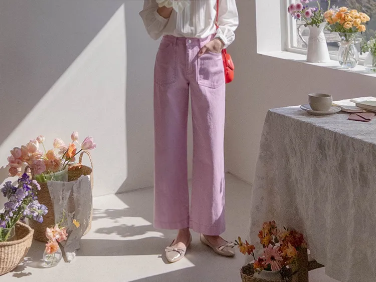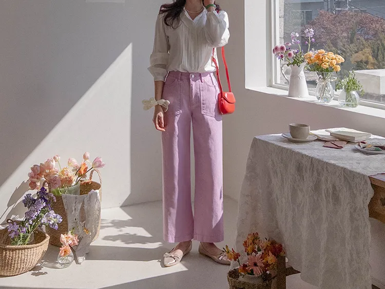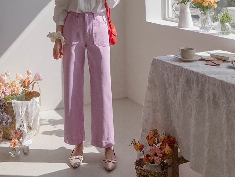 獨特迷人色感大口袋寬鬆直筒休閒褲