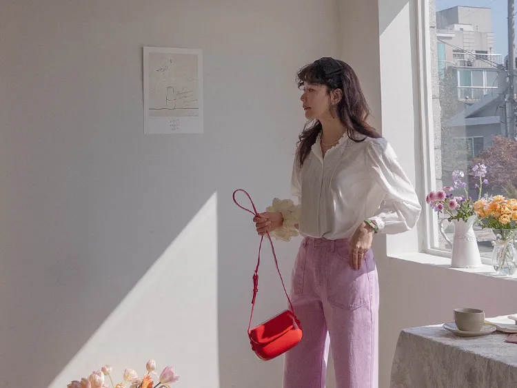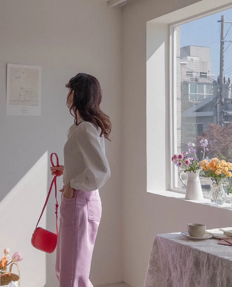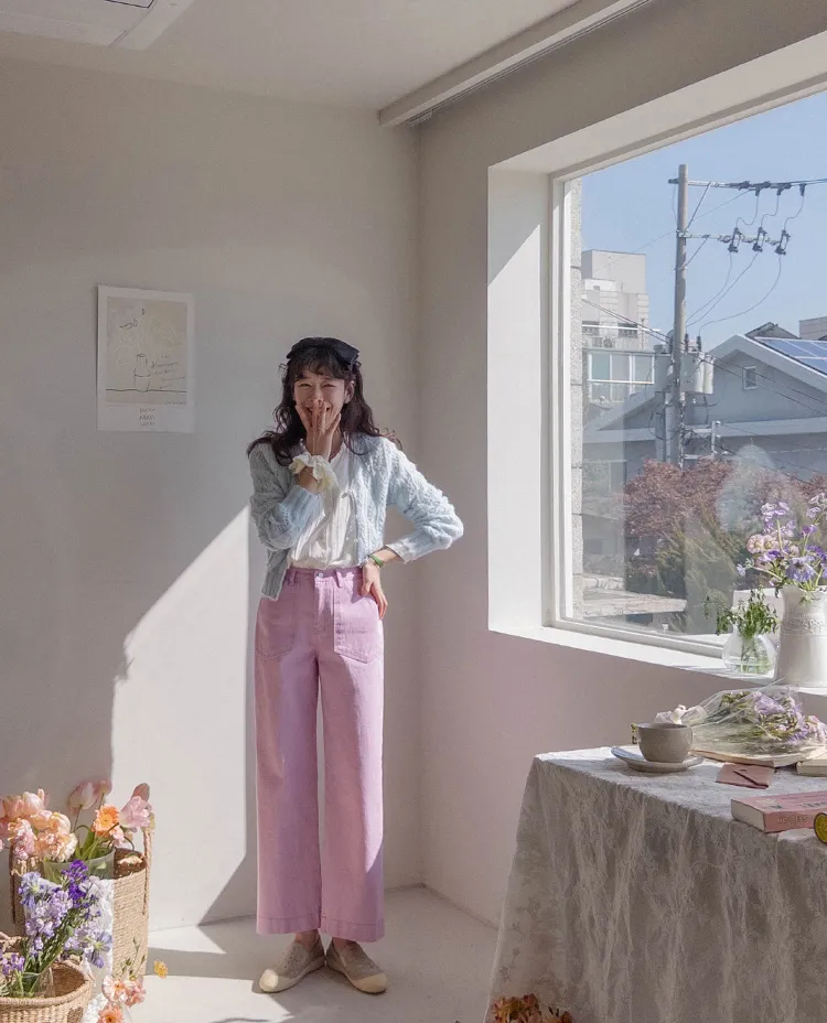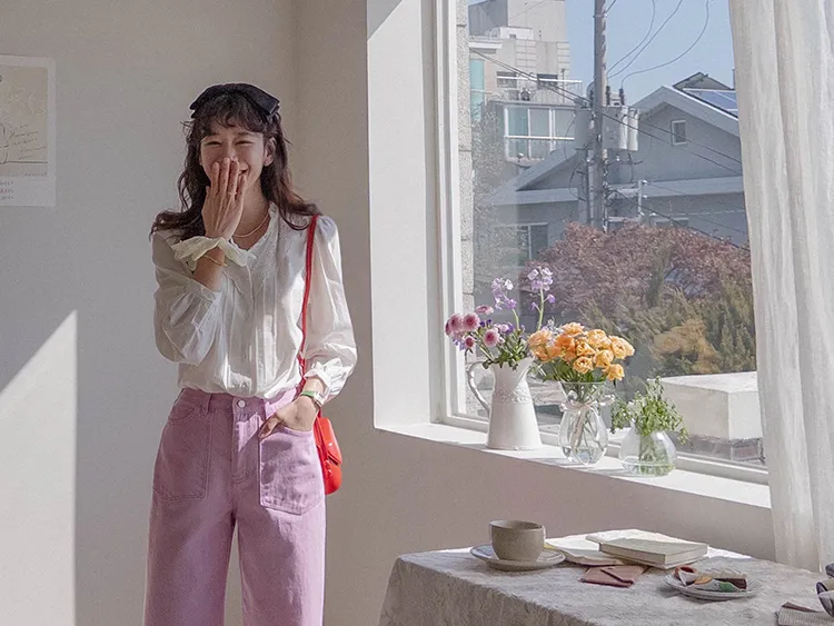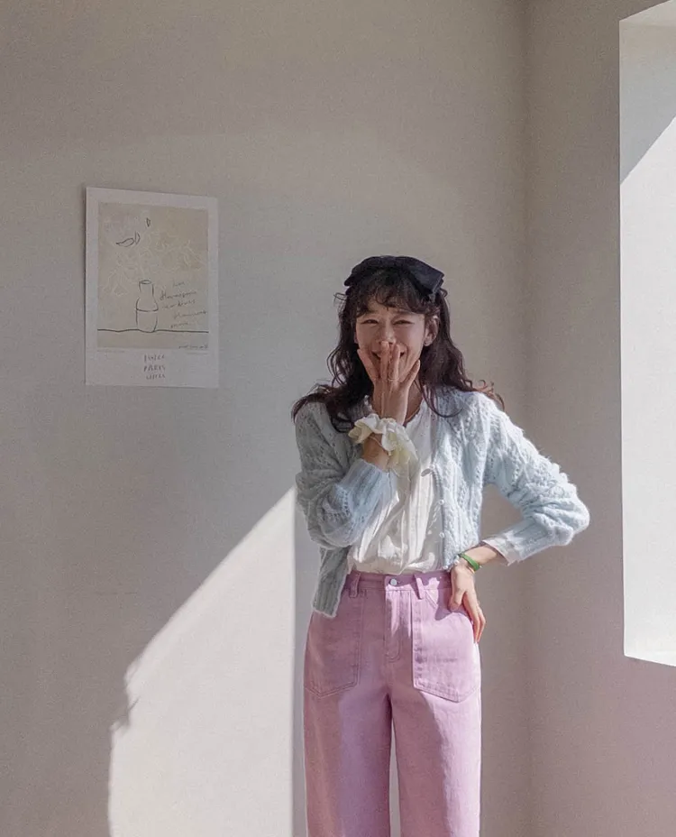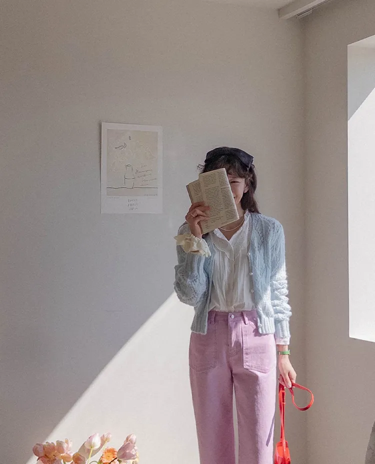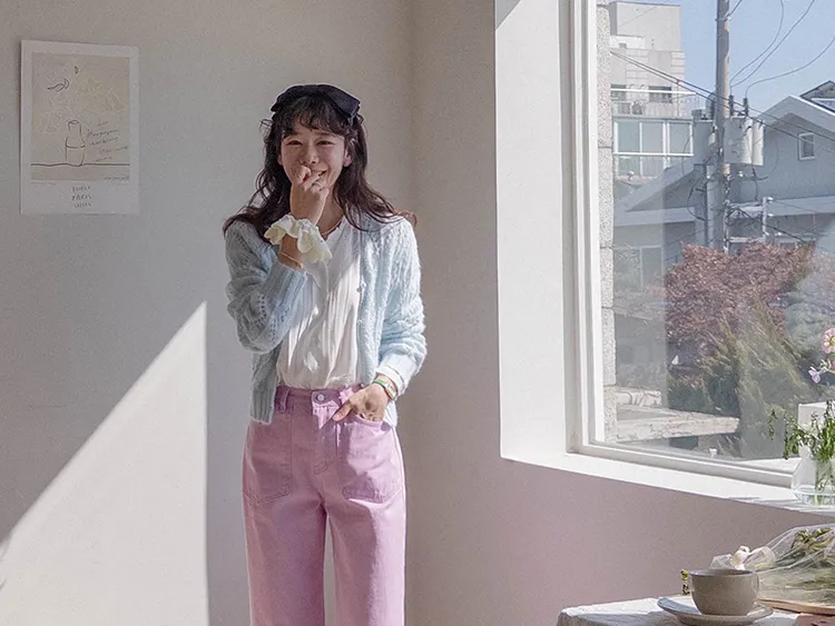 獨特迷人色感大口袋寬鬆直筒休閒褲