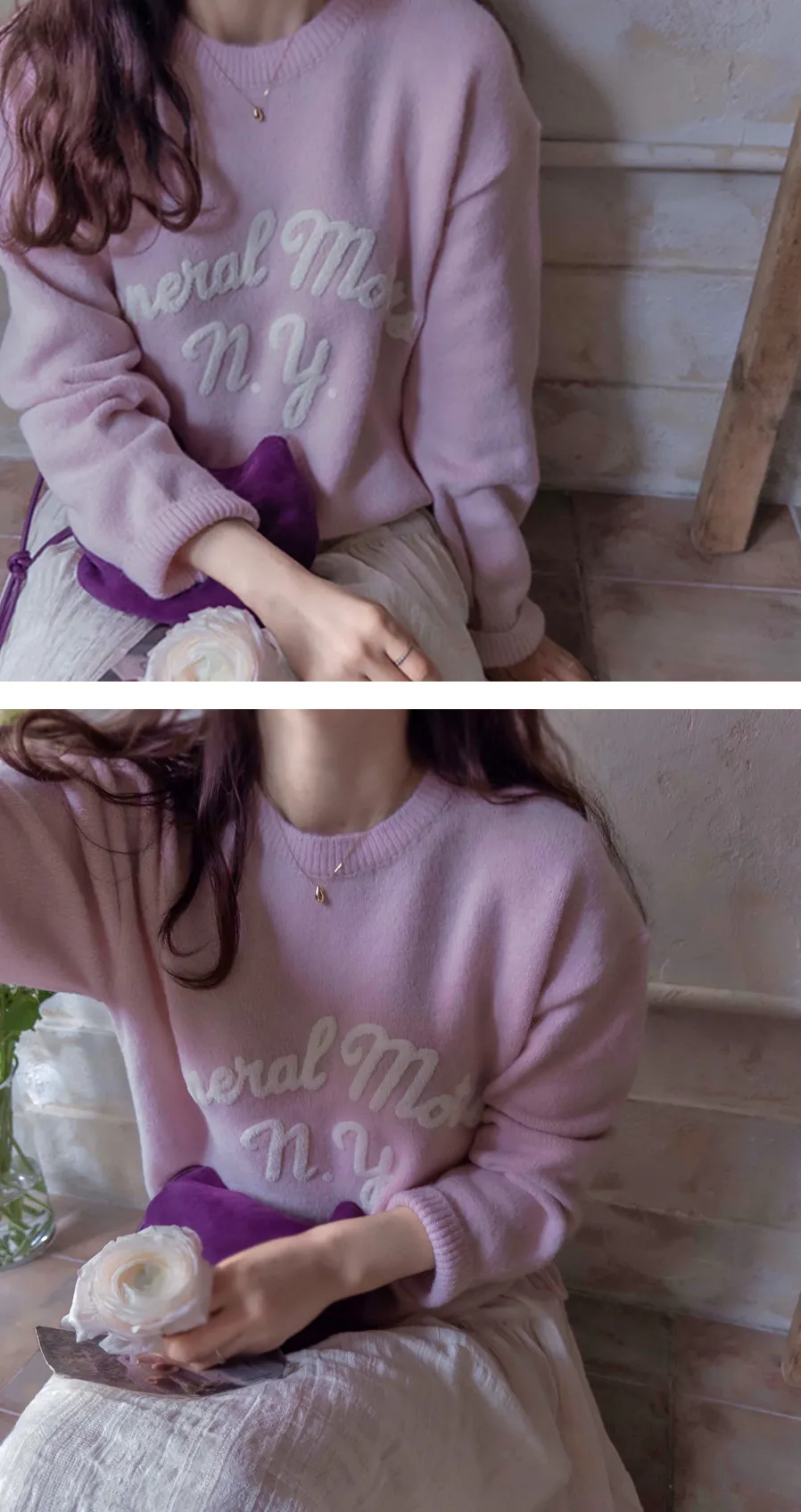 [柔軟材質] [[下腰帶:可調節 - 連接] [柔軟有彈性的舒適針織] [帶有柔和色彩的春天氣息針織] [帶有字母刺繡的獨特設計] [柔軟而有彈性,穿著舒適] [華麗時尚的針織]