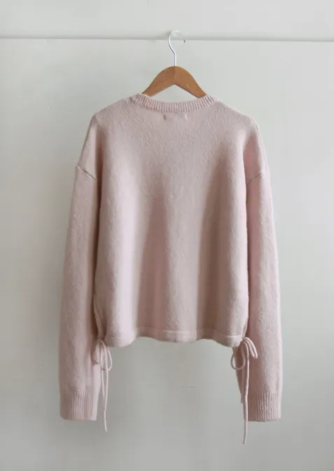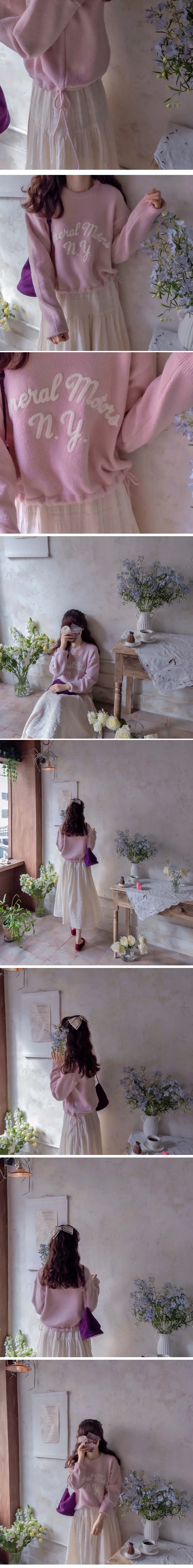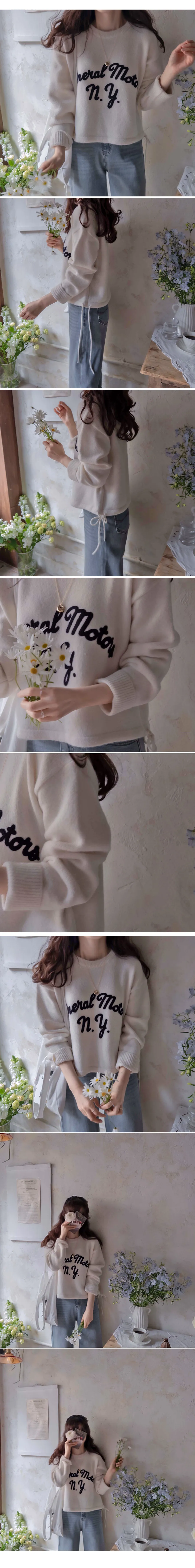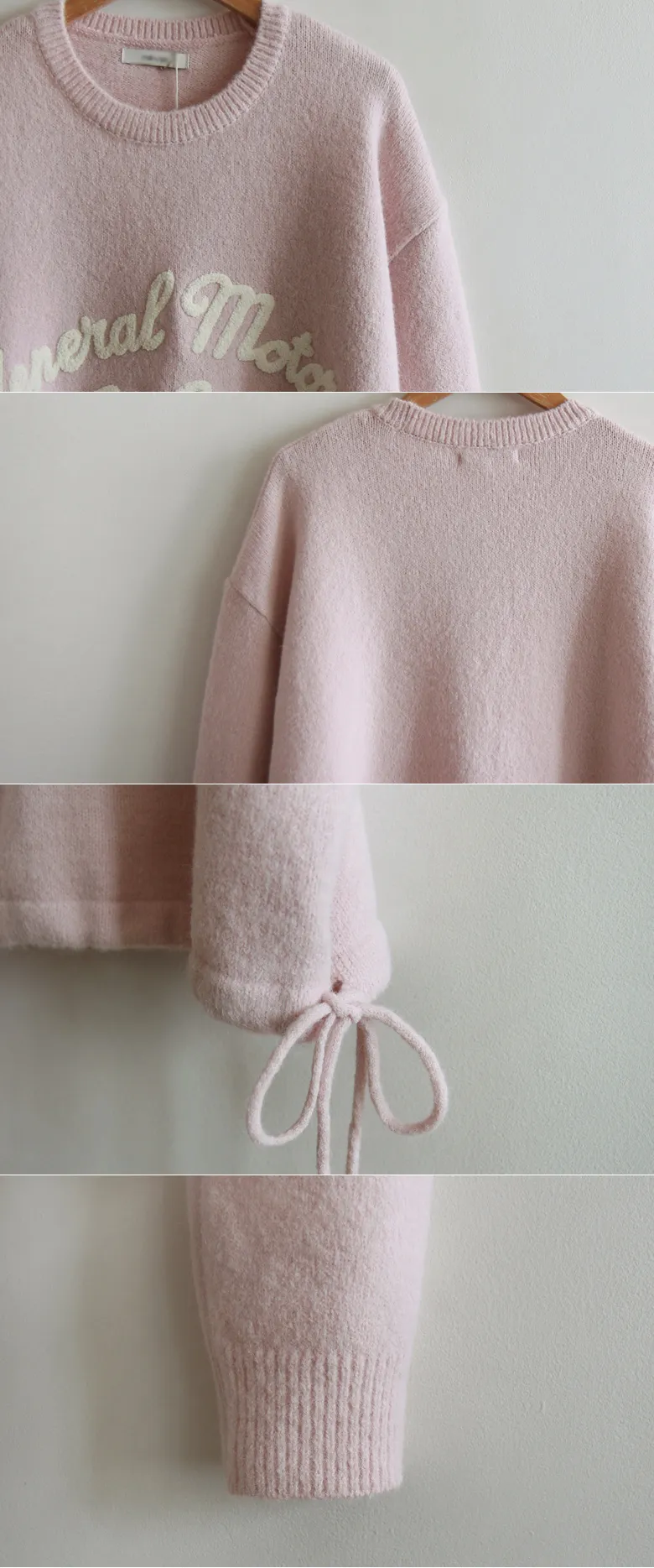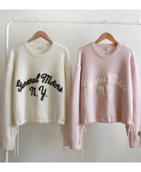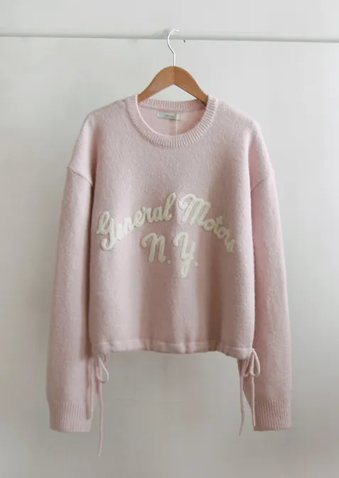 柔和色調下擺綁帶收腰柔軟彈性字母針織上衣