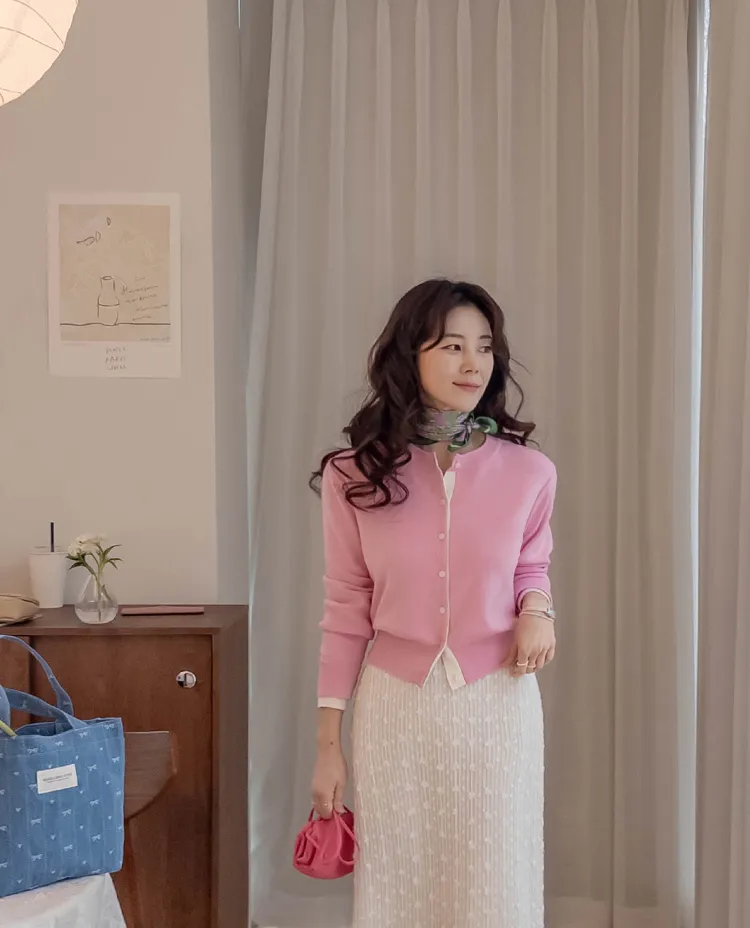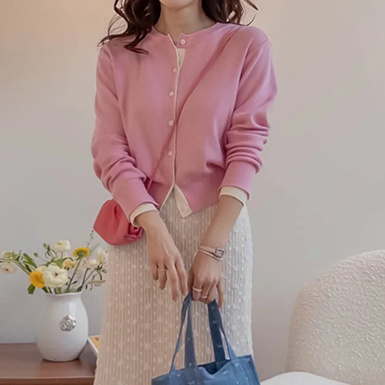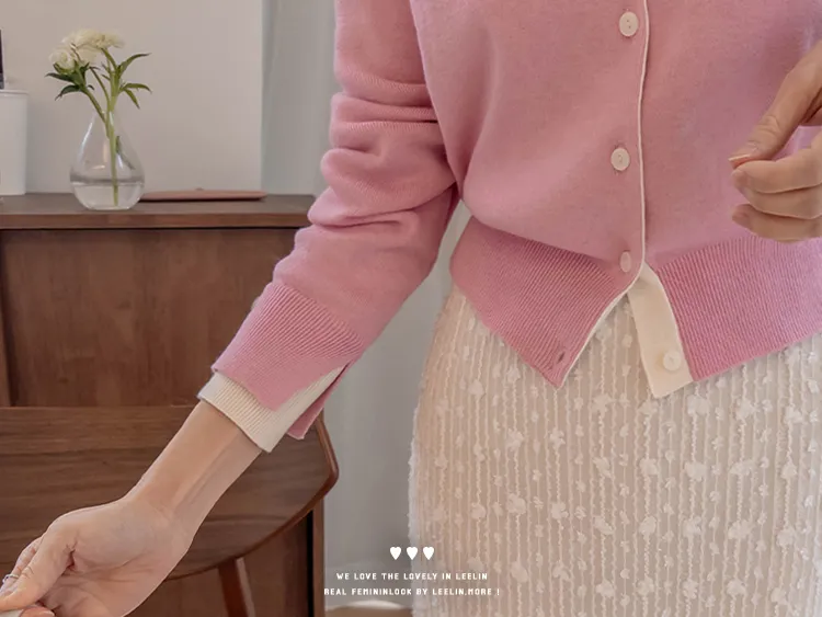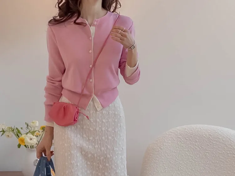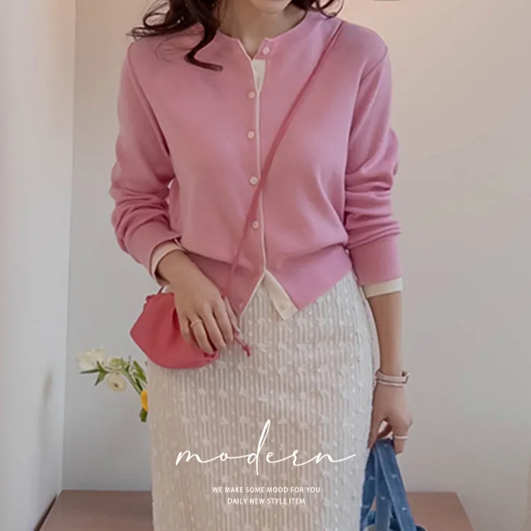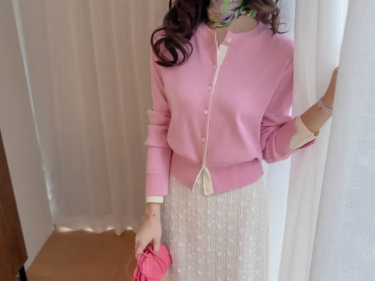 [微妙的色彩點 ~ 自然的春季開衫♥] [像層疊穿一樣 ~ 袖子上有色彩點] [柔軟的質感] [令人感覺春天已經來臨的明亮色彩感]