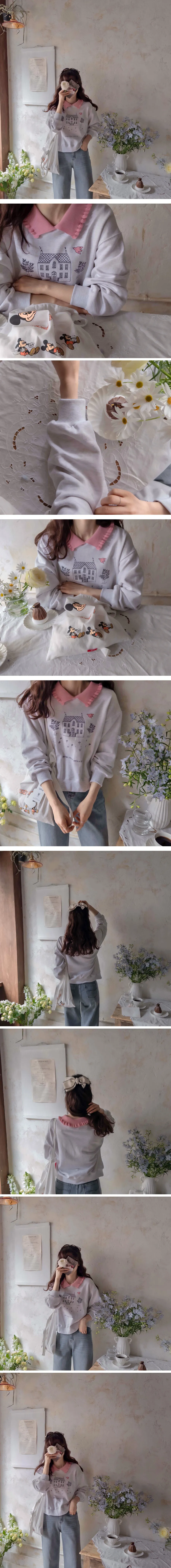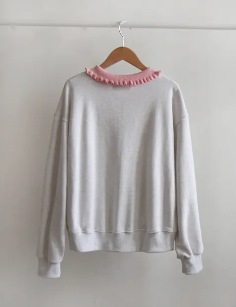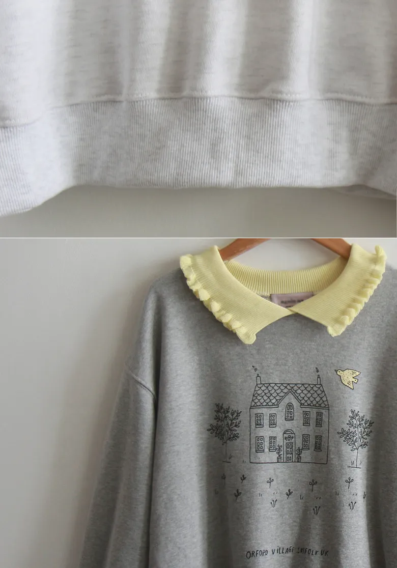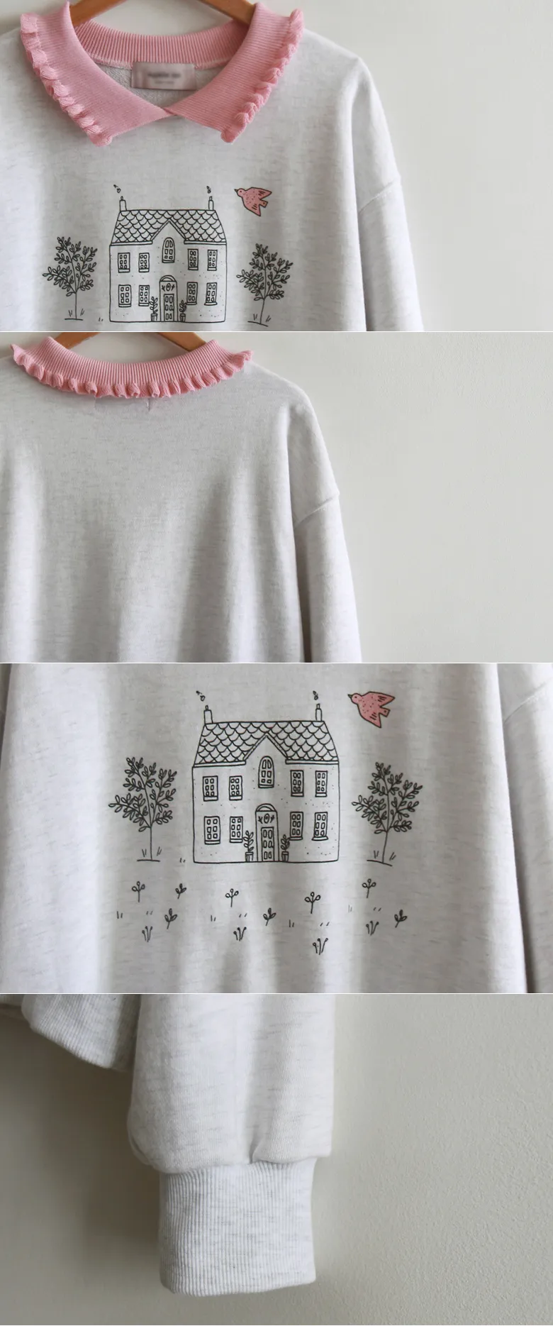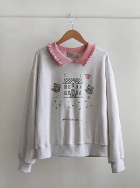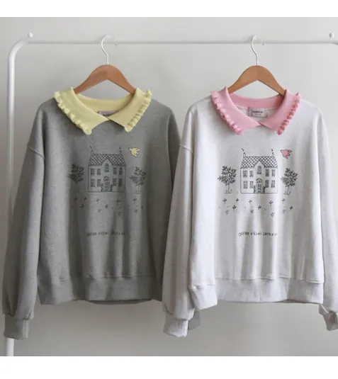 春天氣息可愛配色摺邊領印花穿搭上衣
