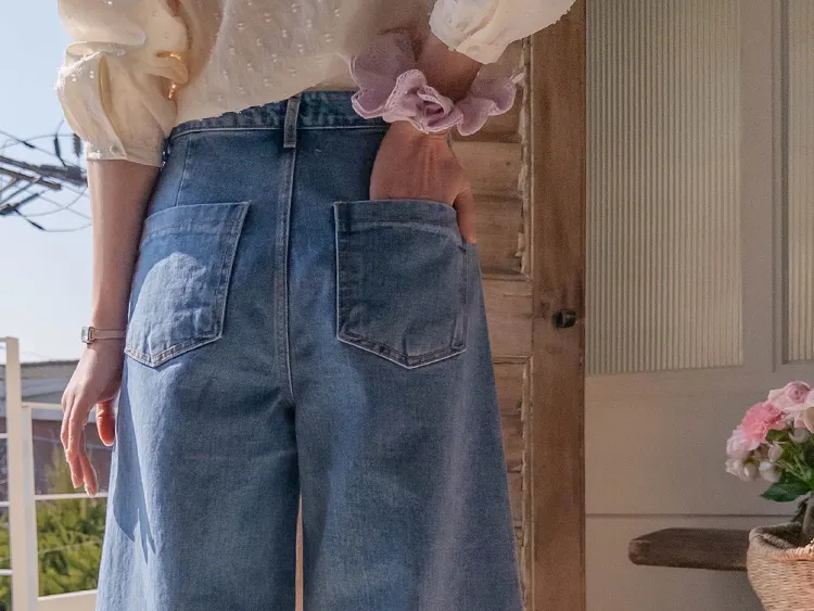 【現代風潮!風格牛仔褲♥] [活潑的褲子! ] [寬版的A字褲,修飾身形! ] [100%純棉布料,手感緊實]