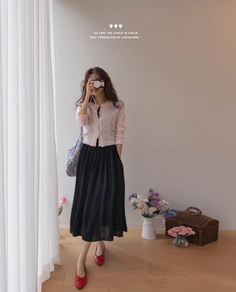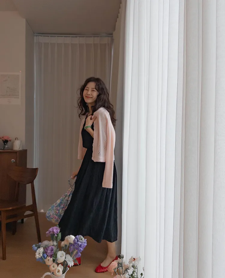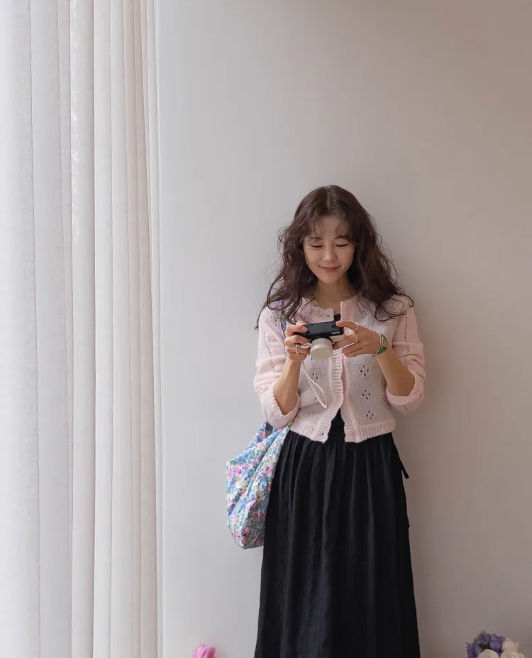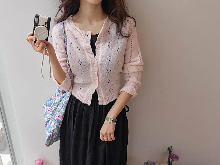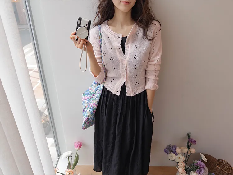 柔和色彩可愛波浪邊鏤空孔洞開衫