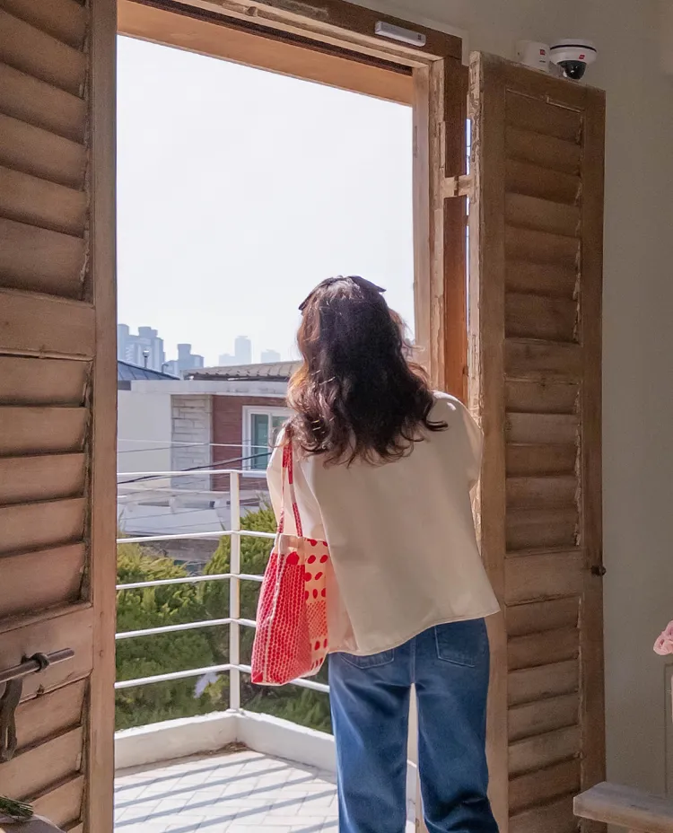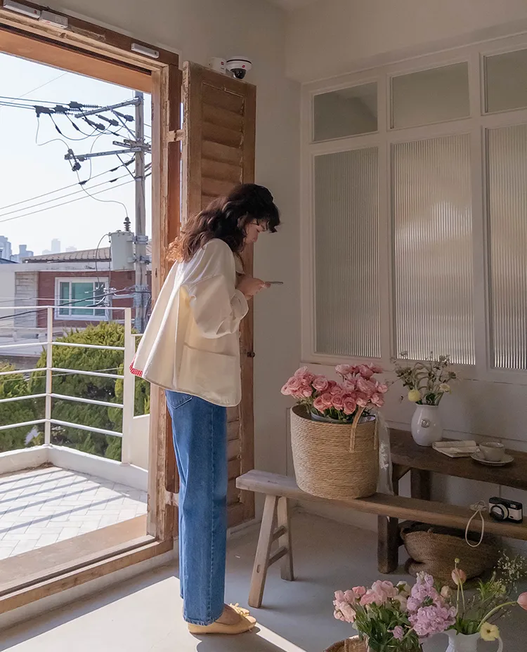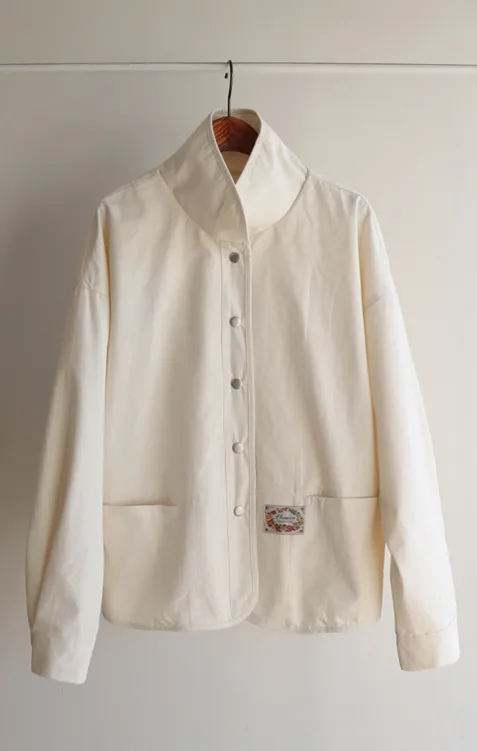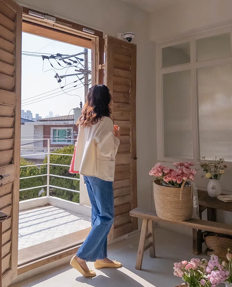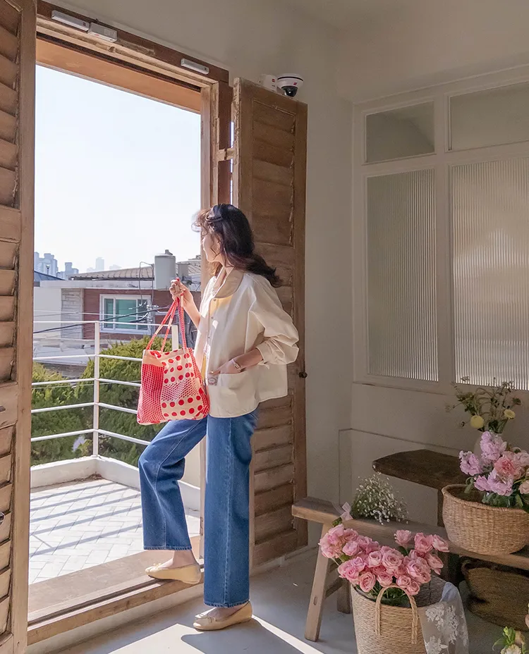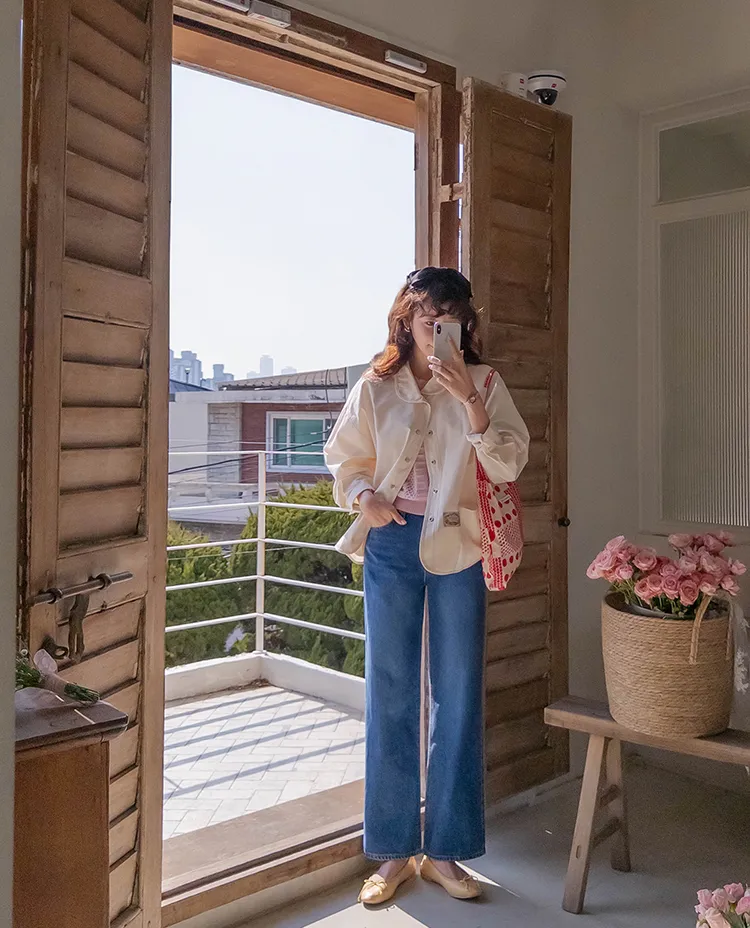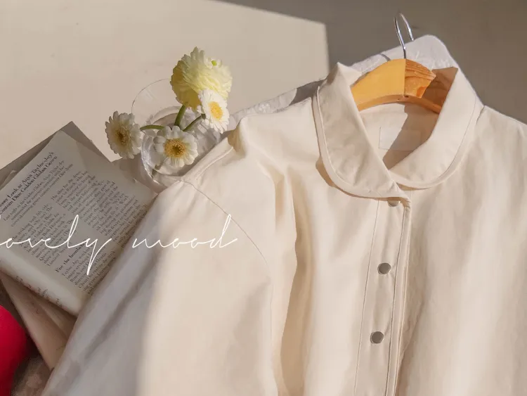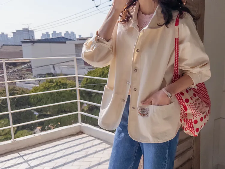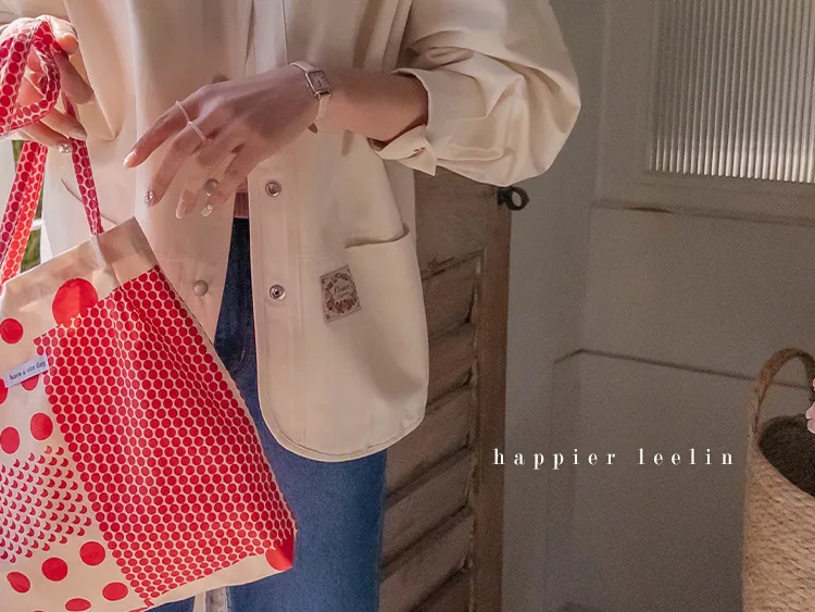 柔和圓潤剪裁點綴花朵標籤穿搭外套