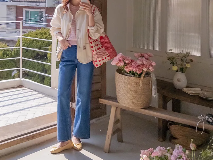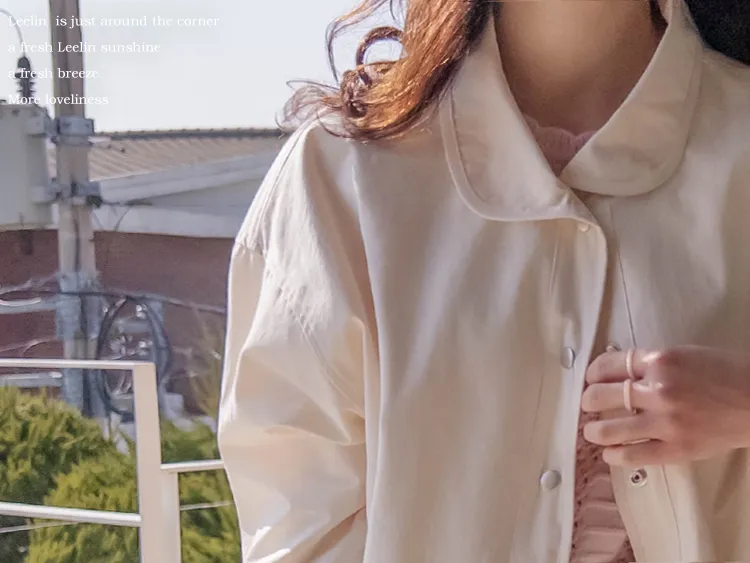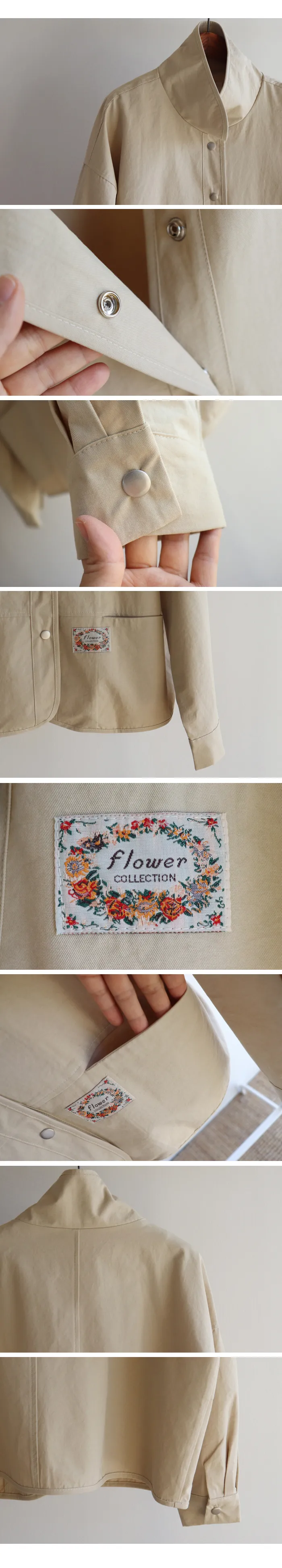 [帶有迷人花朵貼點的半長款外套♥] [圓潤的下擺彰顯柔美魅力~] [平領細節] [適合各種造型!穿著舒適~]
