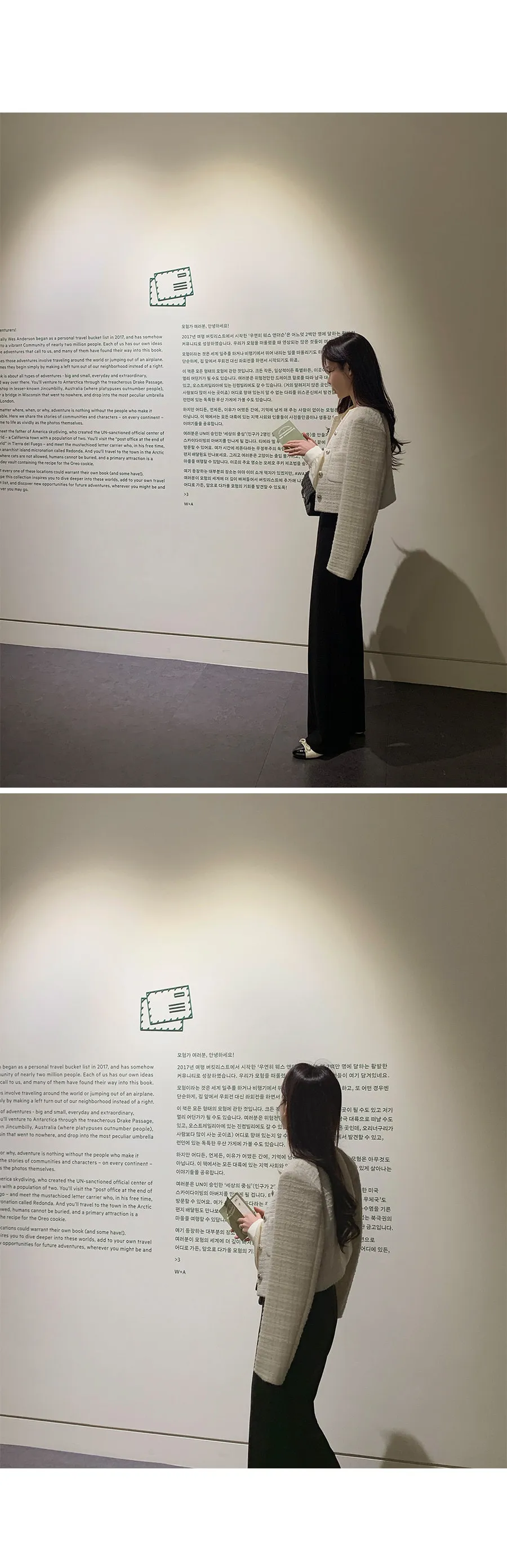 一款能增添美麗氣息的花呢外套。這件外套各處都添加了銀色細節,閃光點根據光線照射的角度營造出更奢華的感覺。