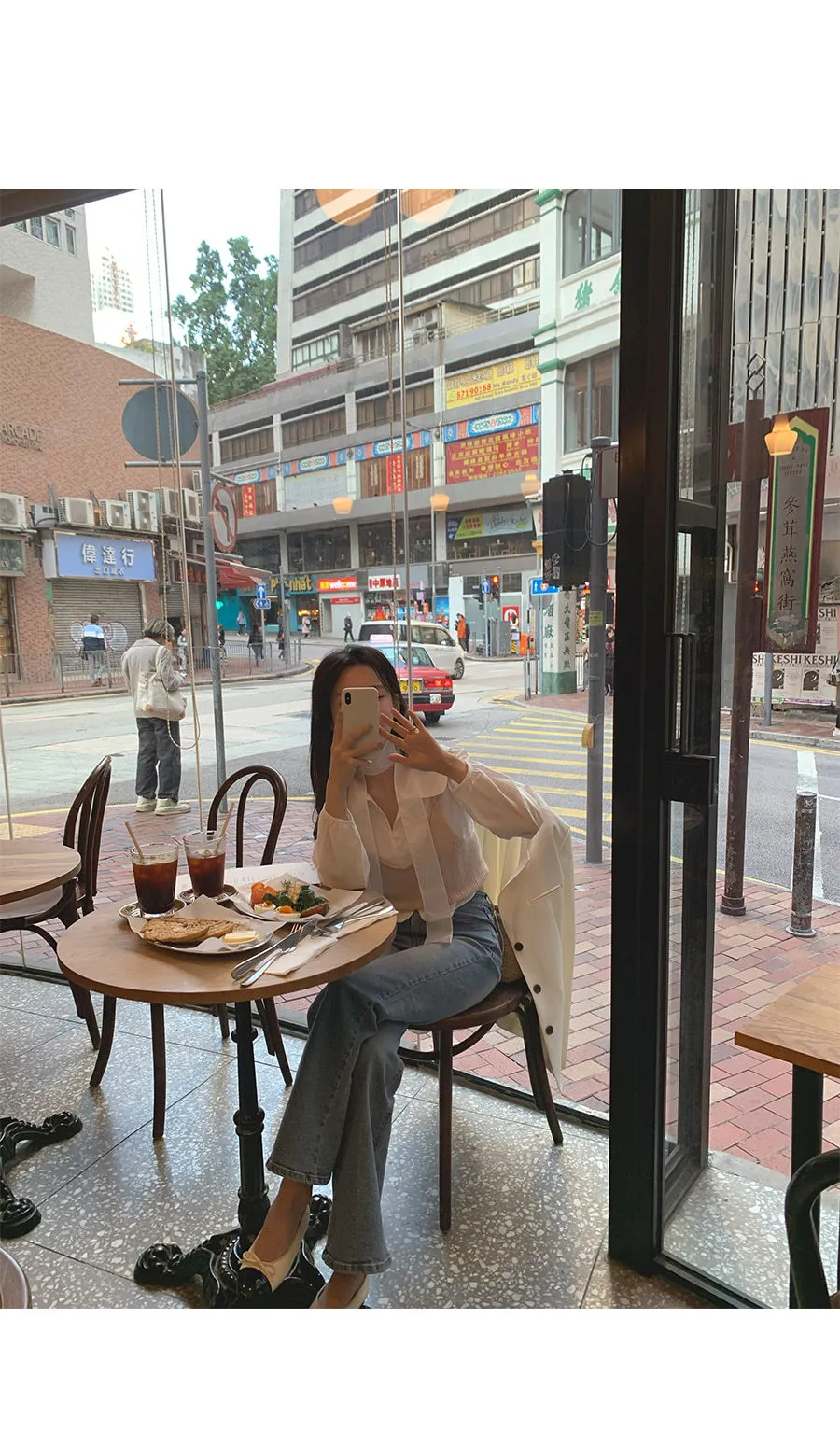 自然產生的大領口細節塑造出纖細的臉部線條,