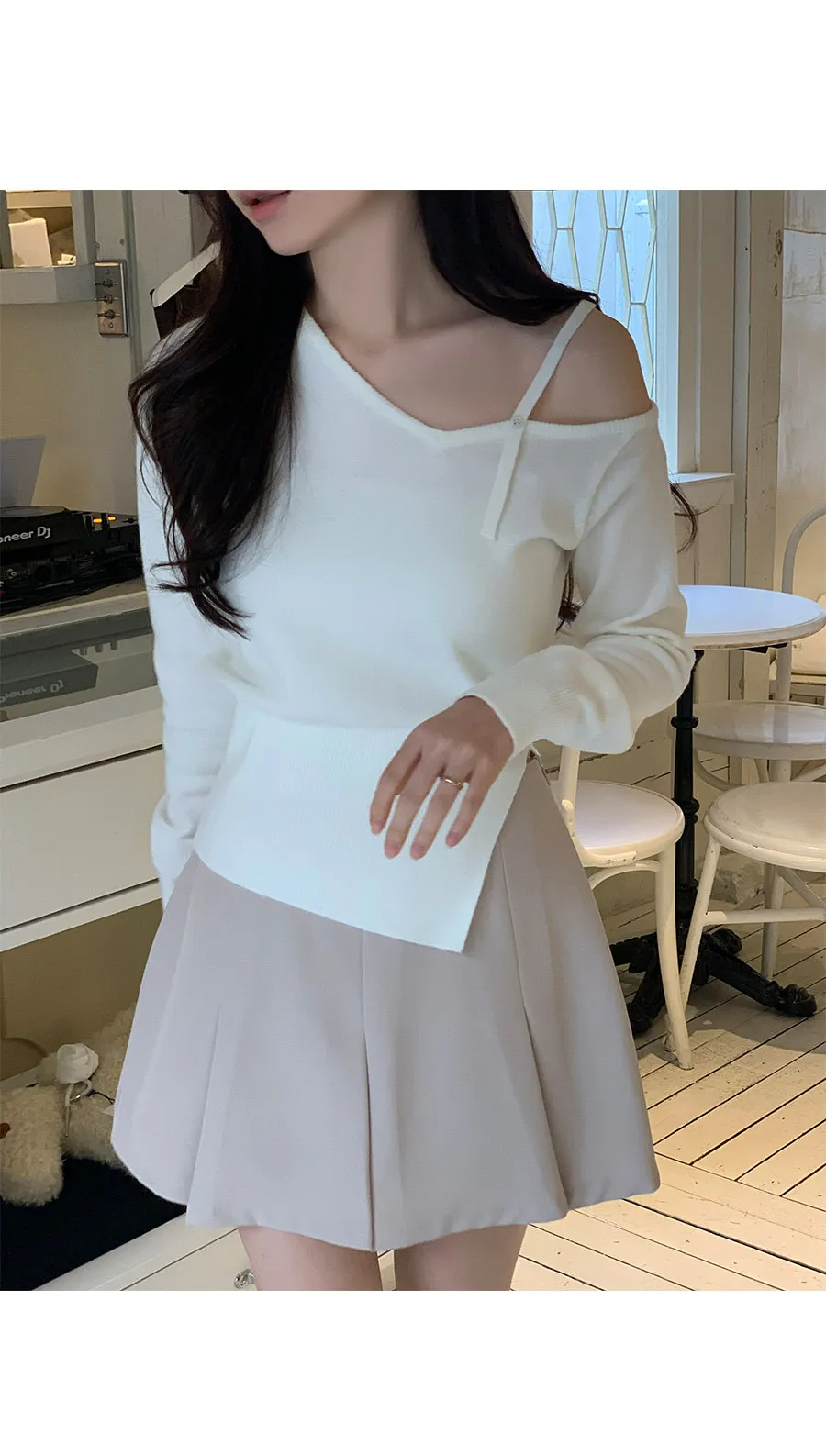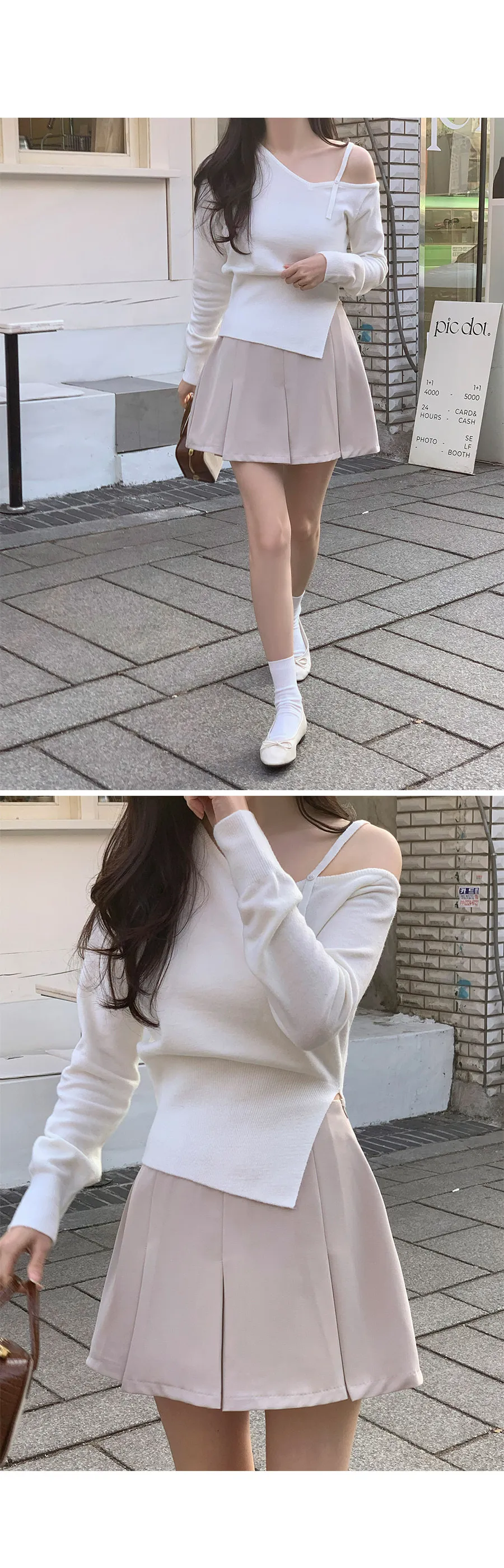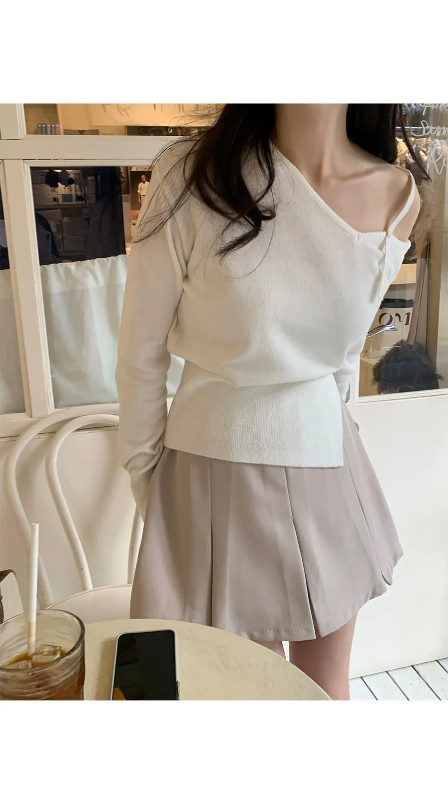 具有不對稱設計針織作為重點!這款針織採用露肩設計,僅在一側肩膀上有肩帶, 呈現出一種不平衡的魅力。 創造一種不常見的輪廓,同時透過底部長開衩細節突出了腰線 。露肩設計凸顯了您的鎖骨,讓您的穿著更加修長, 肩帶上的假連結增添了微妙的點綴。 舒適的貼合度和柔軟的觸感,輕薄的厚度和羊毛混紡材質使其即使在季節中期也穿著舒適。 它充滿了魅力且又充滿女性氣質的點,推薦在特殊的日子裡作為亮點穿著:)