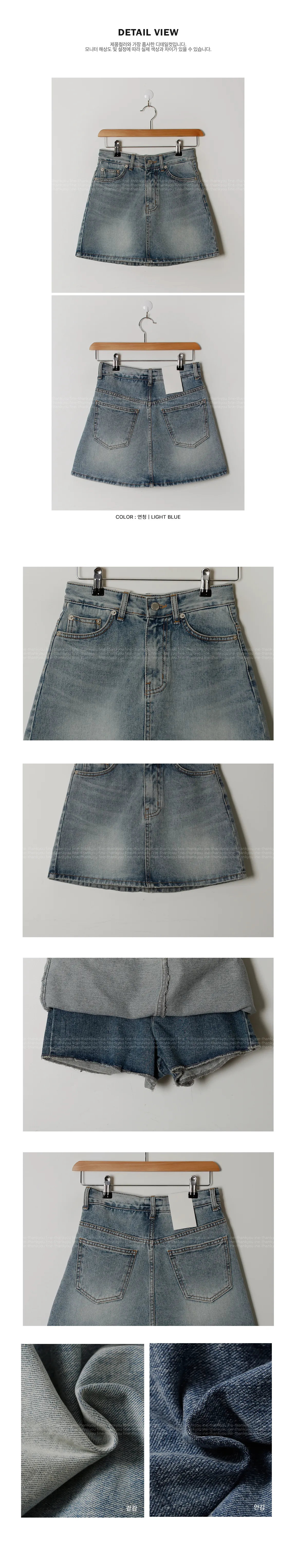 春季搭配必備的牛仔裙褲 !採用時尚、新潮的水洗工藝。 雖然長度短,但是由於褲子的內襯採用的是與牛仔布相同的材質 ,因此穿著舒適, 不會有不適感 ,極短的長度非常適合身材嬌小的人。 自然流暢的A字剪裁使其適合乾淨俐落的搭配,淡藍色非常適合從春季到夏季的搭配!
