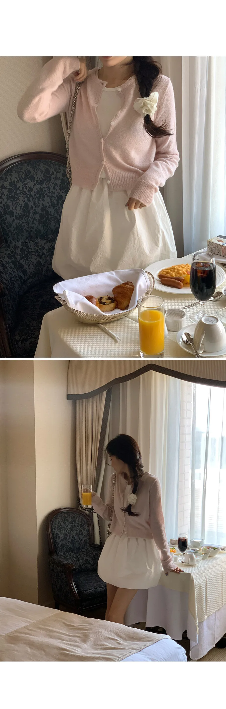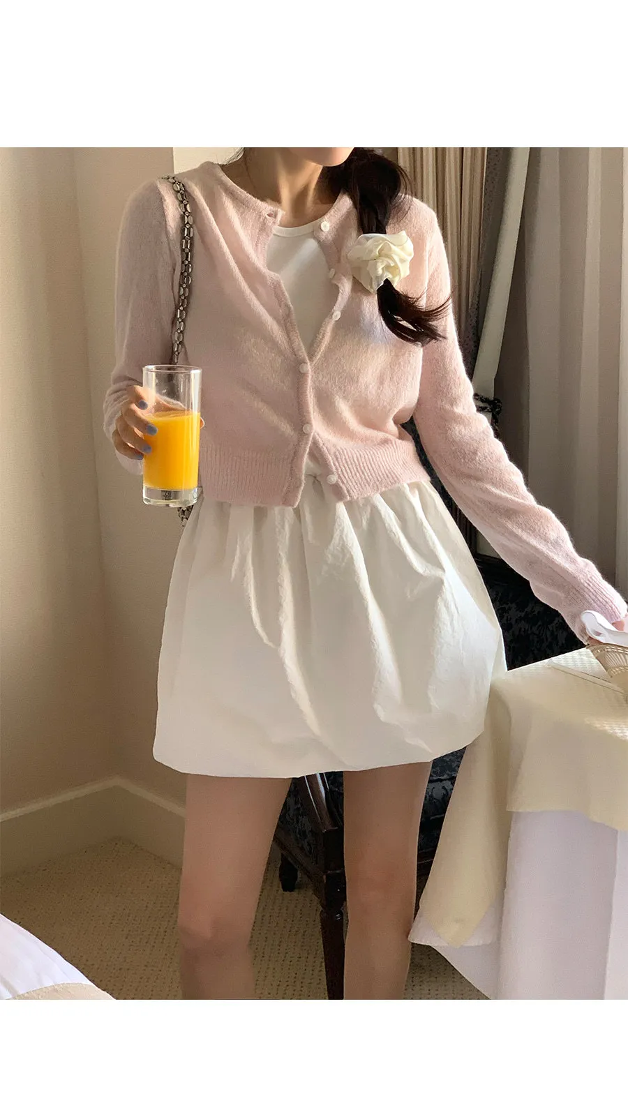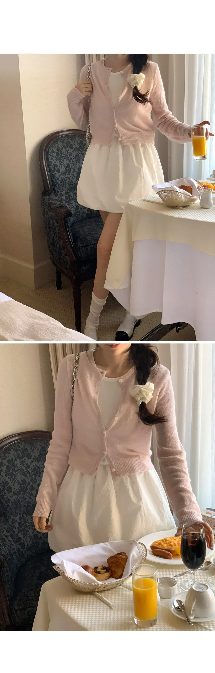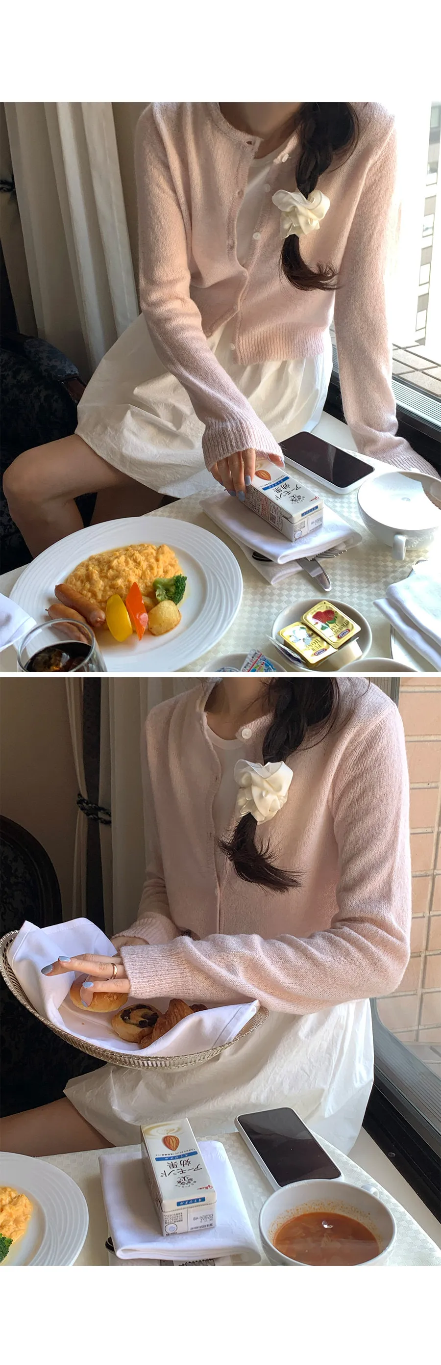 一件營造春天氛圍的開衫!設計簡潔,圓領, 非常適合日常穿著。 因為是高於臀部的半短長度, 所以很適合搭配內搭作為輕便的外套, 單獨穿著也很好。 厚度適宜,適合春季穿著, 是晝夜溫差較大的過渡季節的完美單品。 領口和開合處編織得更加牢固, 穿著時不用擔心拉伸, 帶有一絲馬海毛獨特毛茸茸的質感營造出更加細膩的氛圍 ,並且搭配非常適合春天的可愛顏色,無論選擇什麼顏色都不會後悔! 推薦這款開襟衫,可以在換季期間以各種方式使用 :)