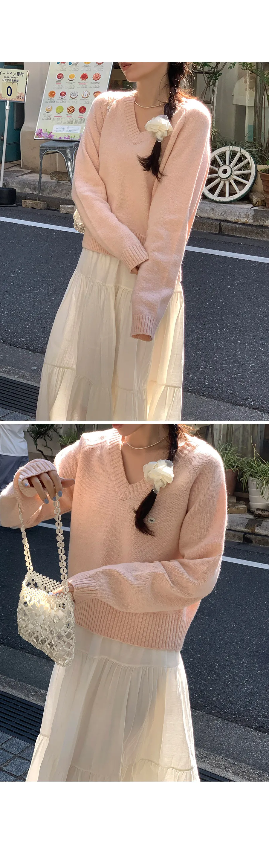 精緻V領點綴吊墜裝飾基本款針織上衣
