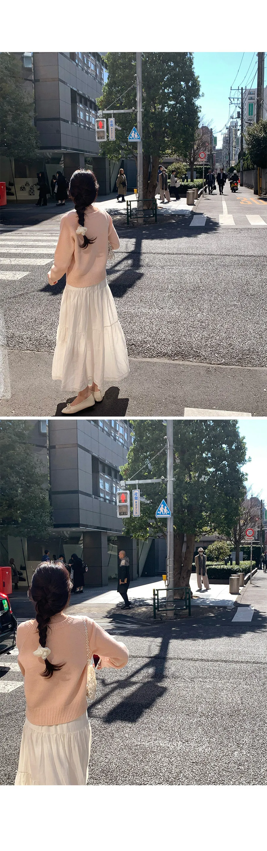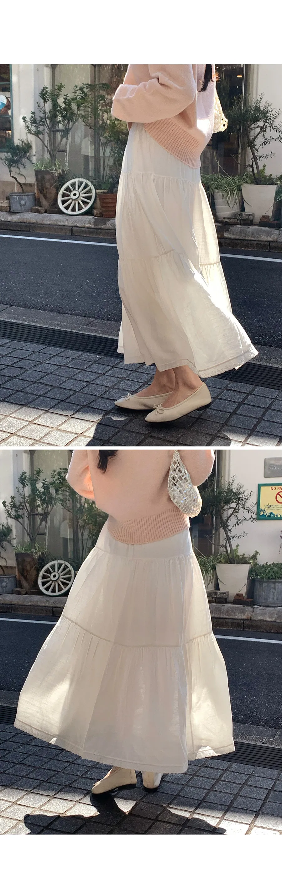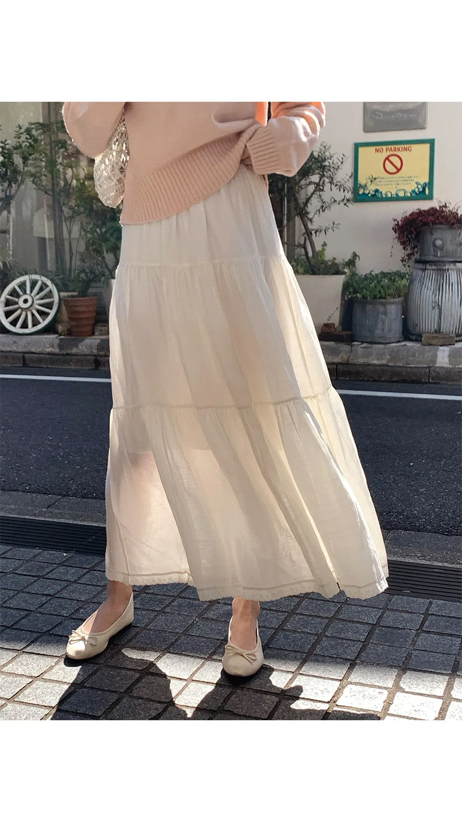 柔美層次裙擺點綴下擺蕾絲柔和褶皺中長裙