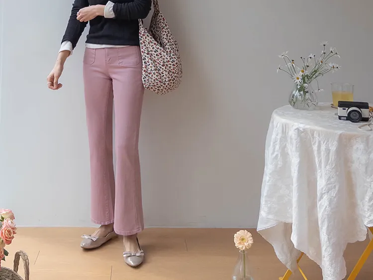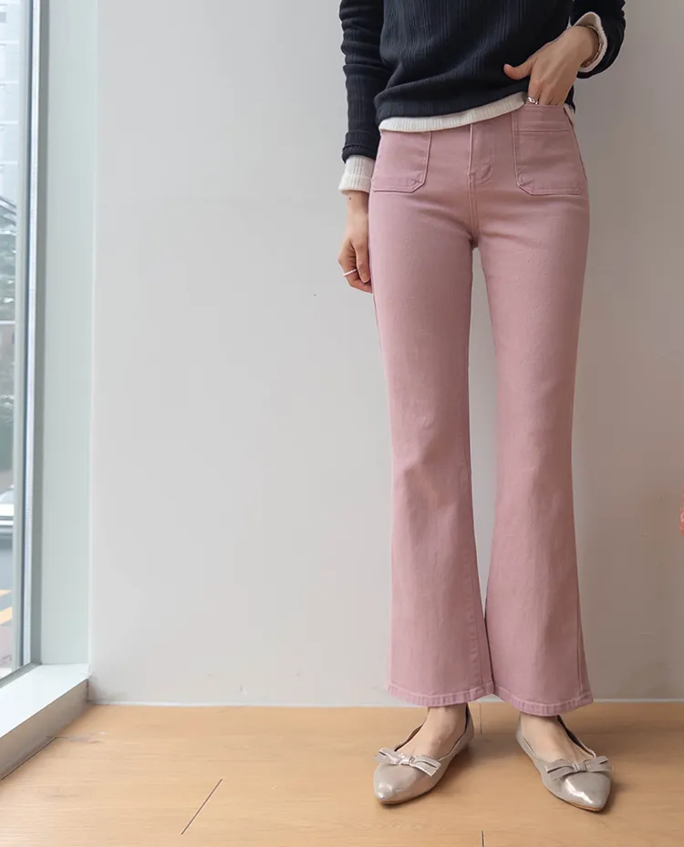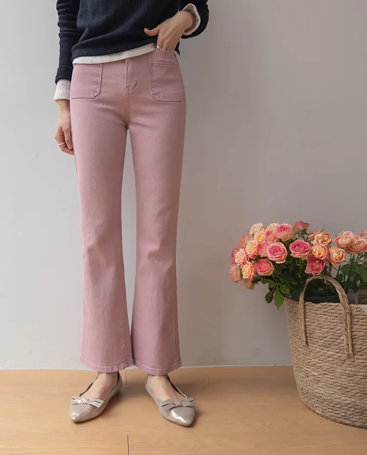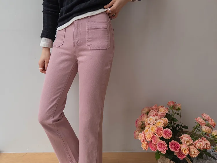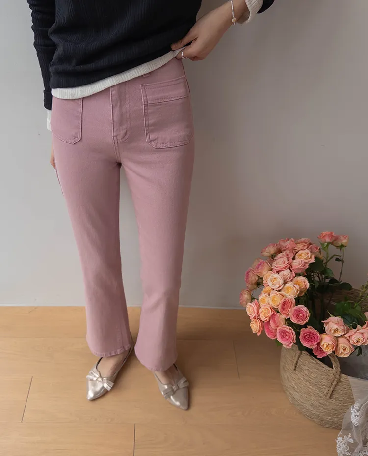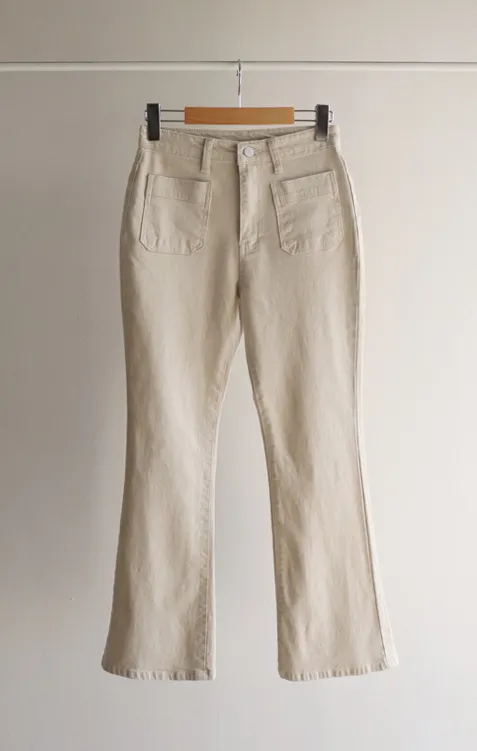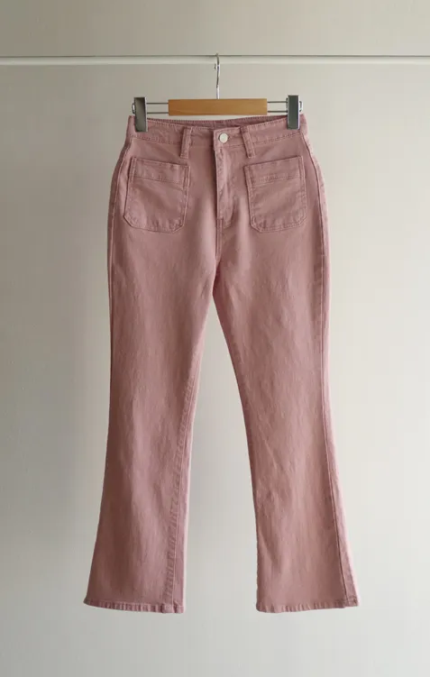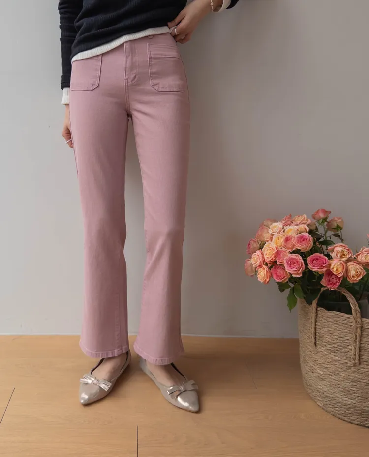 [以方形口袋為焦點的靴型褲♥] [修身半靴型,穿著舒適! ][彈性氨綸! ] [時尚又舒適,完美~]