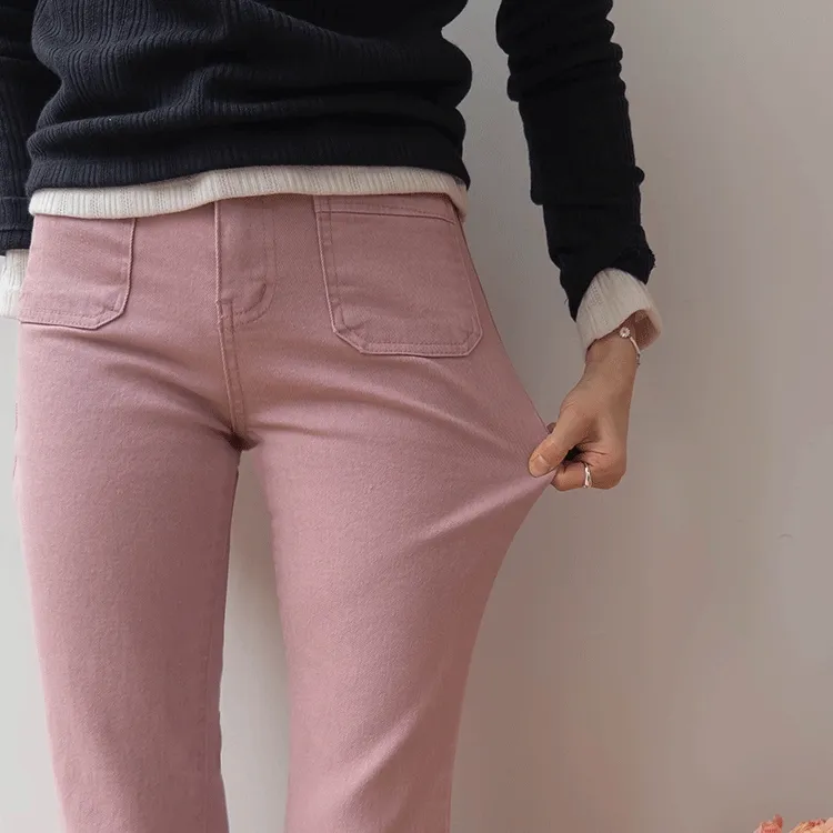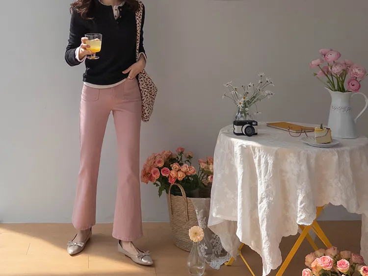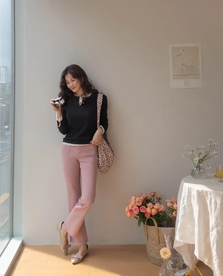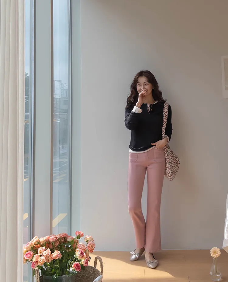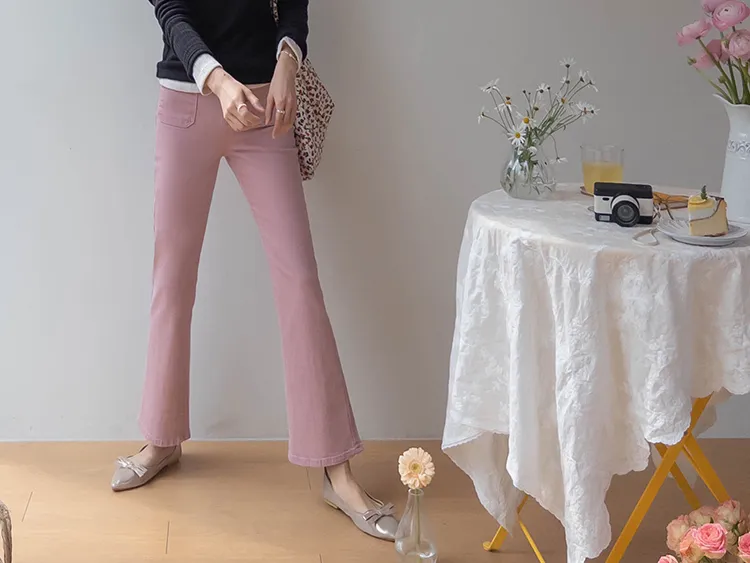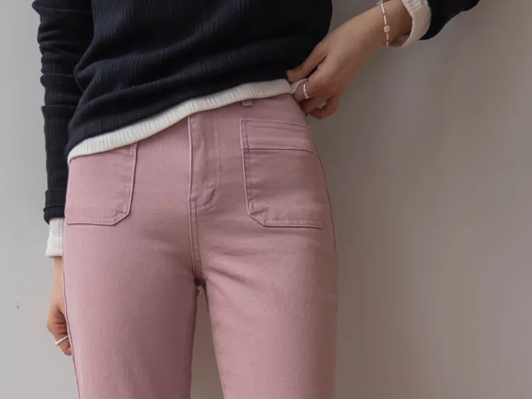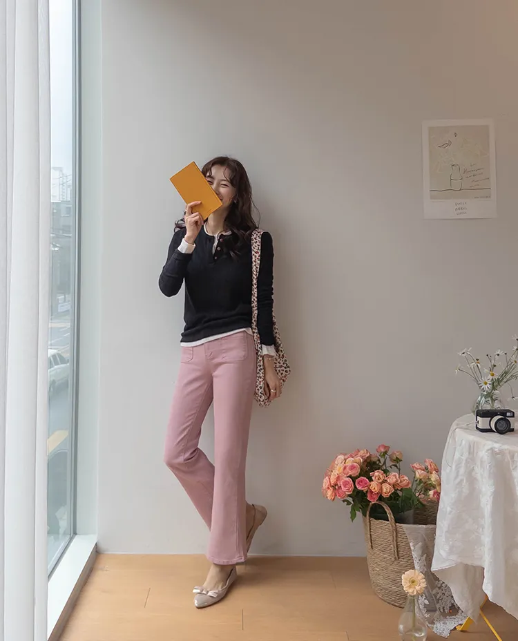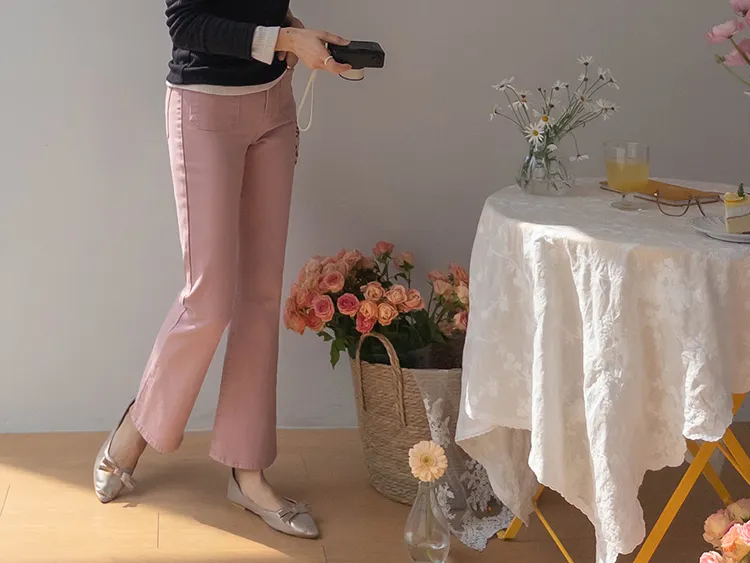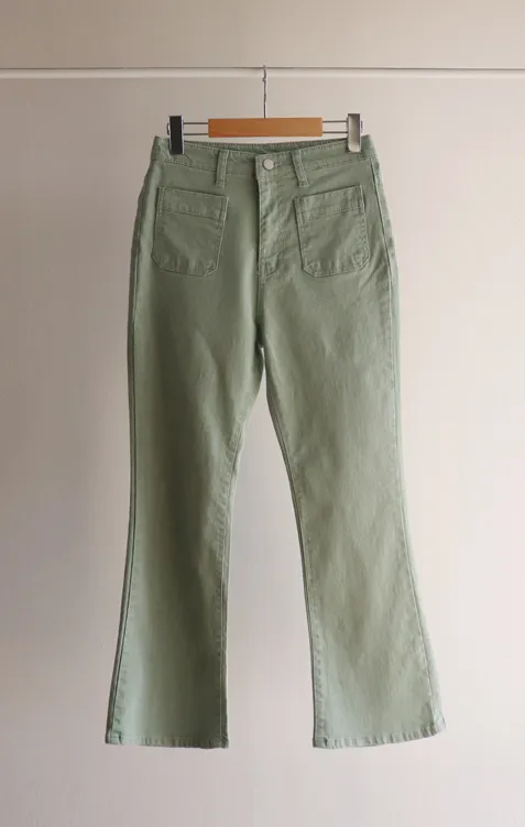 [以方形口袋為焦點的靴型褲♥] [修身半靴型,穿著舒適! ][彈性氨綸! ] [時尚又舒適,完美~]