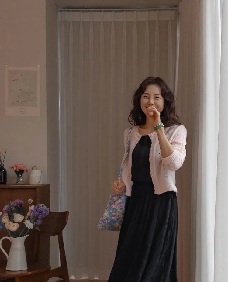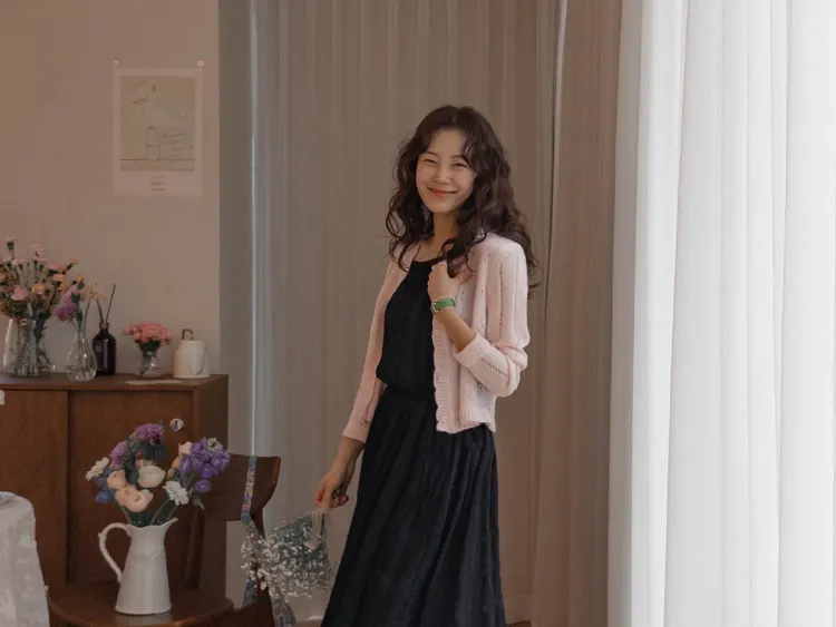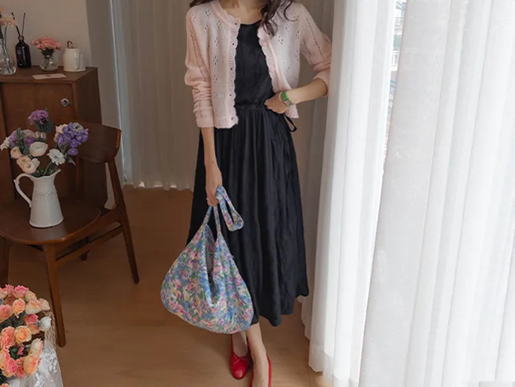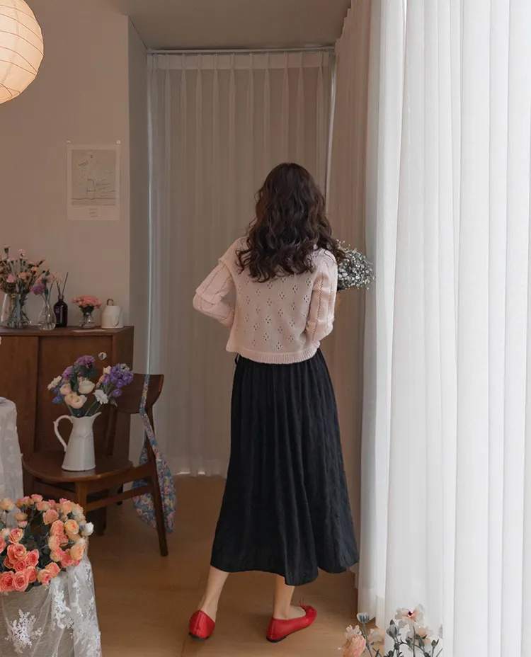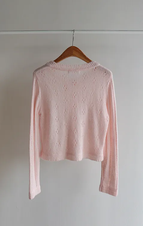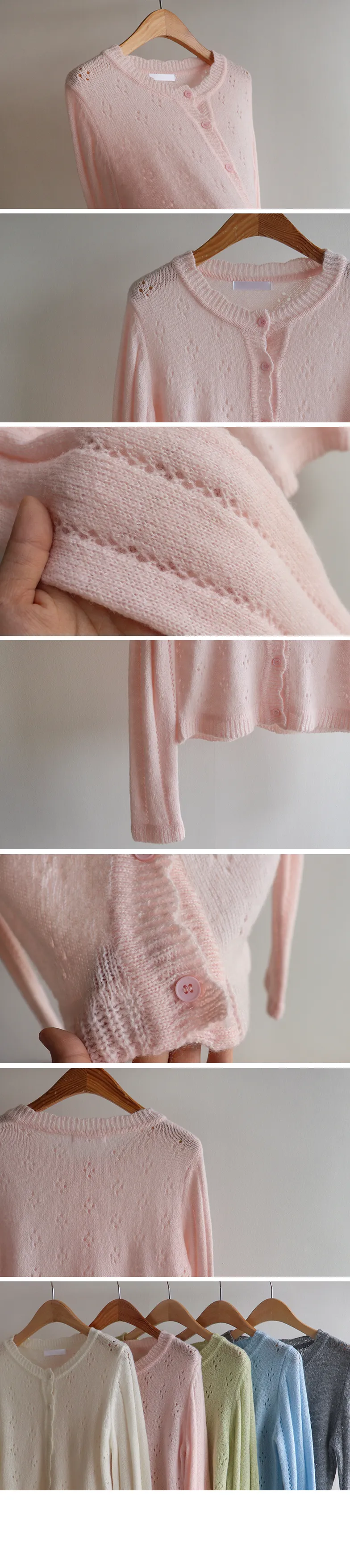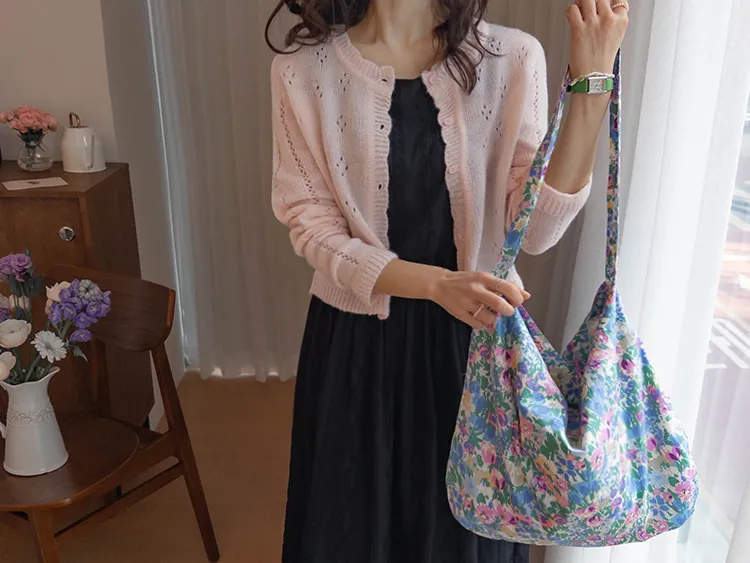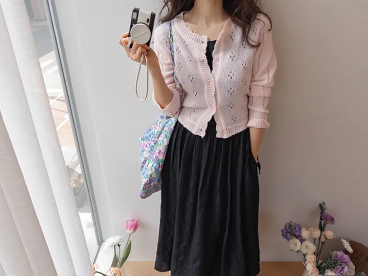 柔和色彩可愛波浪邊鏤空孔洞開衫