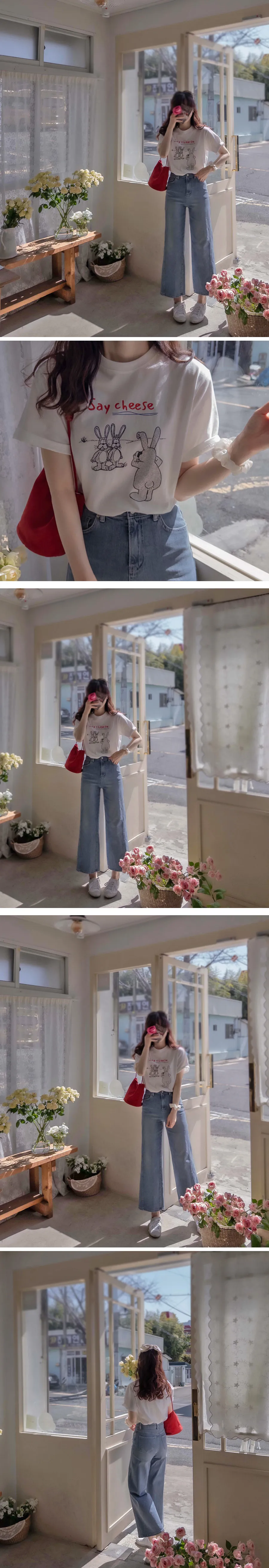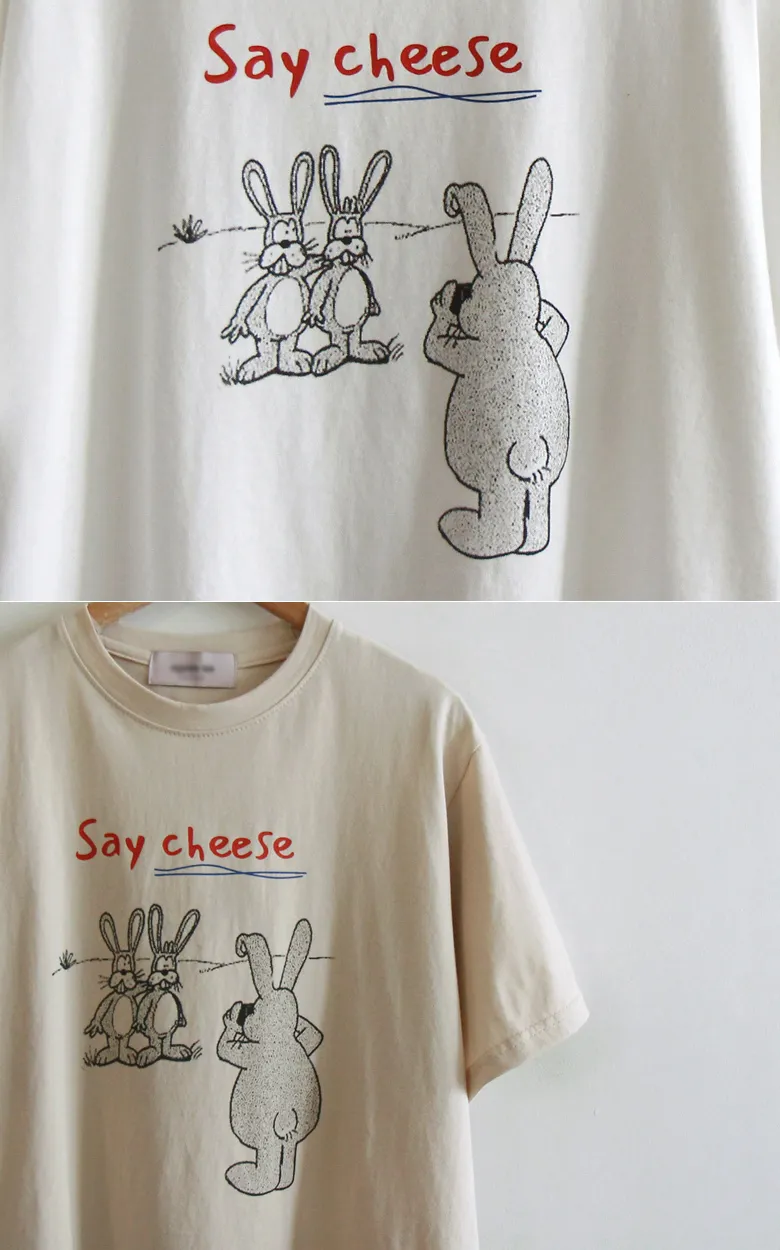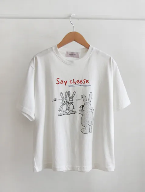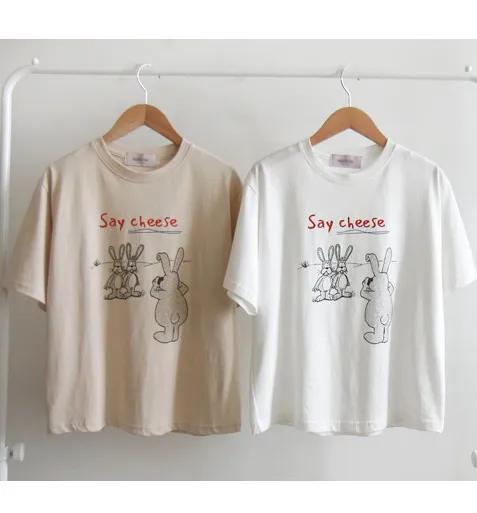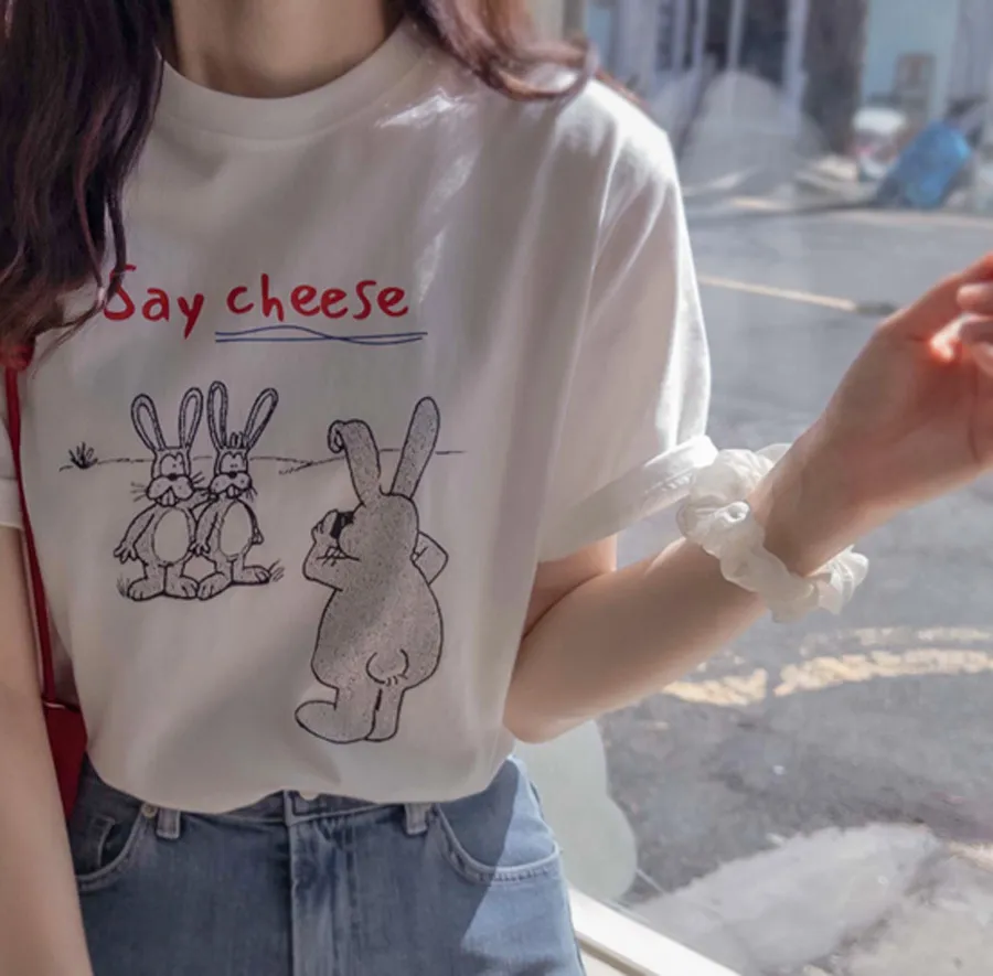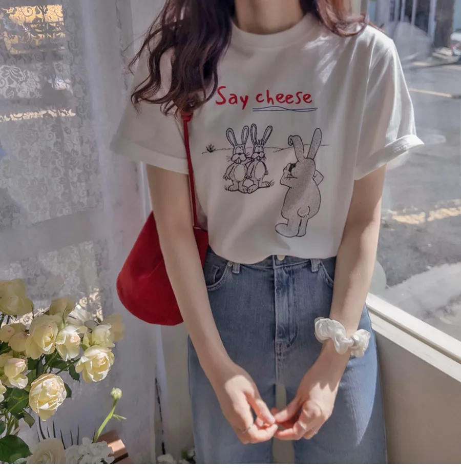 可愛拍照兔子字母印花短袖上衣