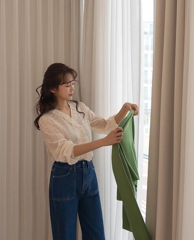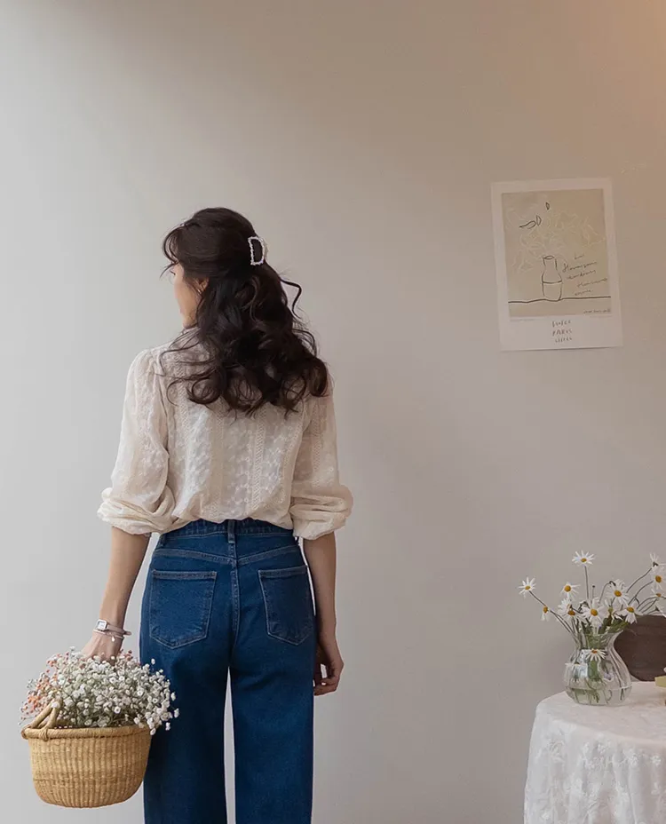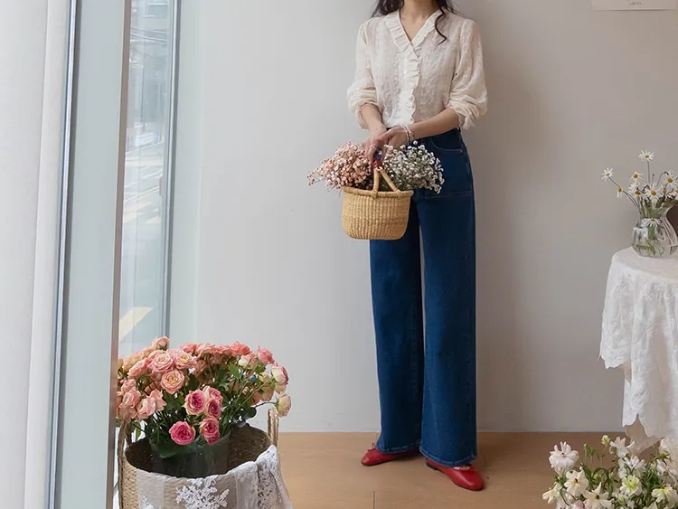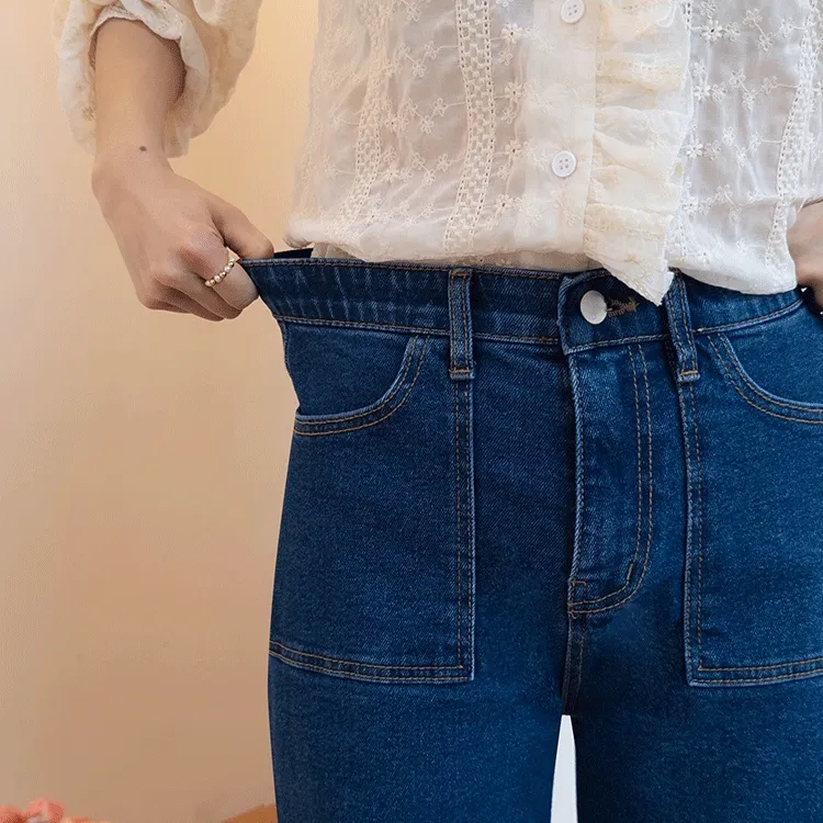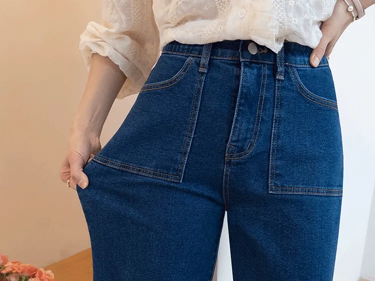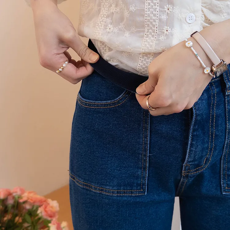 [方形口袋細節,展現時尚直筒牛仔褲風格♥] [褲子版型真的很好看! ] [緊身氨綸布料,一整天都很舒服] [隱形鬆緊腰帶]