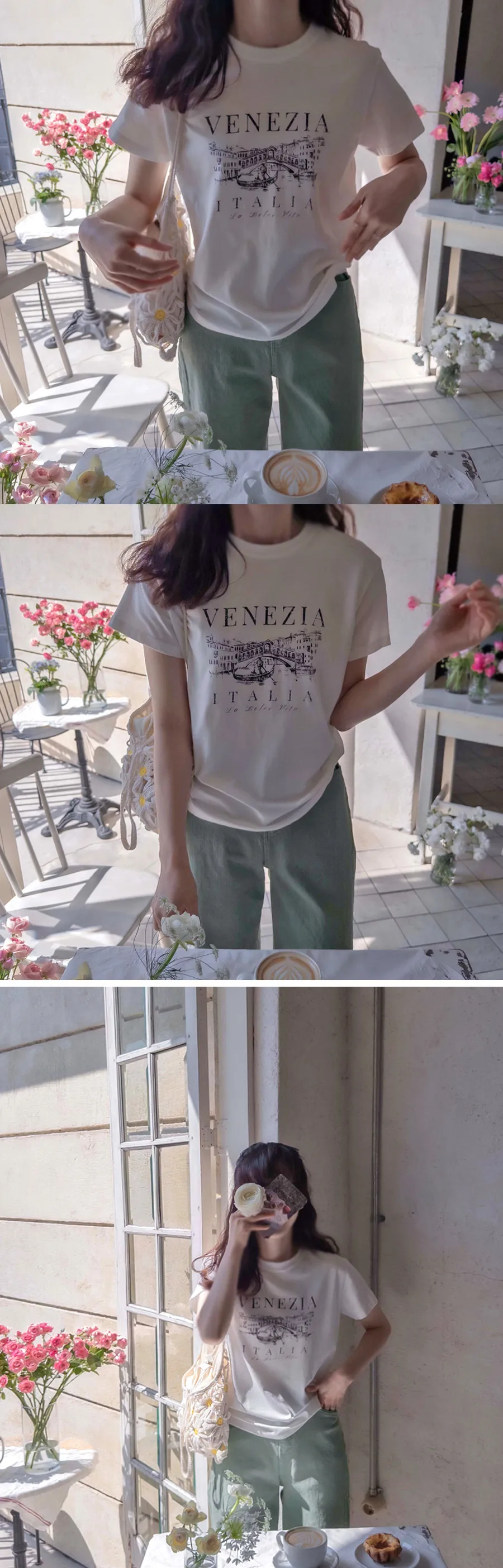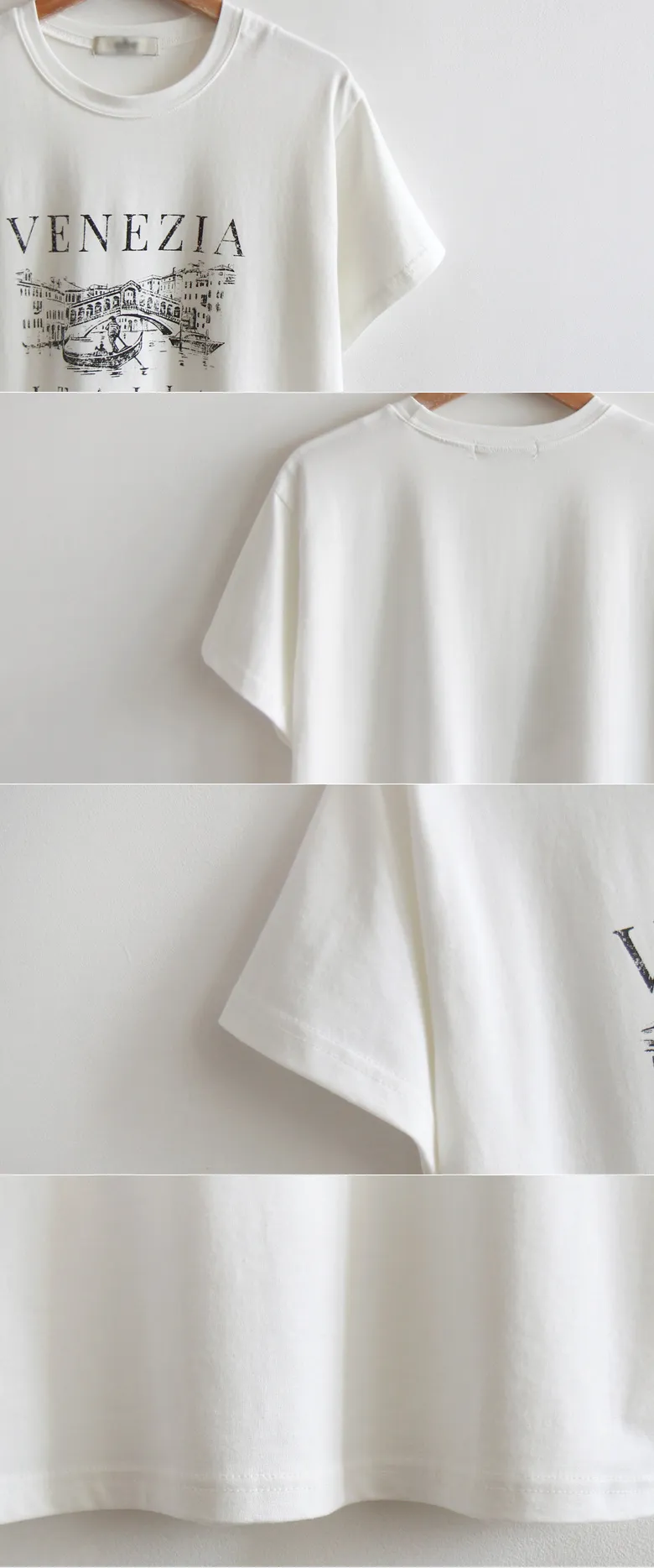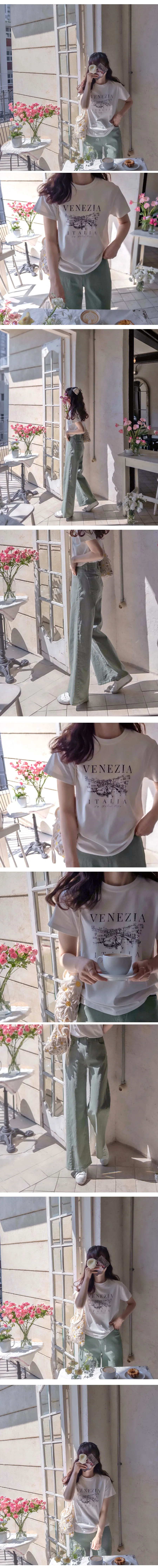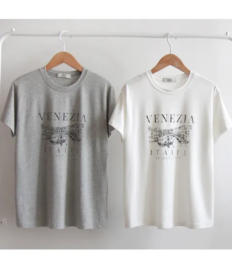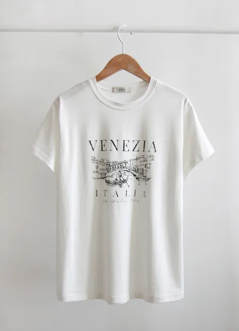 義式風情威尼斯貢多拉字母印花柔軟短袖上衣