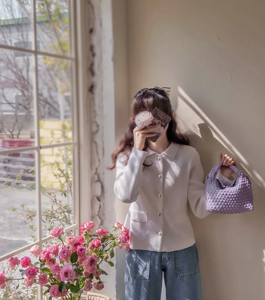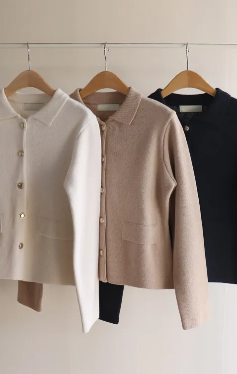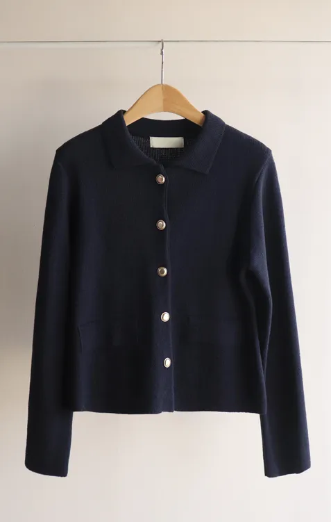 [奢華的金色紐帶] [迷人的領口營造出整潔的氛圍] [長時間穿著也感覺很紮實~♡] [半剪裁長度適合各種下裝! ] [時尚的開襟衫,版型修身] [約會裝、賓客裝、工作裝都非常適合~♡]