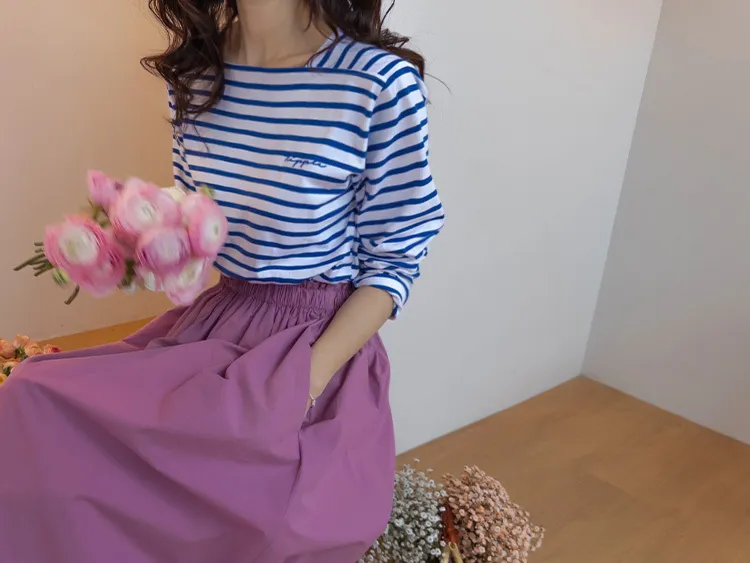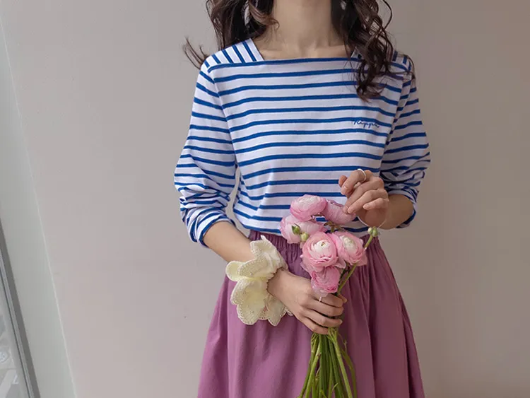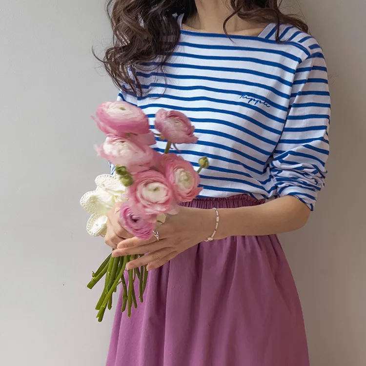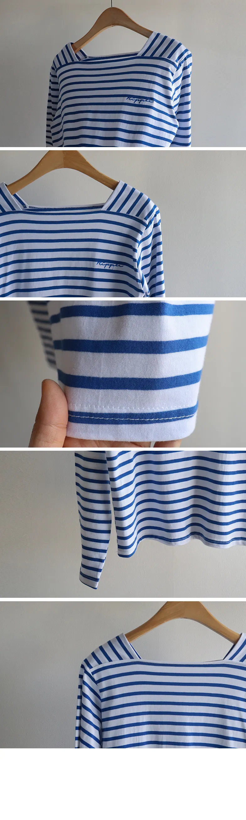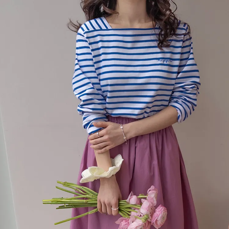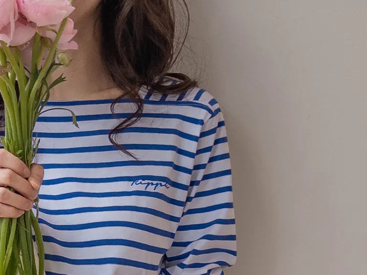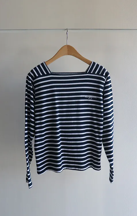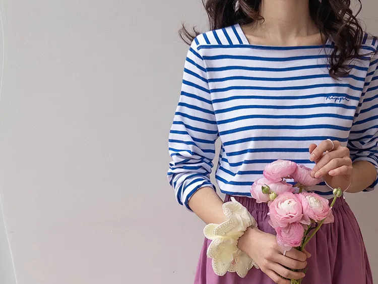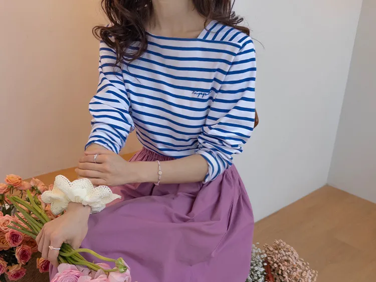 [帶有字母刺繡細節的上衣♥] [方形領口帶來精緻的效果! ] [100%純棉,觸感舒適,穿著輕盈舒適〜] [適合整個春天穿著]