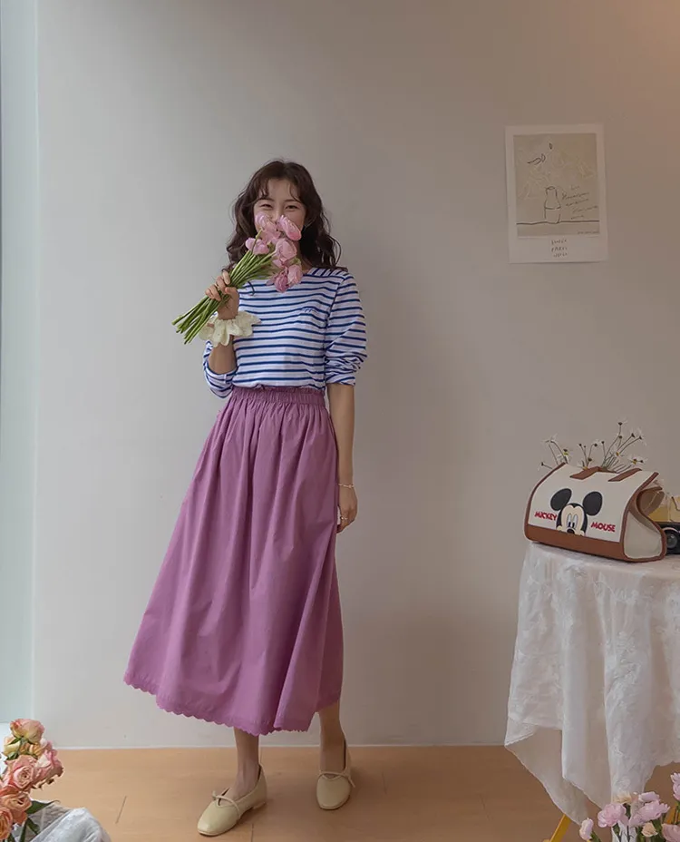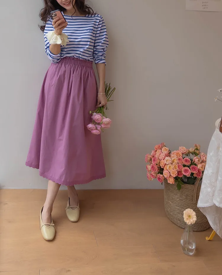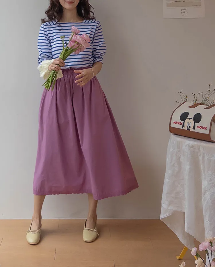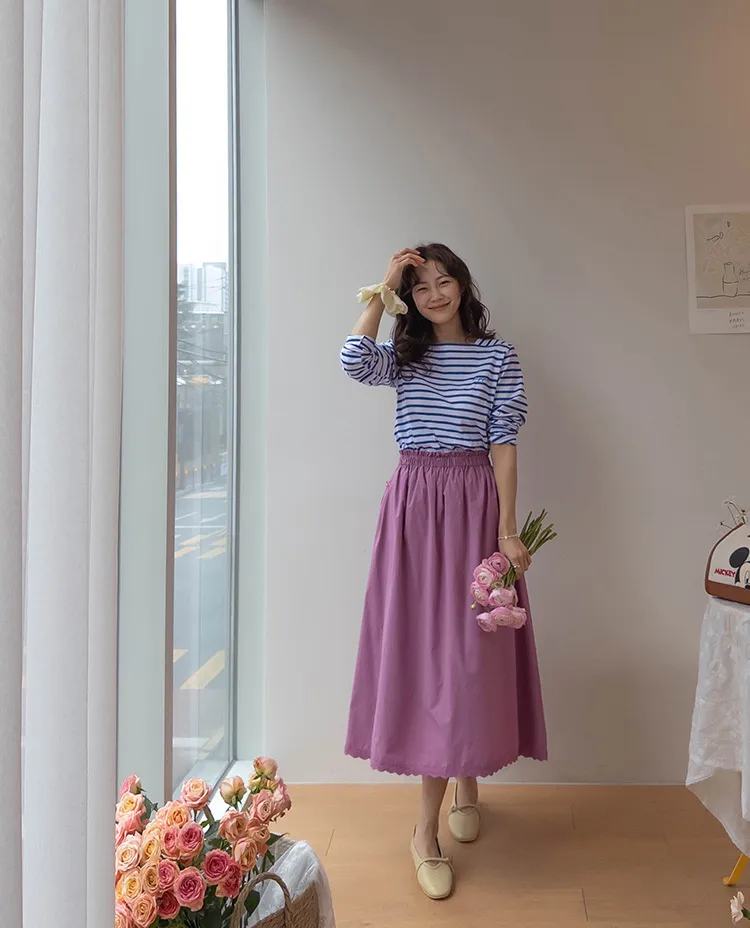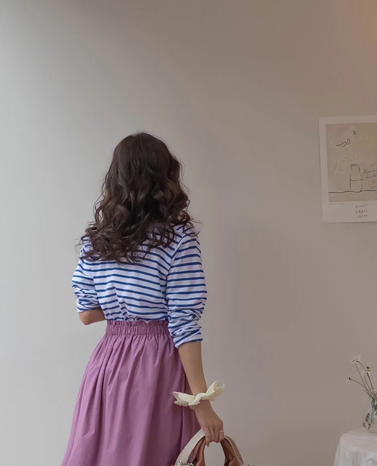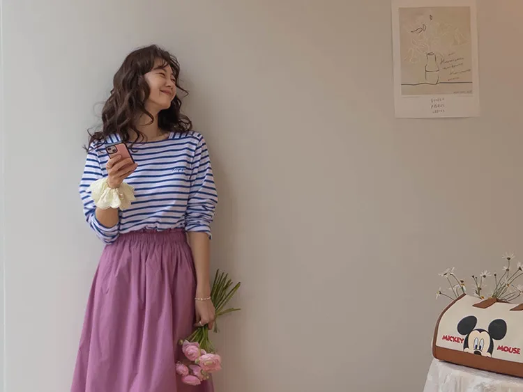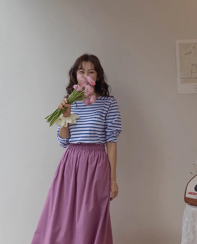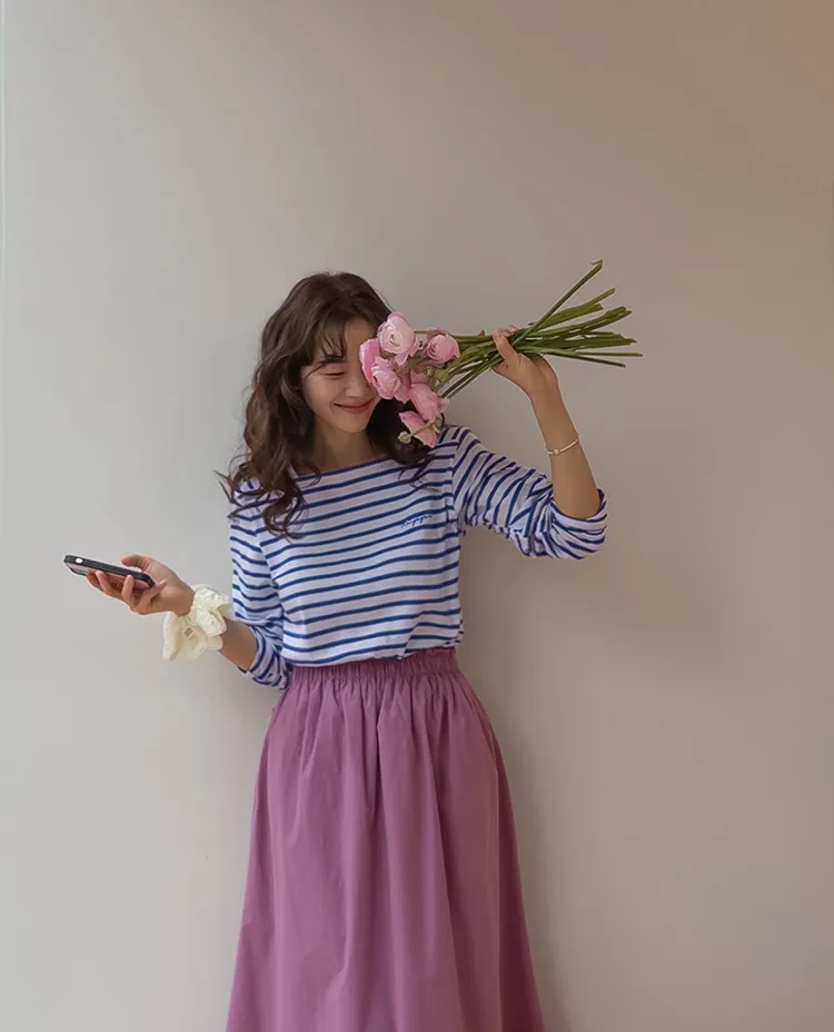 [帶有字母刺繡細節的上衣♥] [方形領口帶來精緻的效果! ] [100%純棉,觸感舒適,穿著輕盈舒適〜] [適合整個春天穿著]