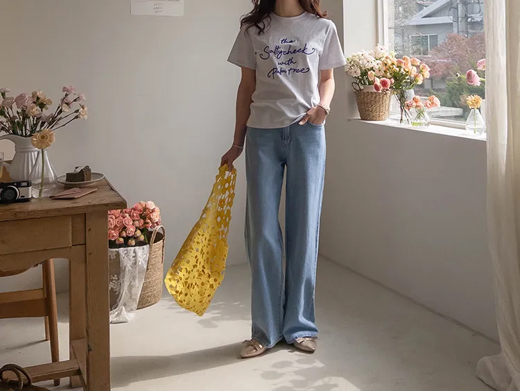 柔軟舒適夏季修身版型直筒牛仔褲 白L,黑L,淺藍L