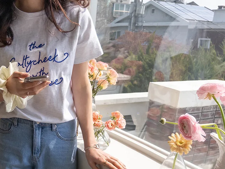 【立體字母彩點T♥】【20支棉布,耐用的布料】【100%純棉,持久耐穿】【標準廓形~】