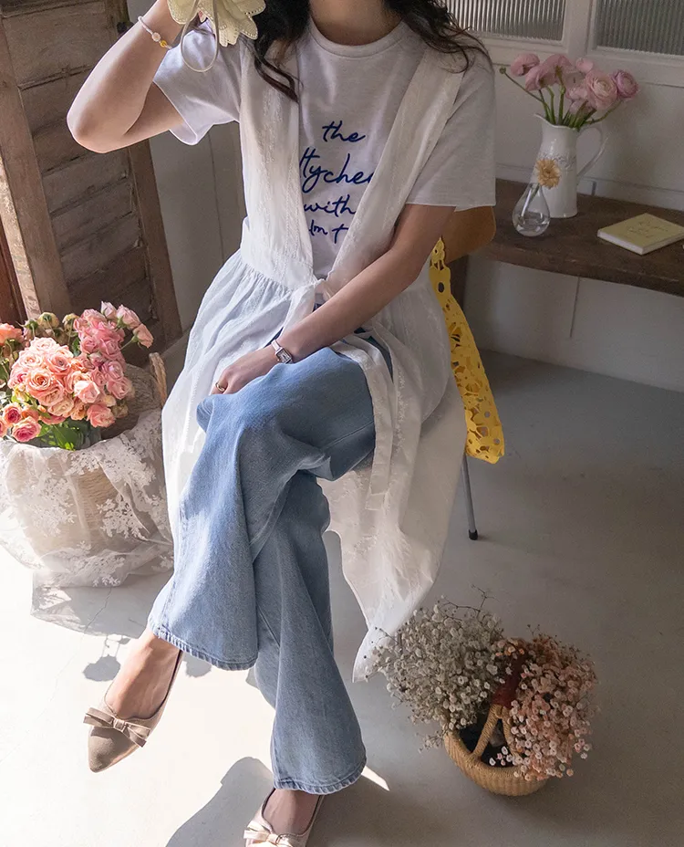 浪漫花朵刺繡前後兩穿分層穿搭連身裙