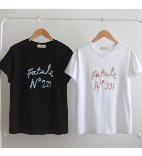 【適合春季的T卹】 【亮片字母是亮點】 【舒適又明亮、精緻色彩感感】 【適合日常穿著的修身T卹】 【