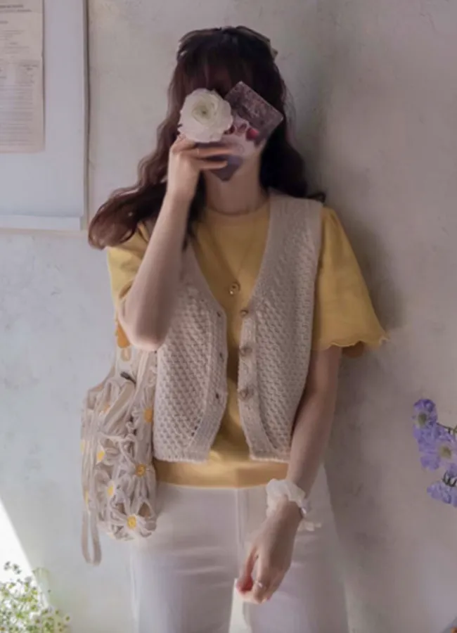 風格穿搭V領排扣編織針織背心