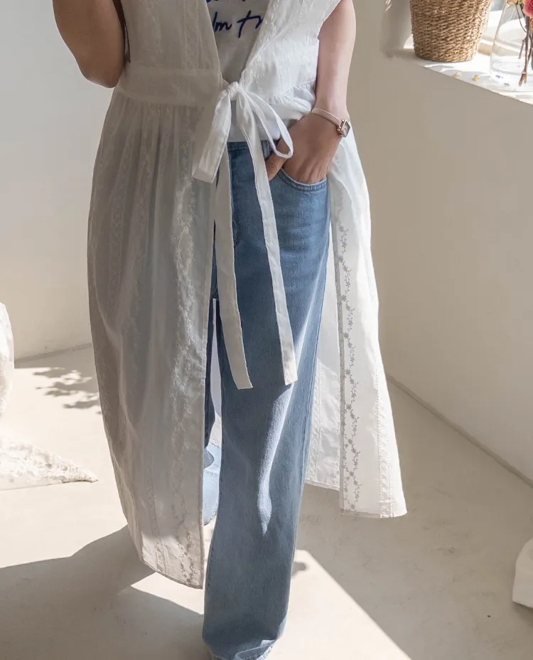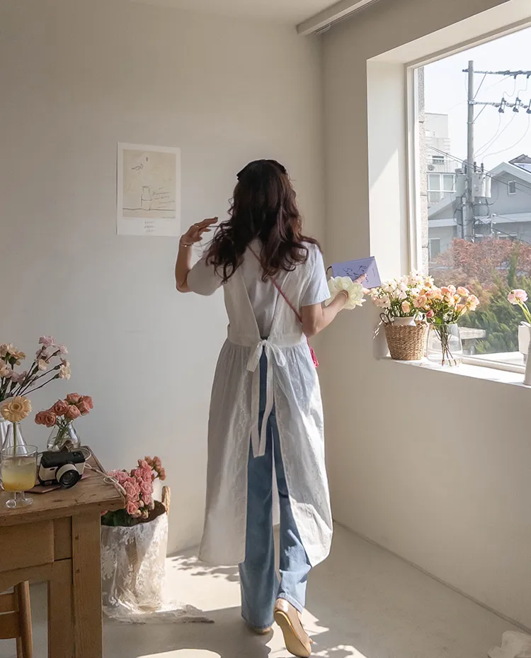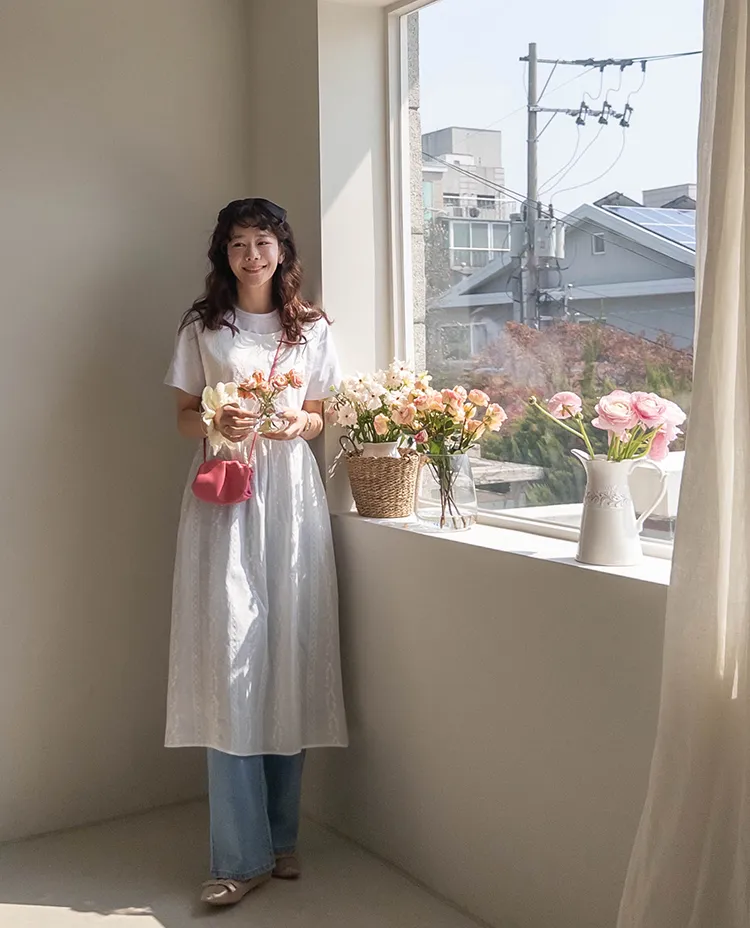 浪漫花朵刺繡前後兩穿分層穿搭連身裙