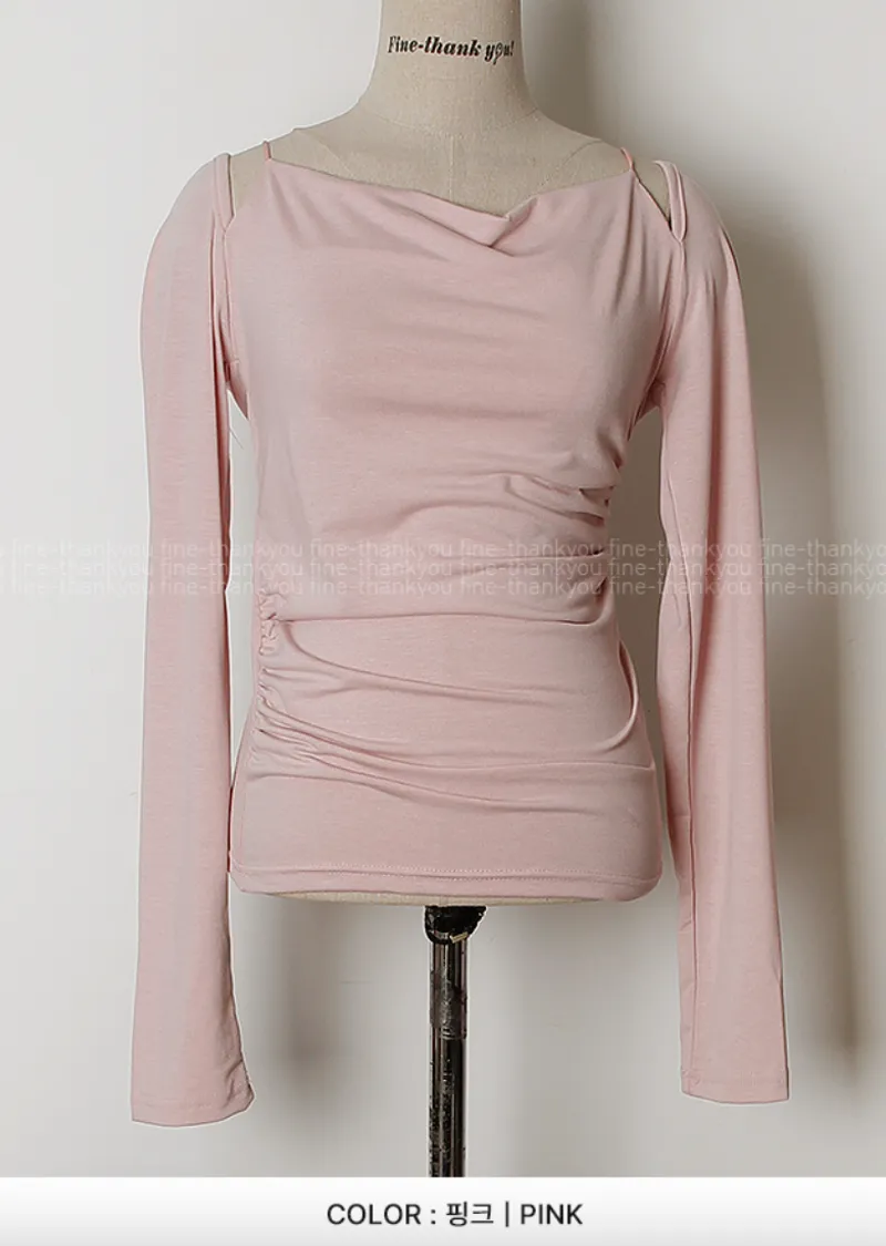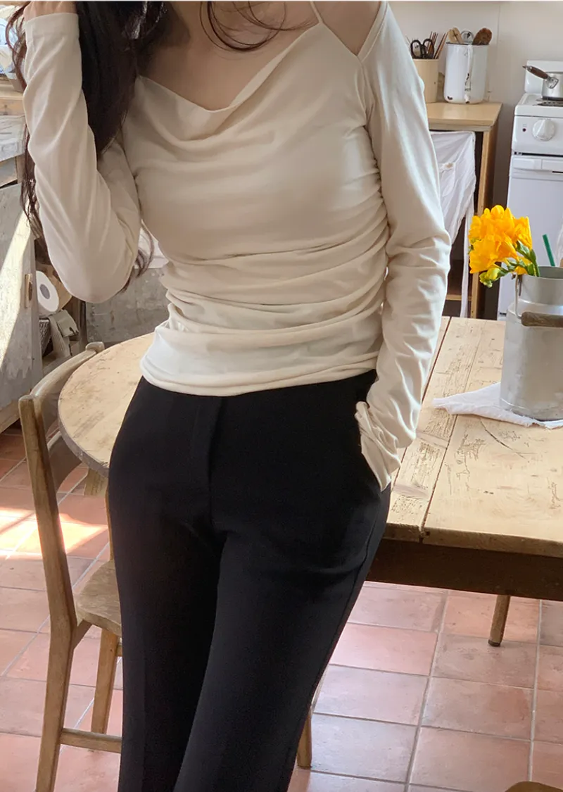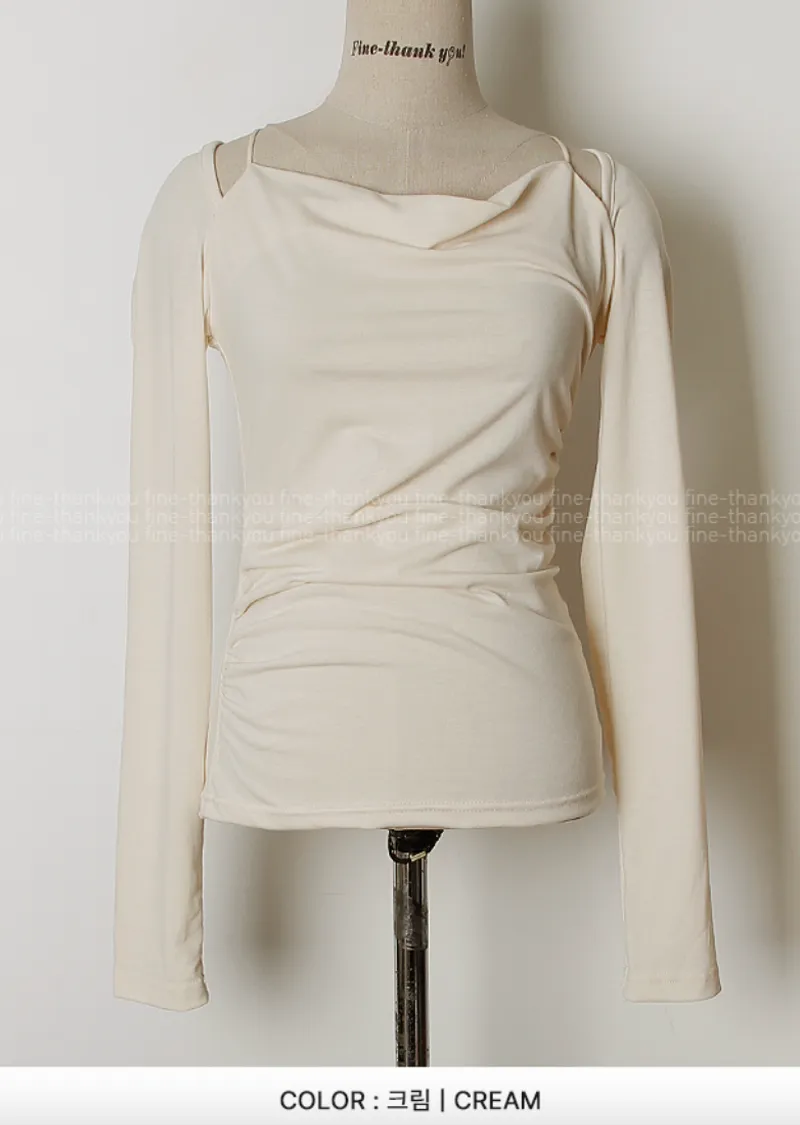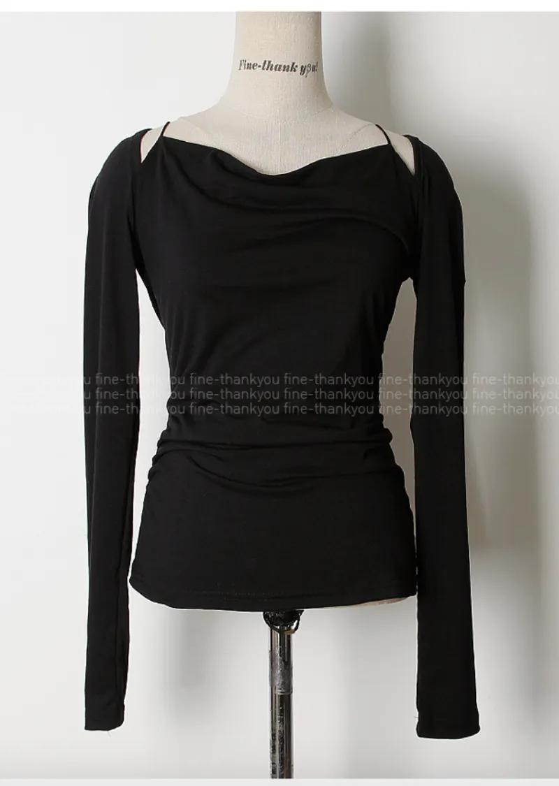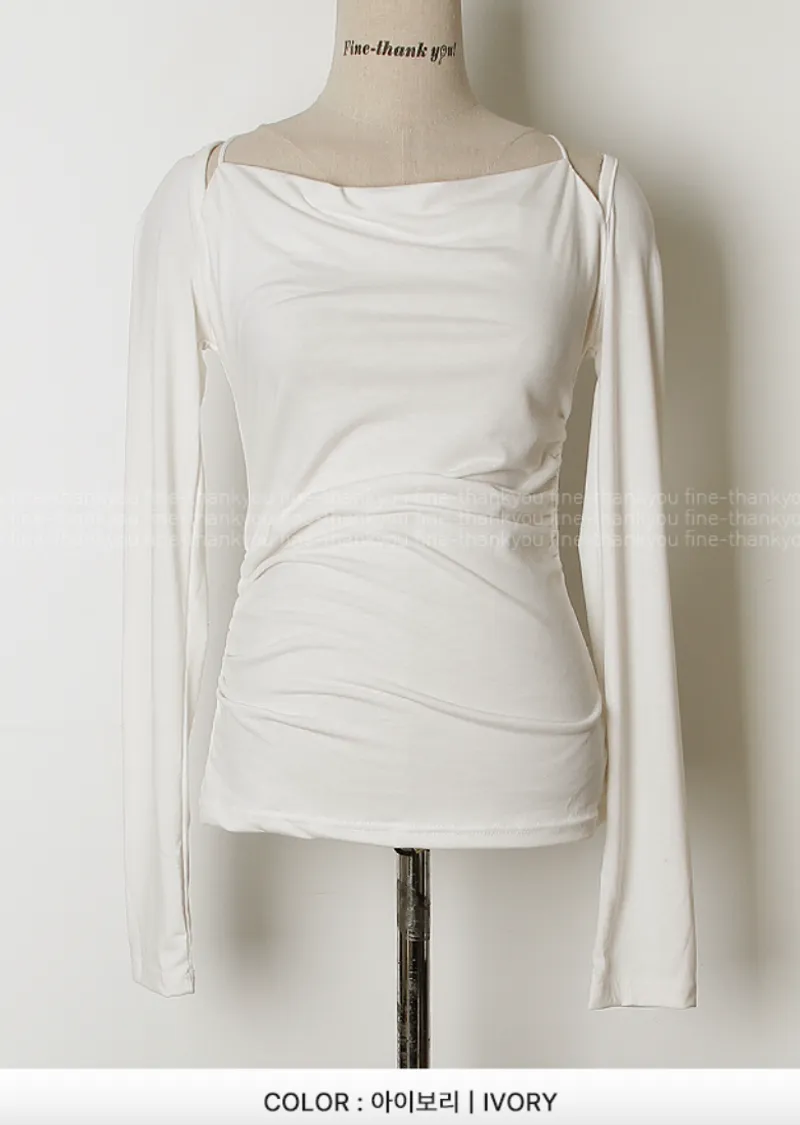 感性垂墜領口細肩開衩腰線褶皺上衣
