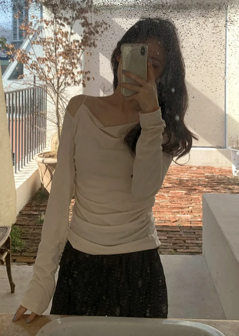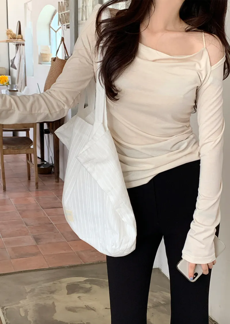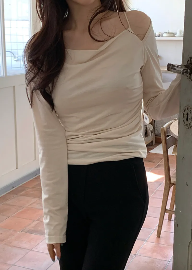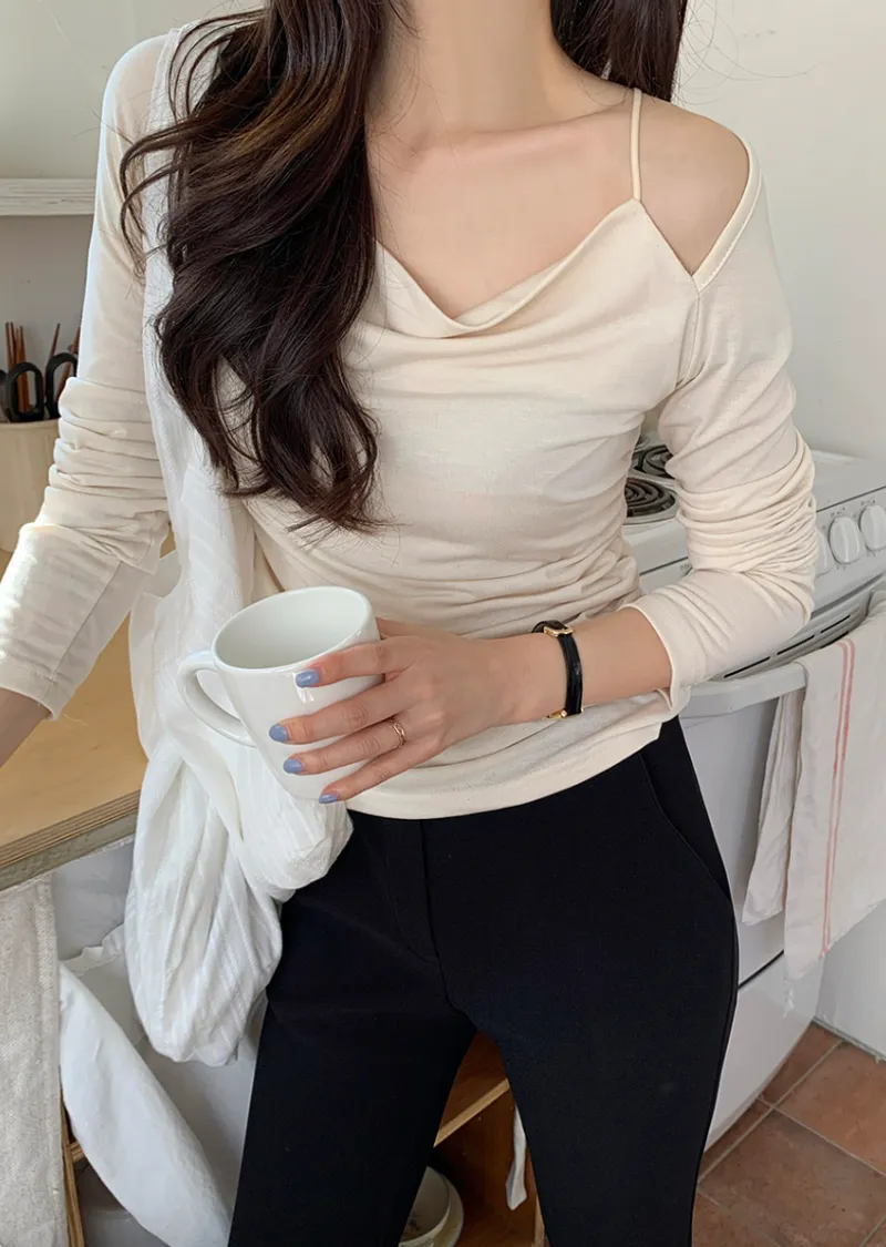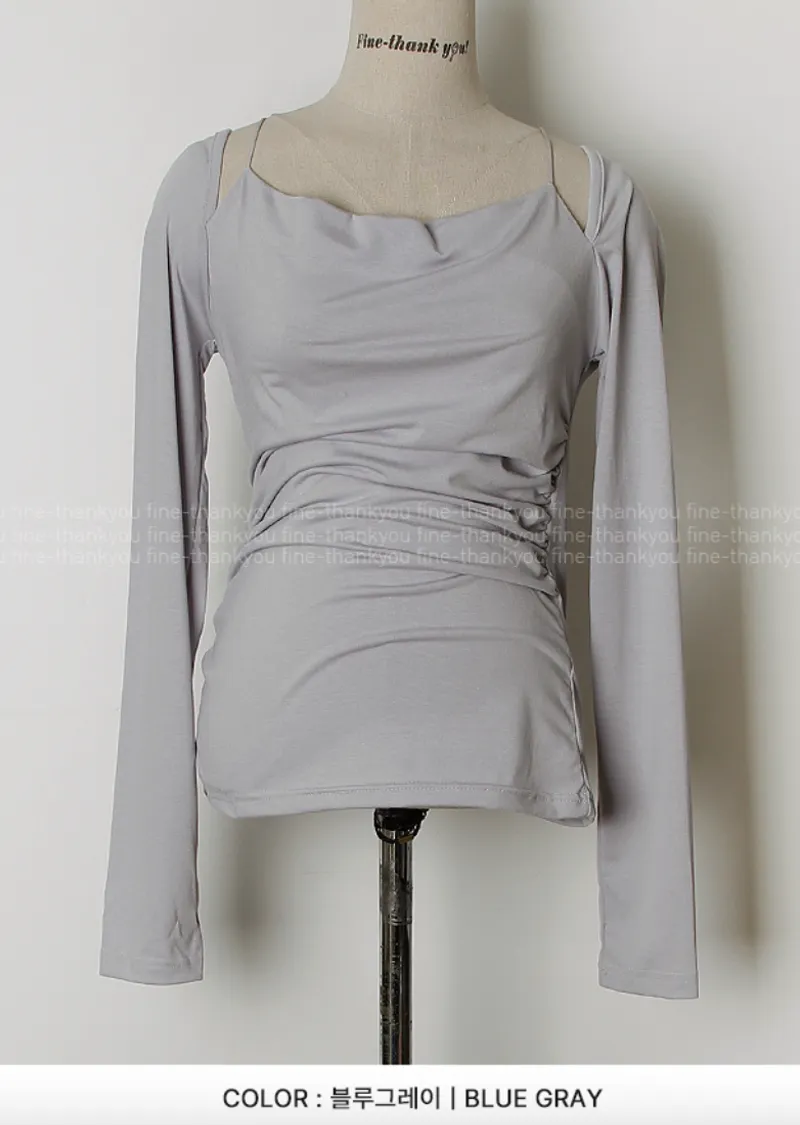 感性垂墜領口細肩開衩腰線褶皺上衣