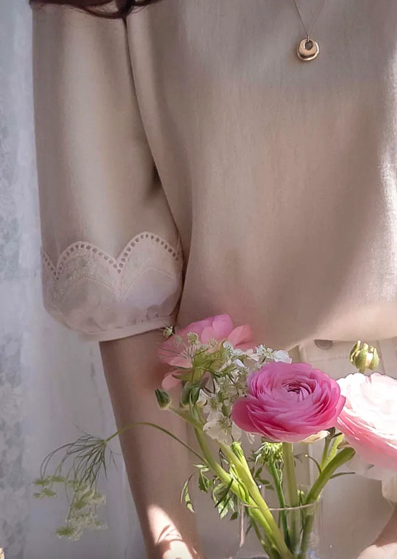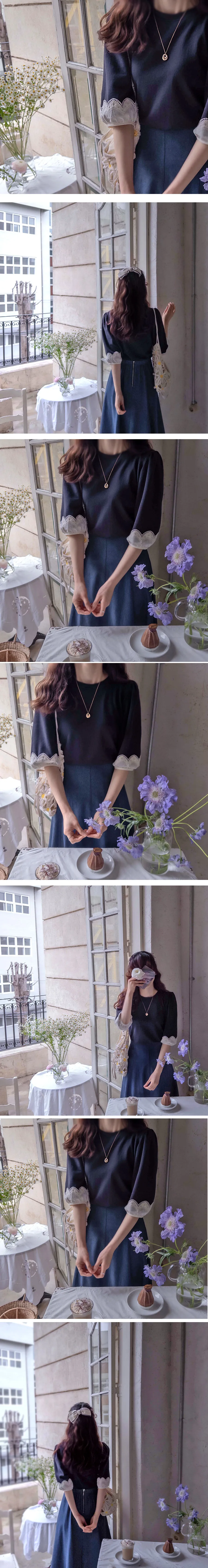 [季節色彩的上衣] [袖子採用可愛的花卉刺繡蕾絲配色] [穿著舒適