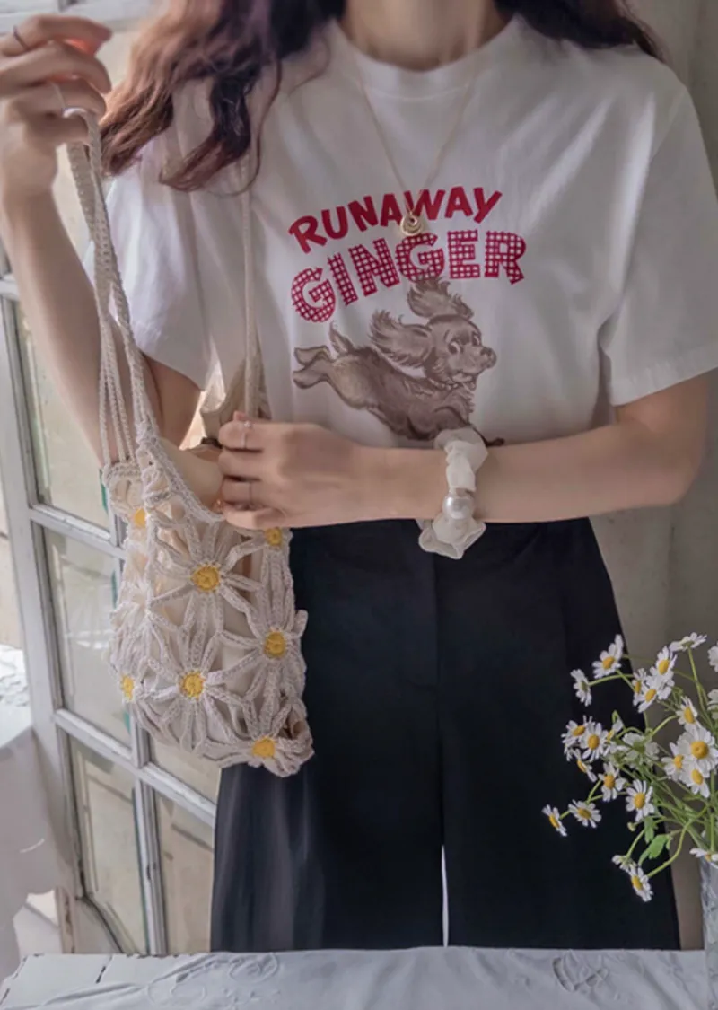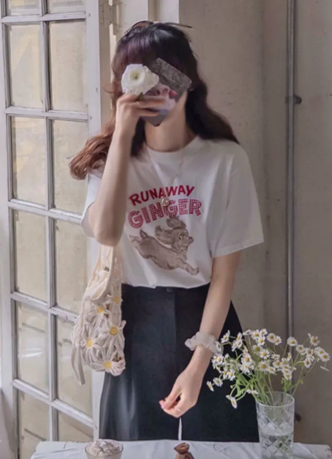 可愛跳耀狗狗字母印花短袖上衣