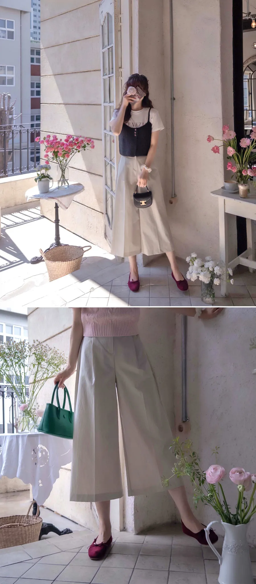 【品牌品質】 【腰部有舒適的背帶】 【適合春夏季節的八分長度】 【修飾體形,穿著舒適的褲子】【顏色都想擁有的A字褲】