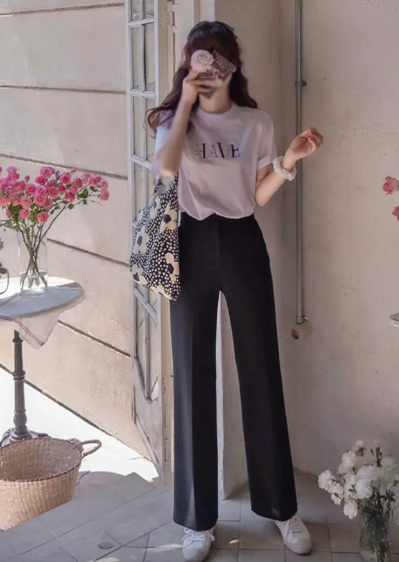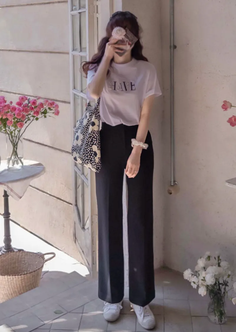 [絲綢加工] [柔軟舒適] [點綴珍珠] [給人明亮精緻感的配色] [從現在到夏天都很好穿搭] [以珍珠和字母刺繡為亮點的T卹] [捲起袖子也能打造時尚穿搭]