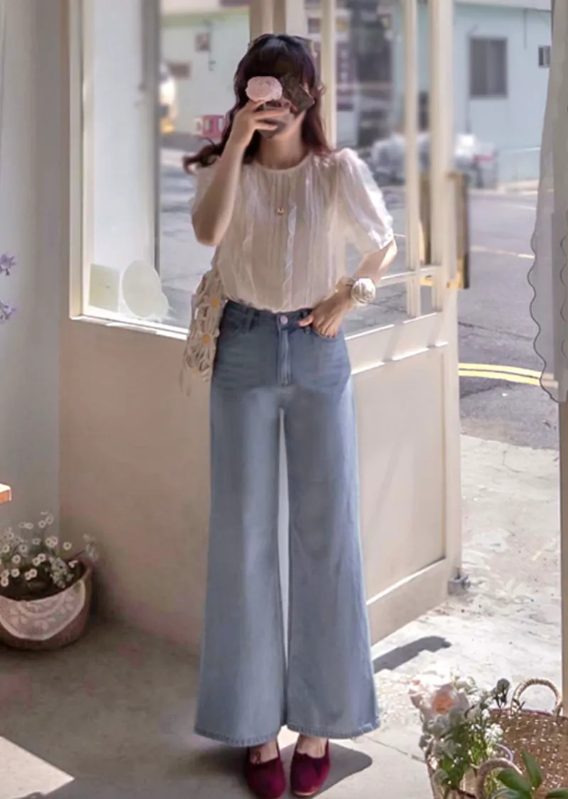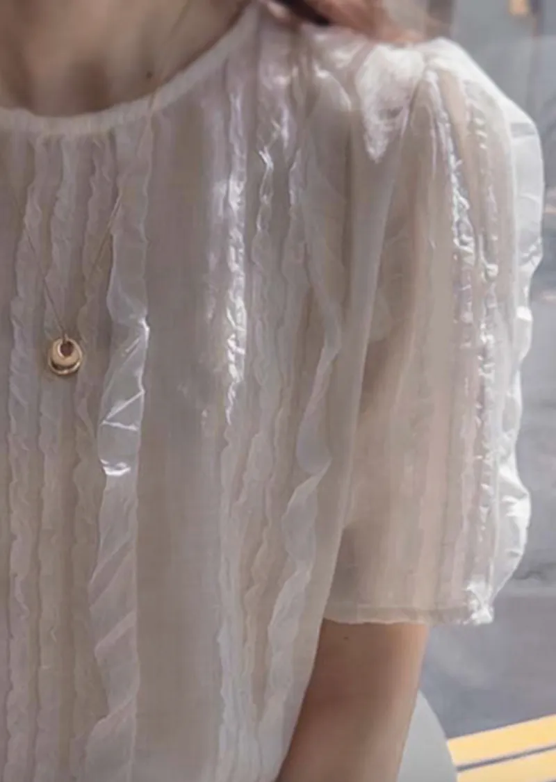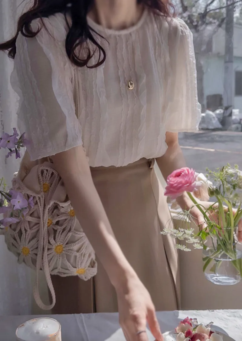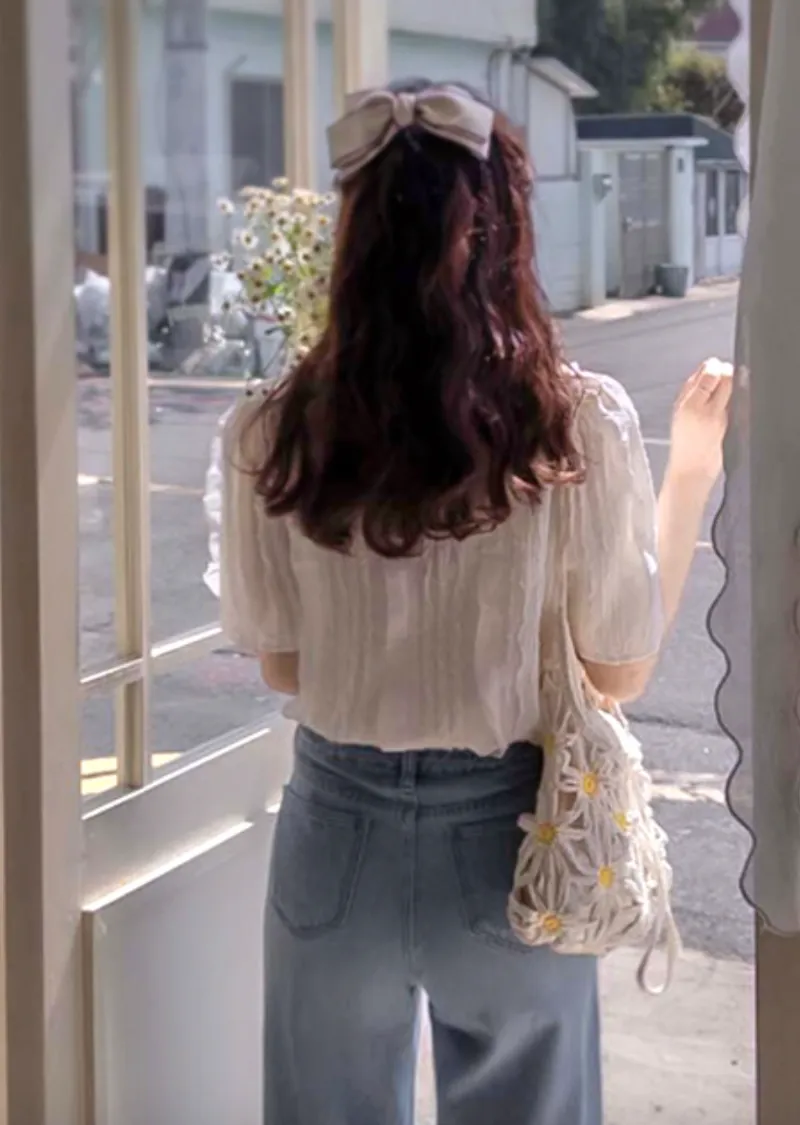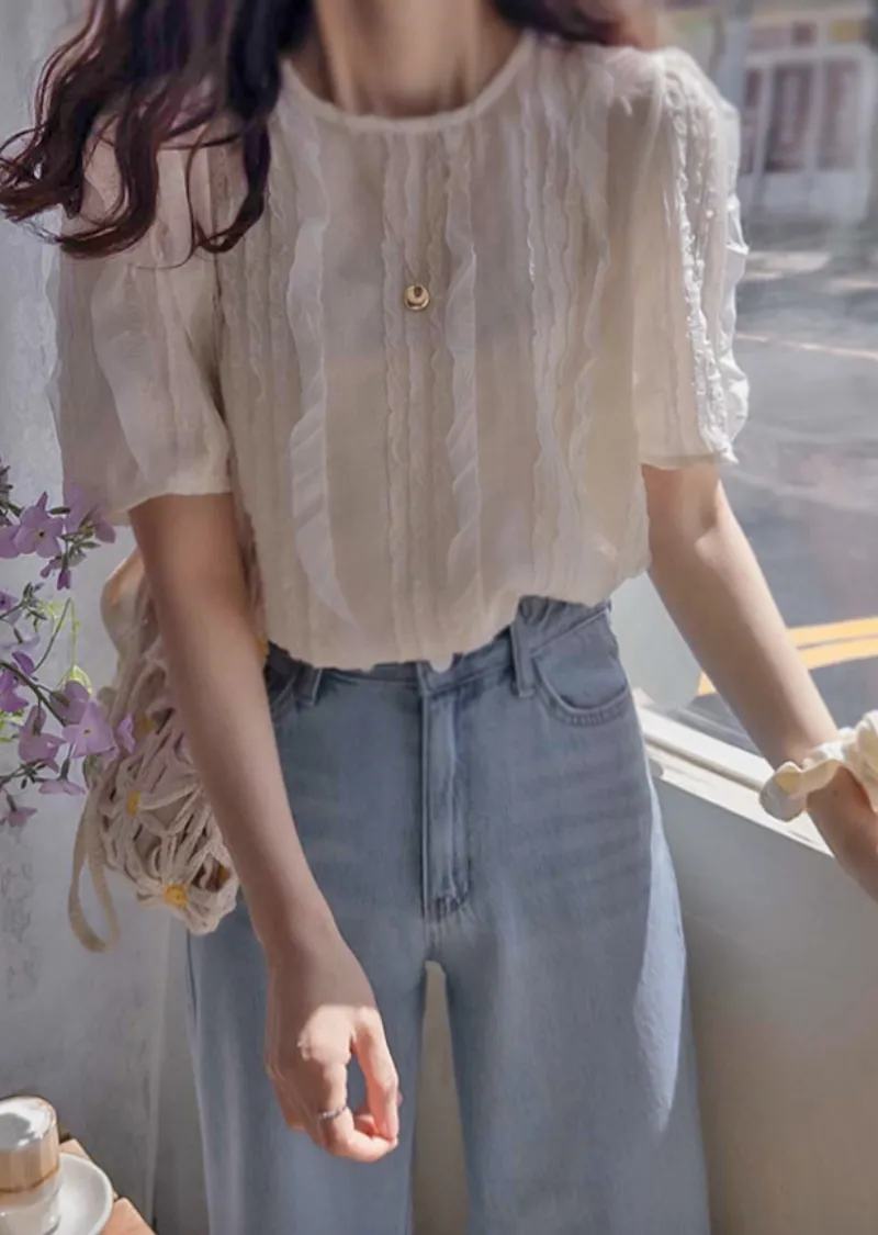 【適合春夏的蕾絲上衣】【清新的版型,不用擔心褶皺】【透過立體的波浪線條營造出可愛的氛圍】【肩線剪裁泡泡袖營造出優雅的氣質】【推薦明亮精緻的上衣】