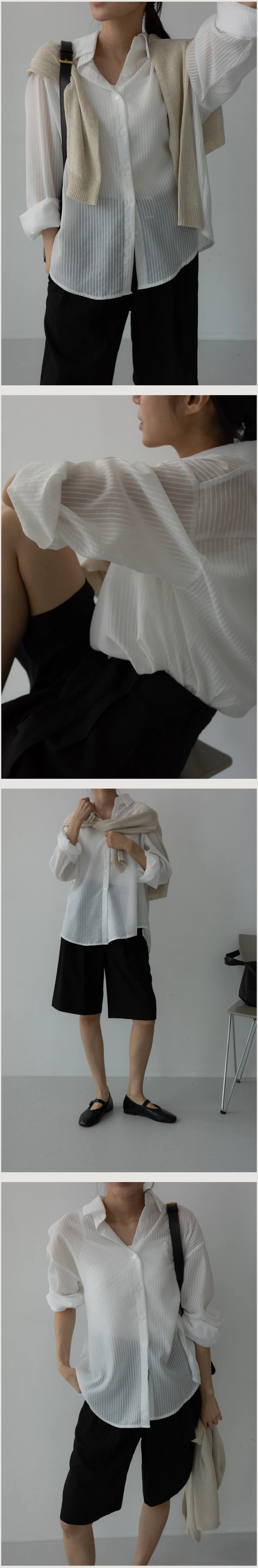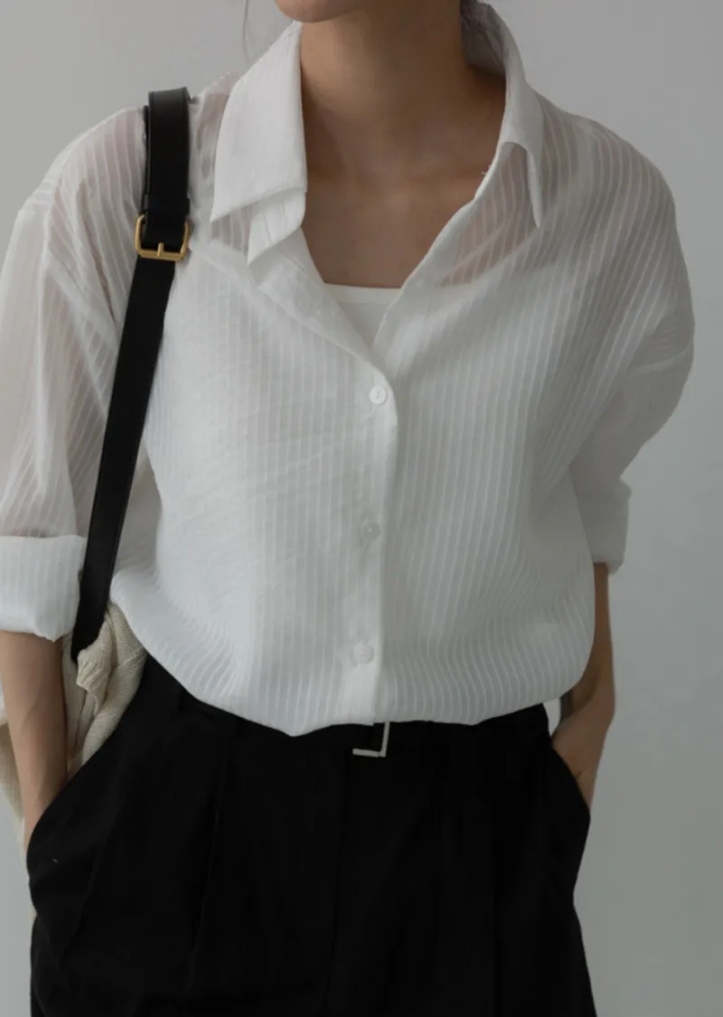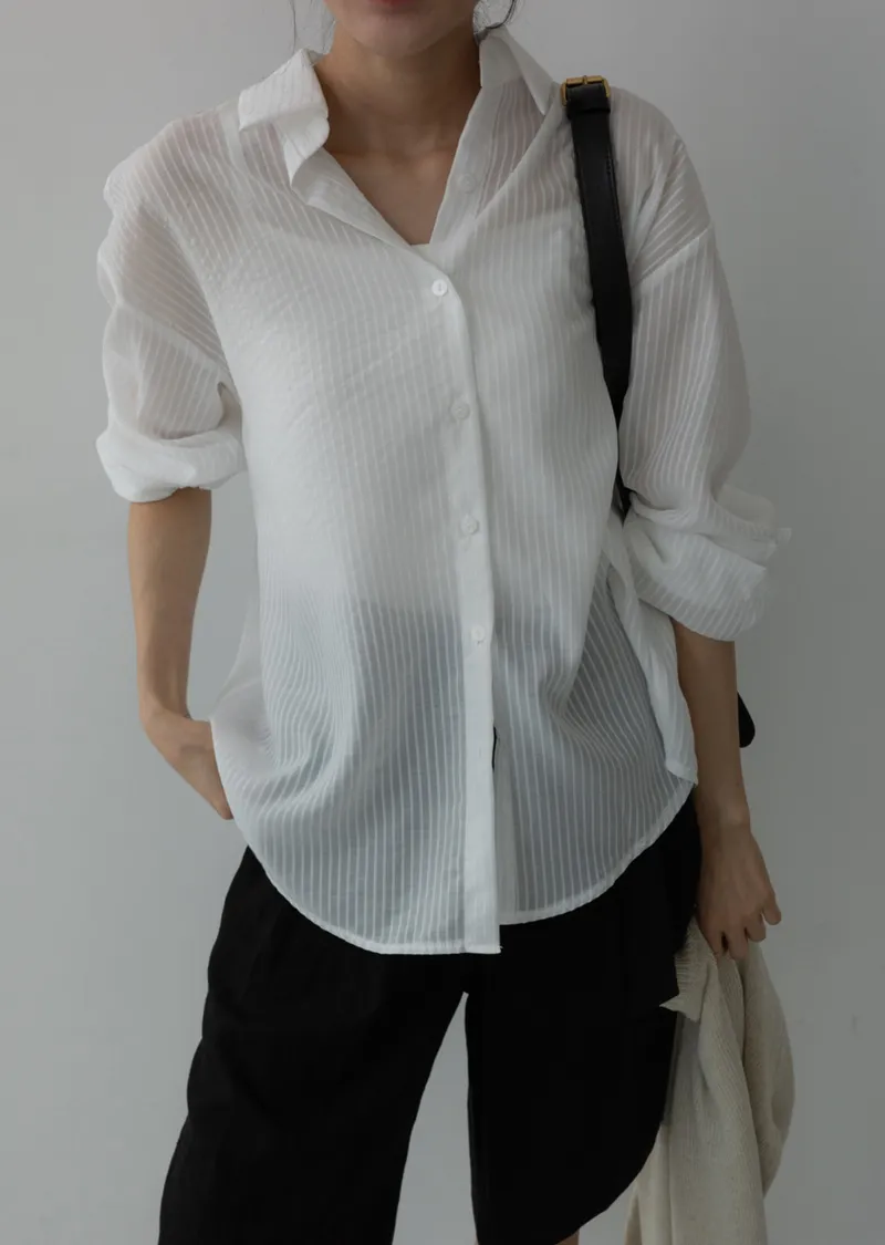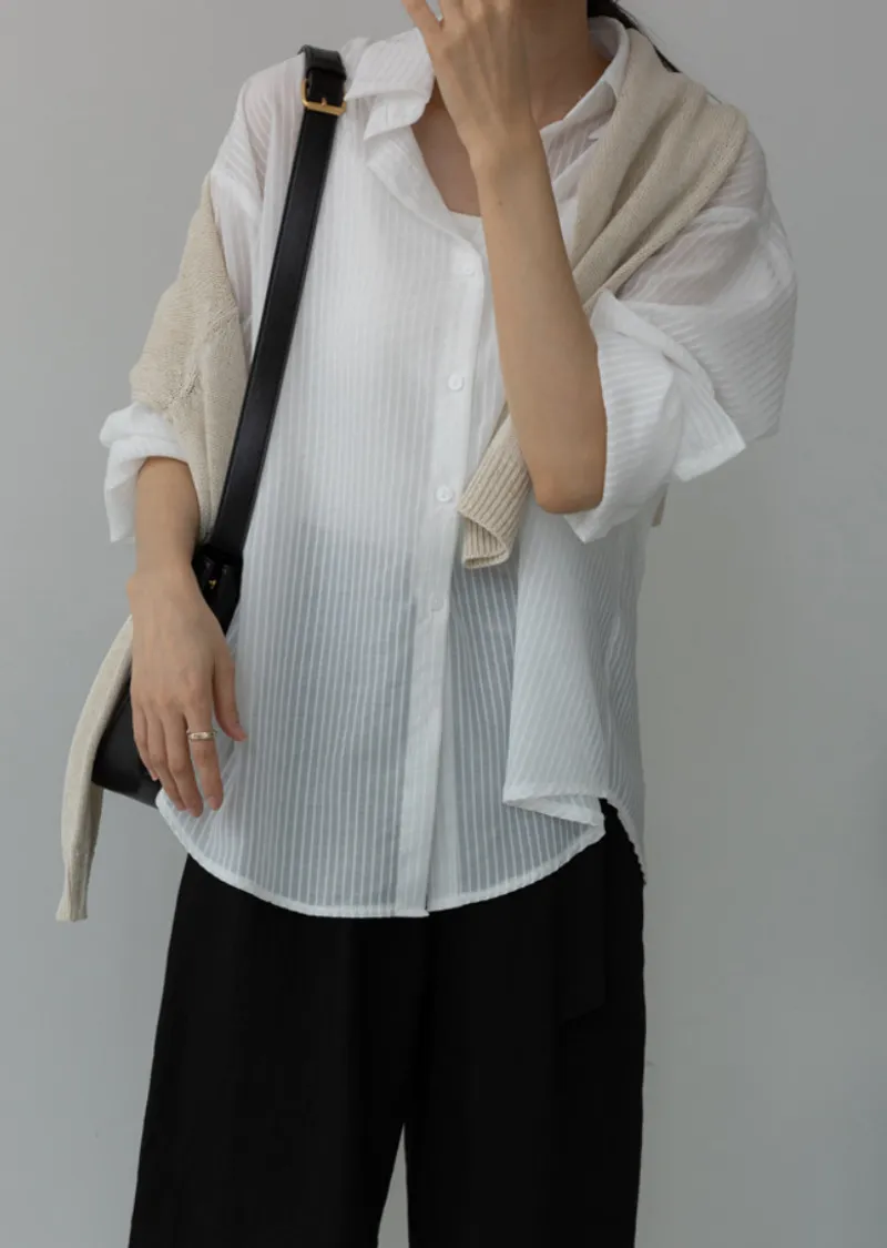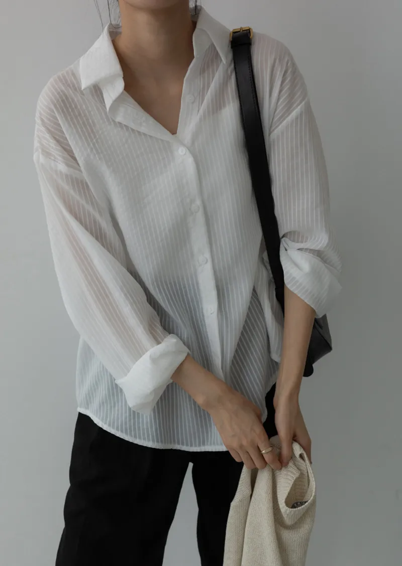 春夏舒適透膚寬鬆長袖襯衫