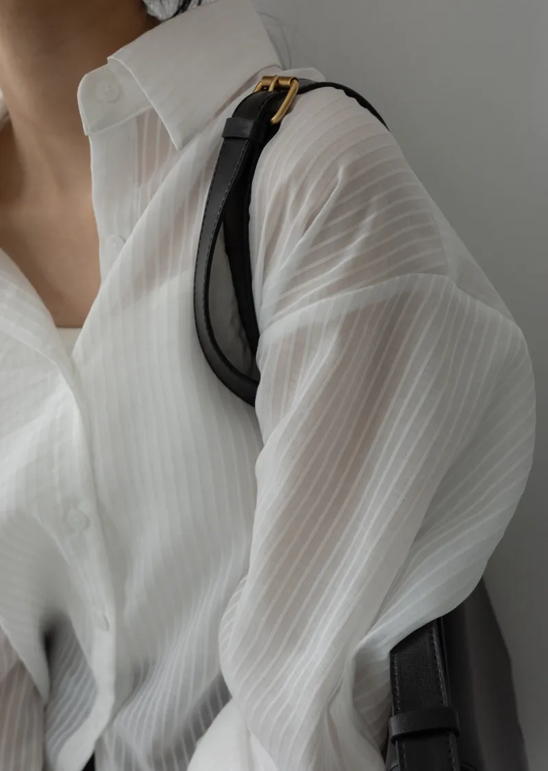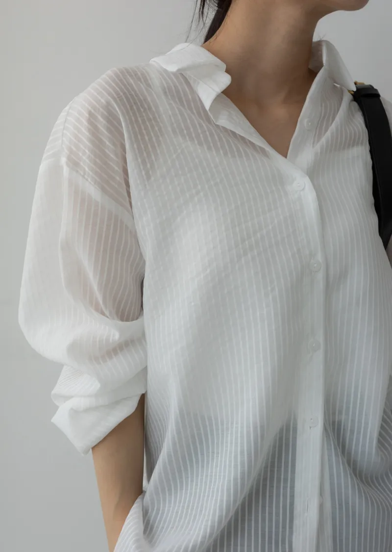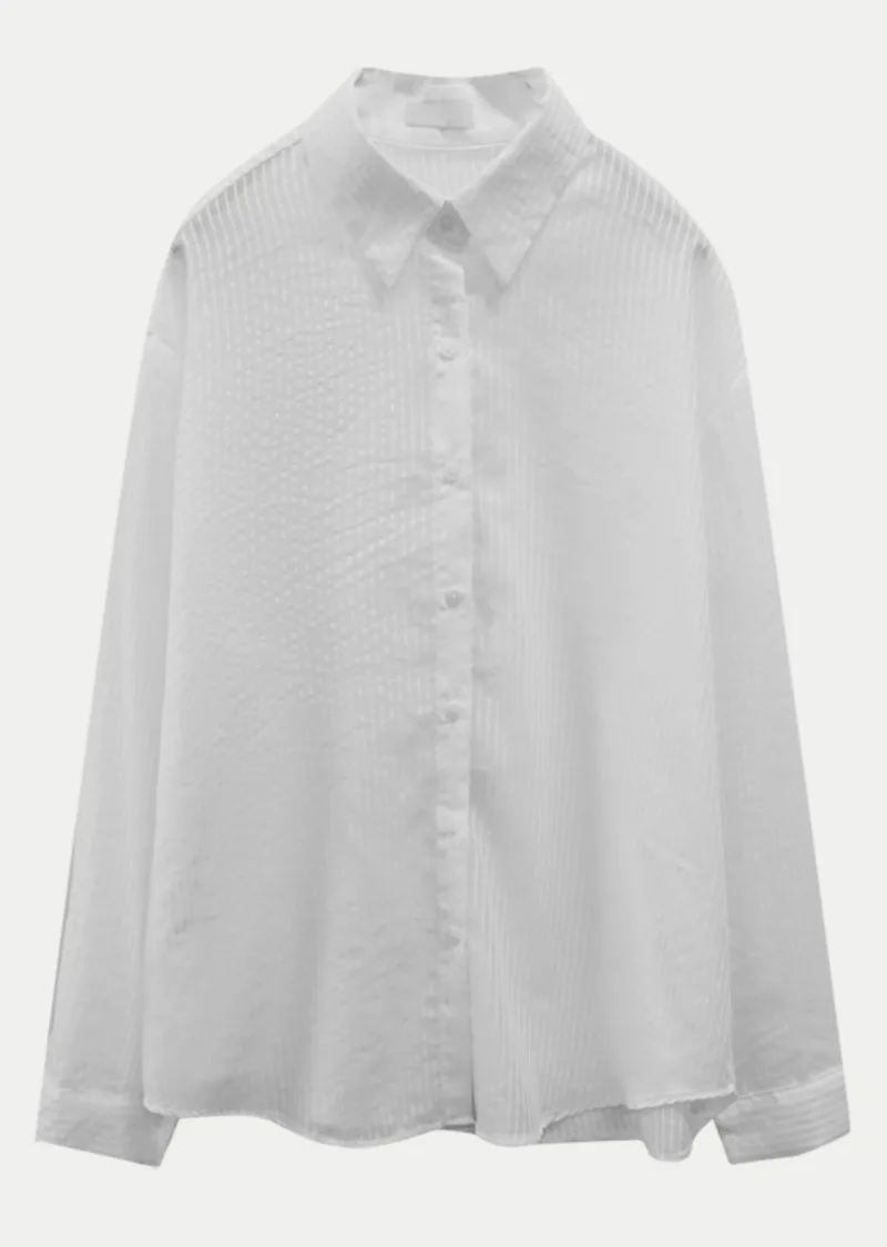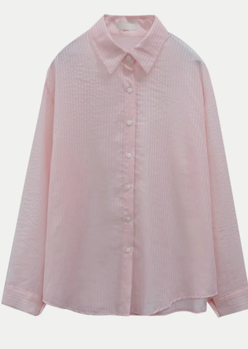 春夏舒適透膚寬鬆長袖襯衫